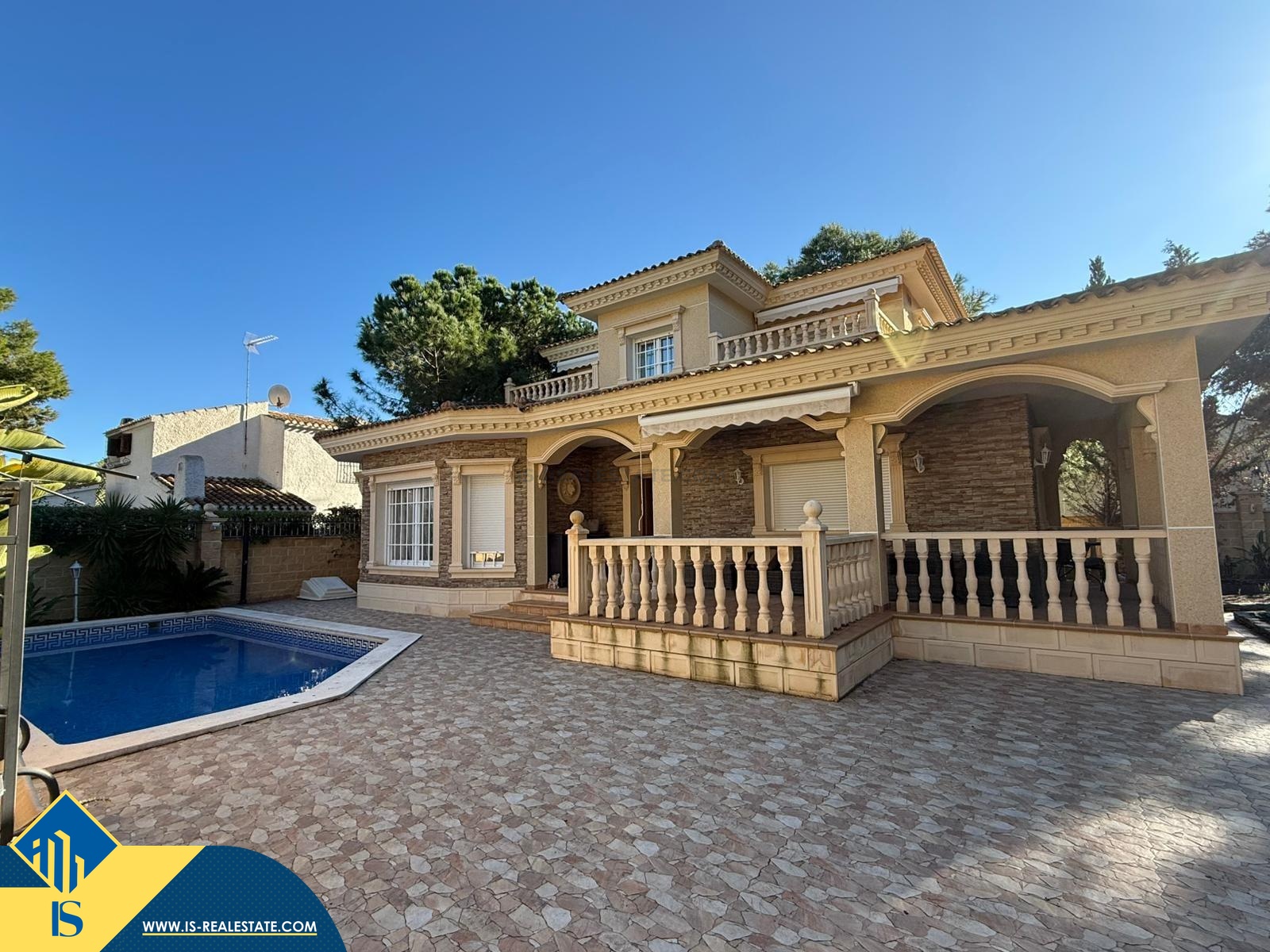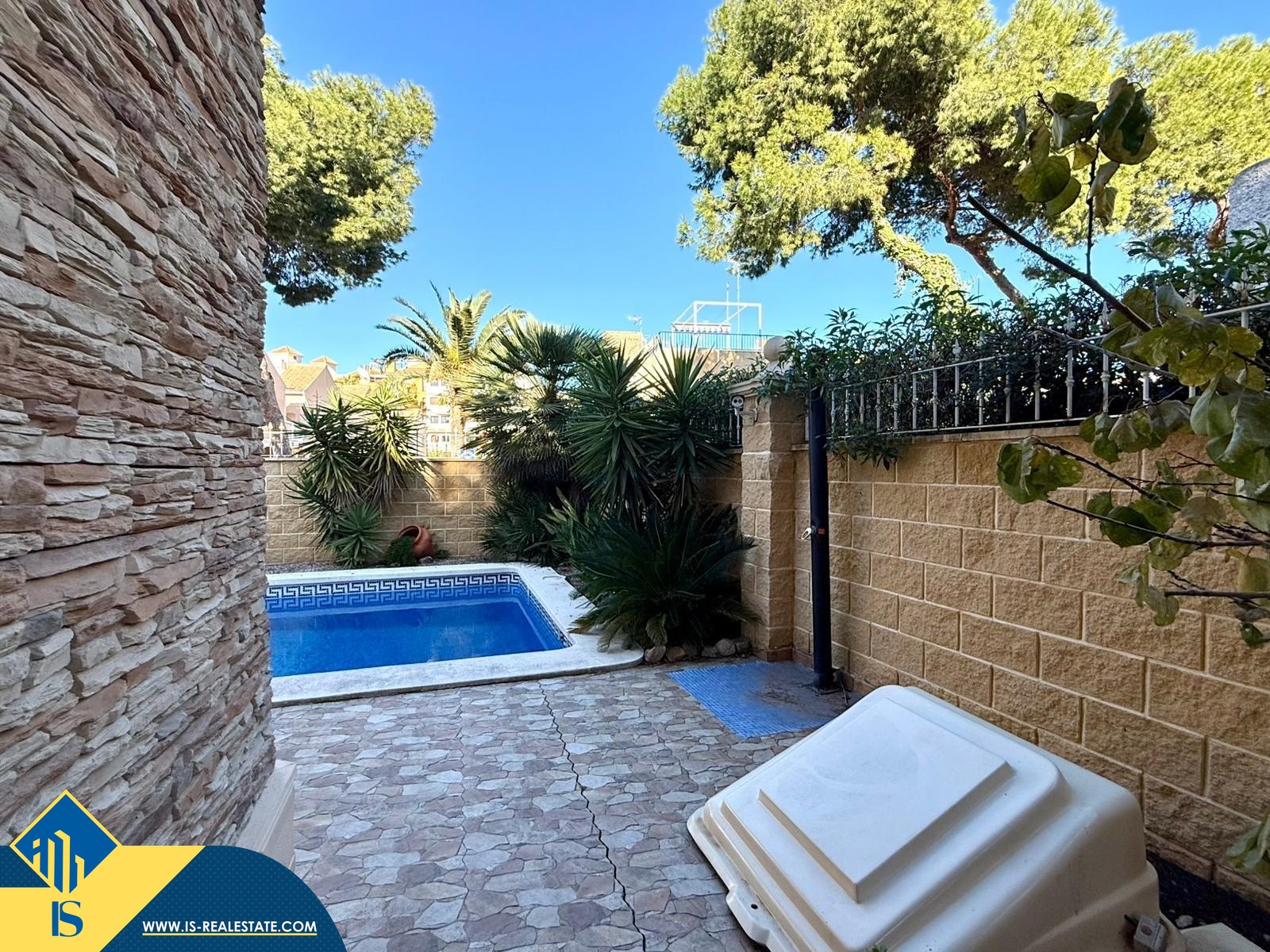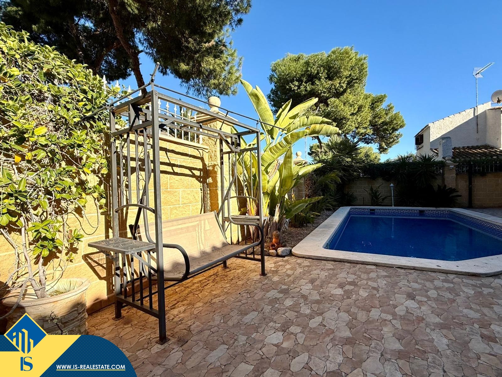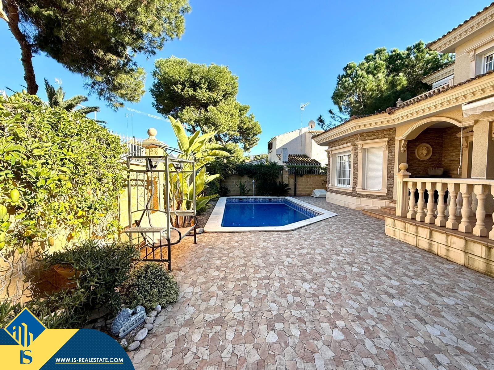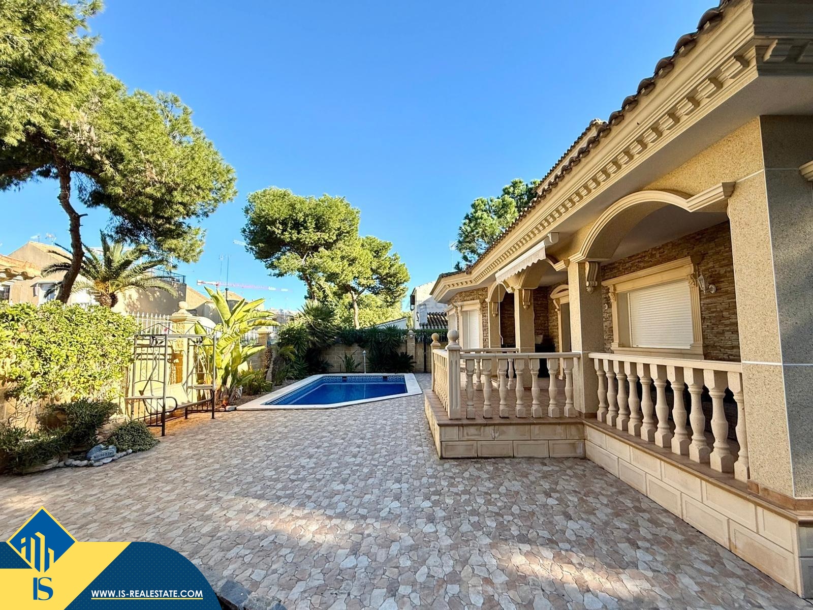 4-ių kambarių vila su privačiu baseinu, Ispanijoje, Alicante provincijoje, Orihuela Costa mieste, bendras plotas 214 m², 200 metrų iki jūros, 57 kilometrai iki Alicante oro uosto. Turtui priklauso terasa, privatus baseinas, vieta automobiliui. Netoli turto yra parduotuvės, restoranai, autobusų stotelės, vaikų zonos, degalinės, žalios zonos, kavinės, ligoninė