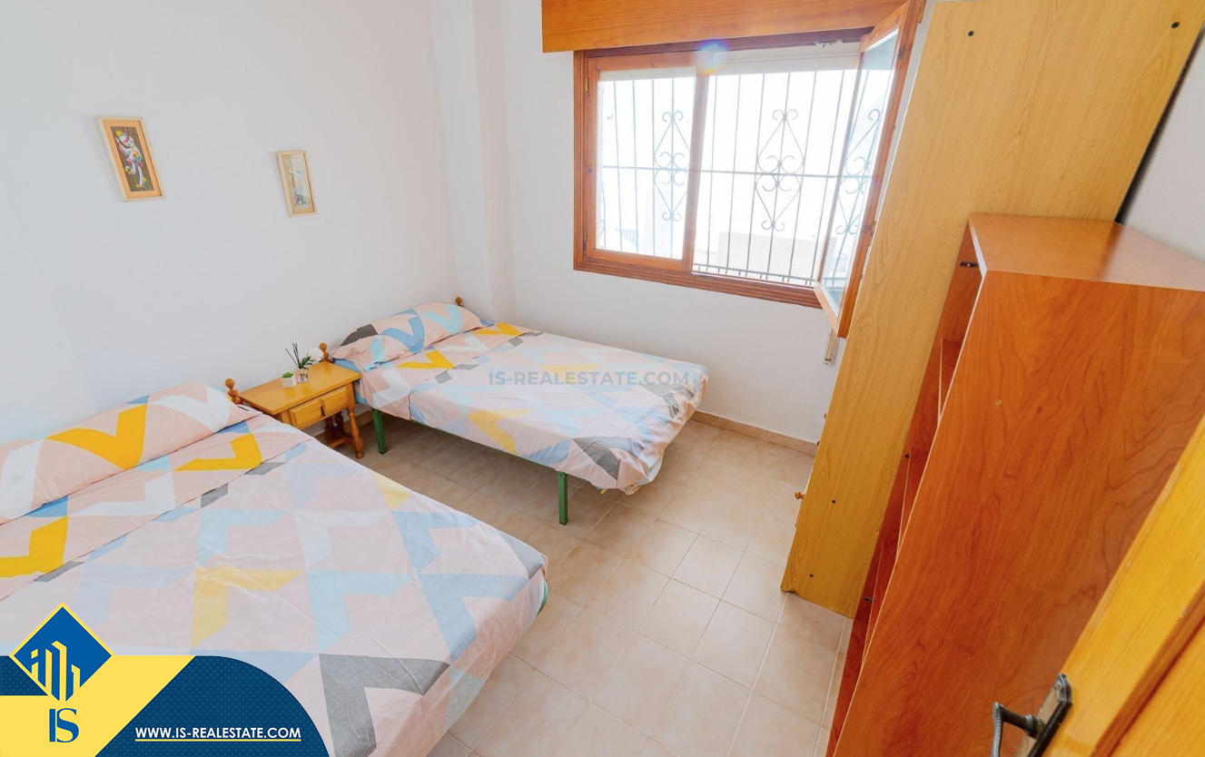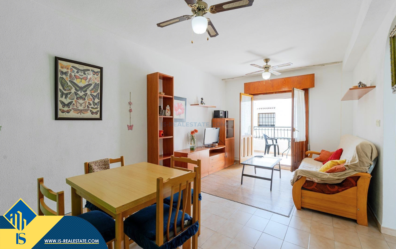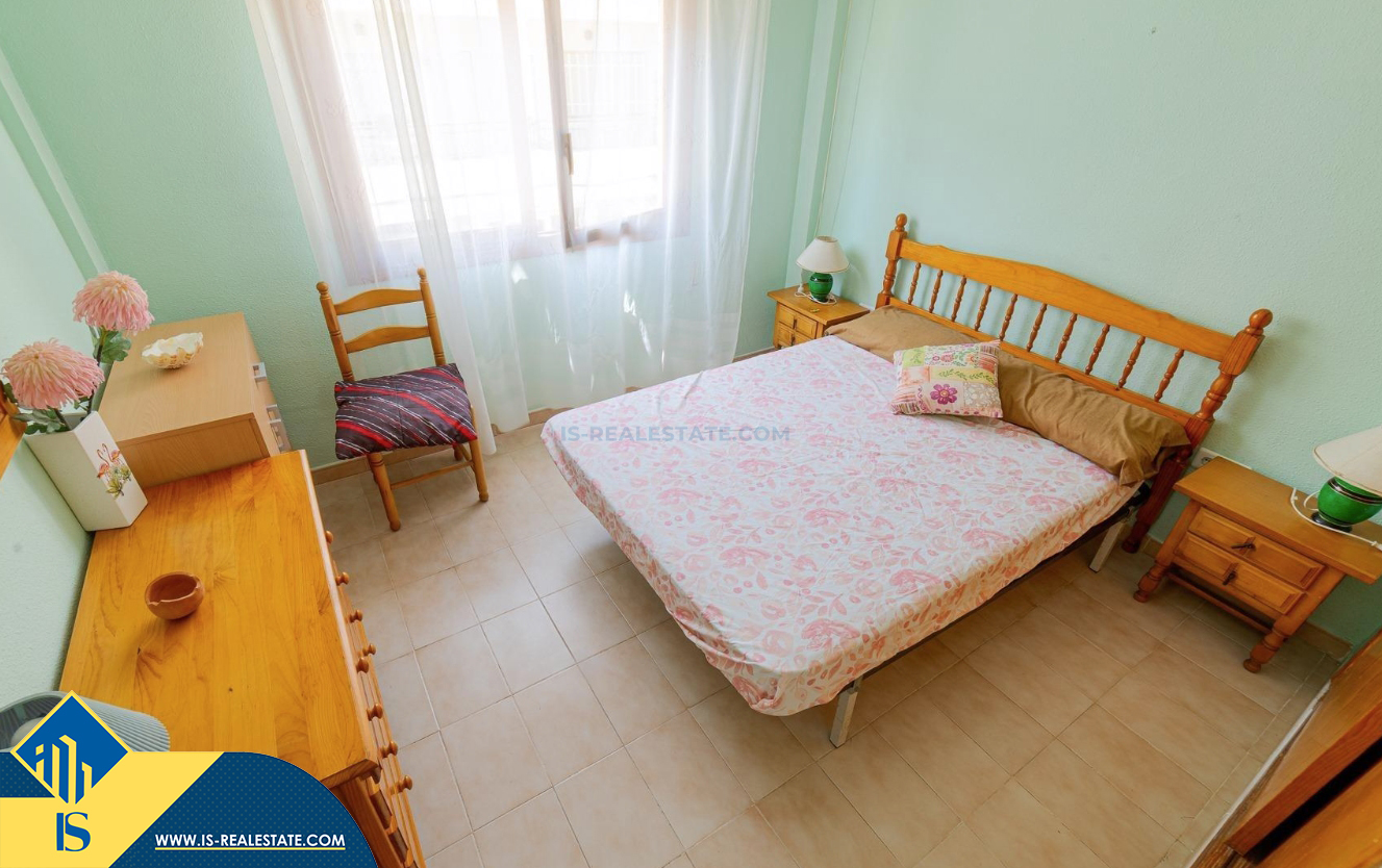 3-jų kambarių apartamentas su bendru baseinu, Ispanijoje, Alicante provincijoje, Torrevieja mieste, bendras plotas 59 m², 250 metrų iki jūros, 45 kilometrai iki Alicante oro uosto. Turtui priklauso bendras baseinas, terasa, liftas, kiemelis. Netoli turto yra parduotuvės, restoranai, vaistinės, autobusų stotelės, degalinės, žalios zonos, kavinės