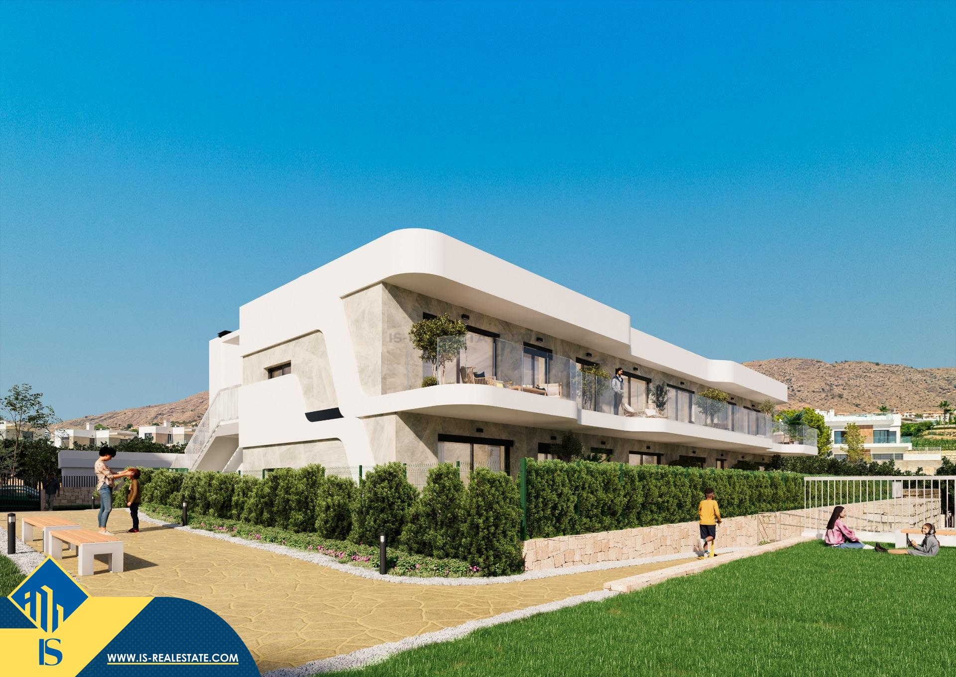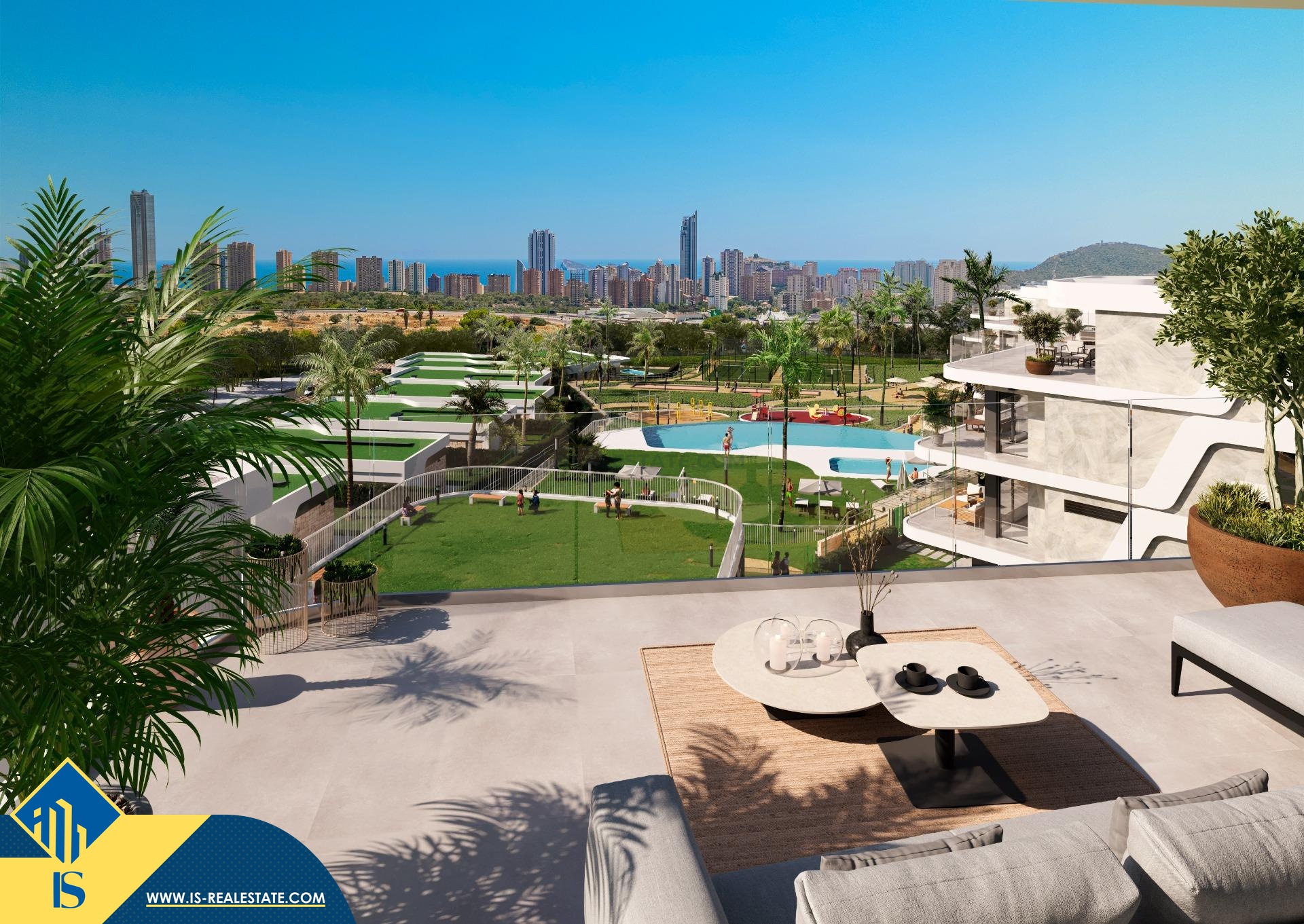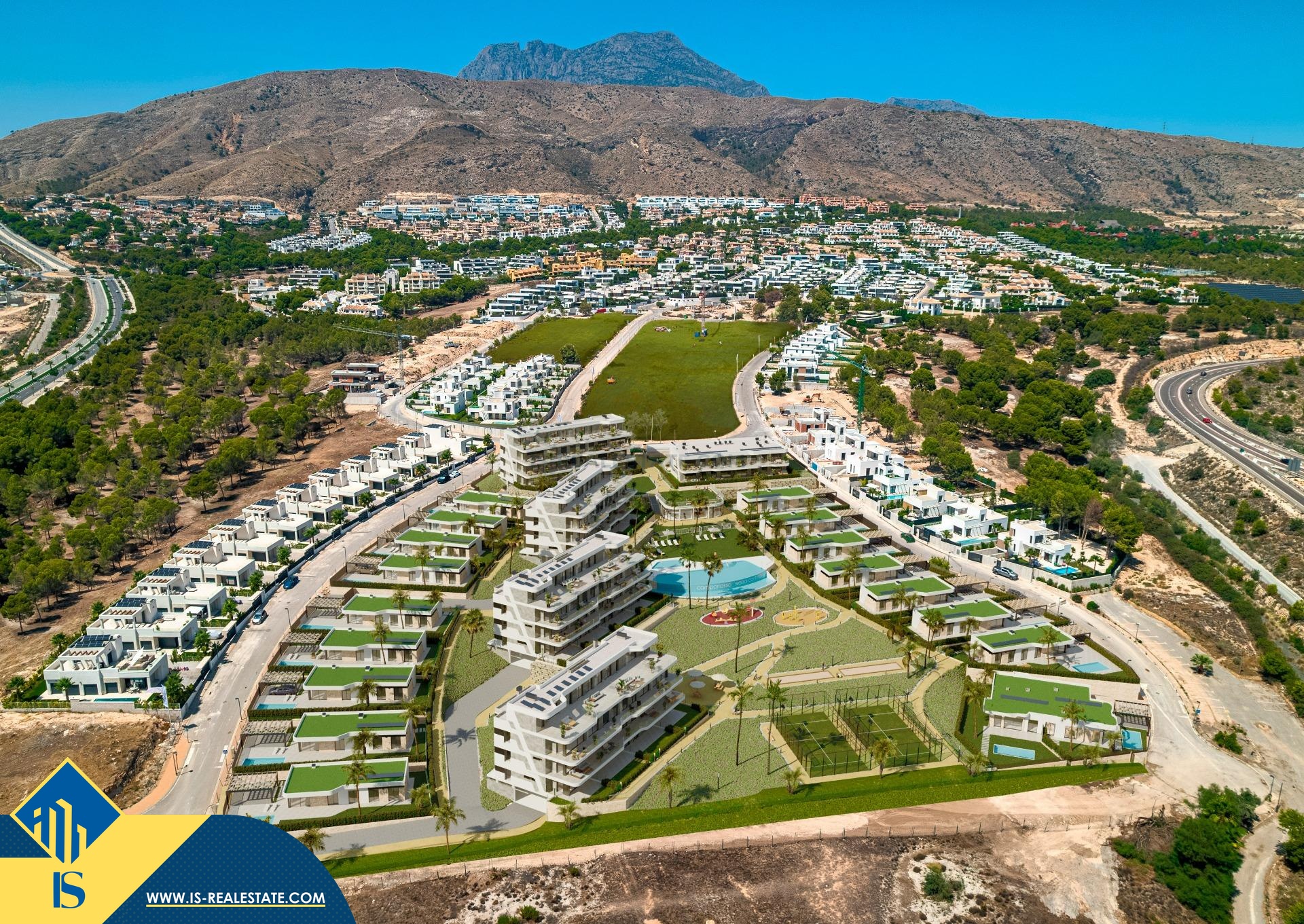 Statomi 4-ių kambarių apartamentai, Ispanijoje, Alicante provincijoje, Finestrat mieste, 2.5 kilometrai iki jūros, bendras plotas 120 m², 50 kilometrų iki Alicante miesto oro uosto. Turtui priklauso bendras baseinas, terasa, vieta automobiliui. Netoli turto yra parduotuvės, restoranai, autobusų stotelės, vaikų zonos, degalinės, žalios zonos, kavinės, ligoninė