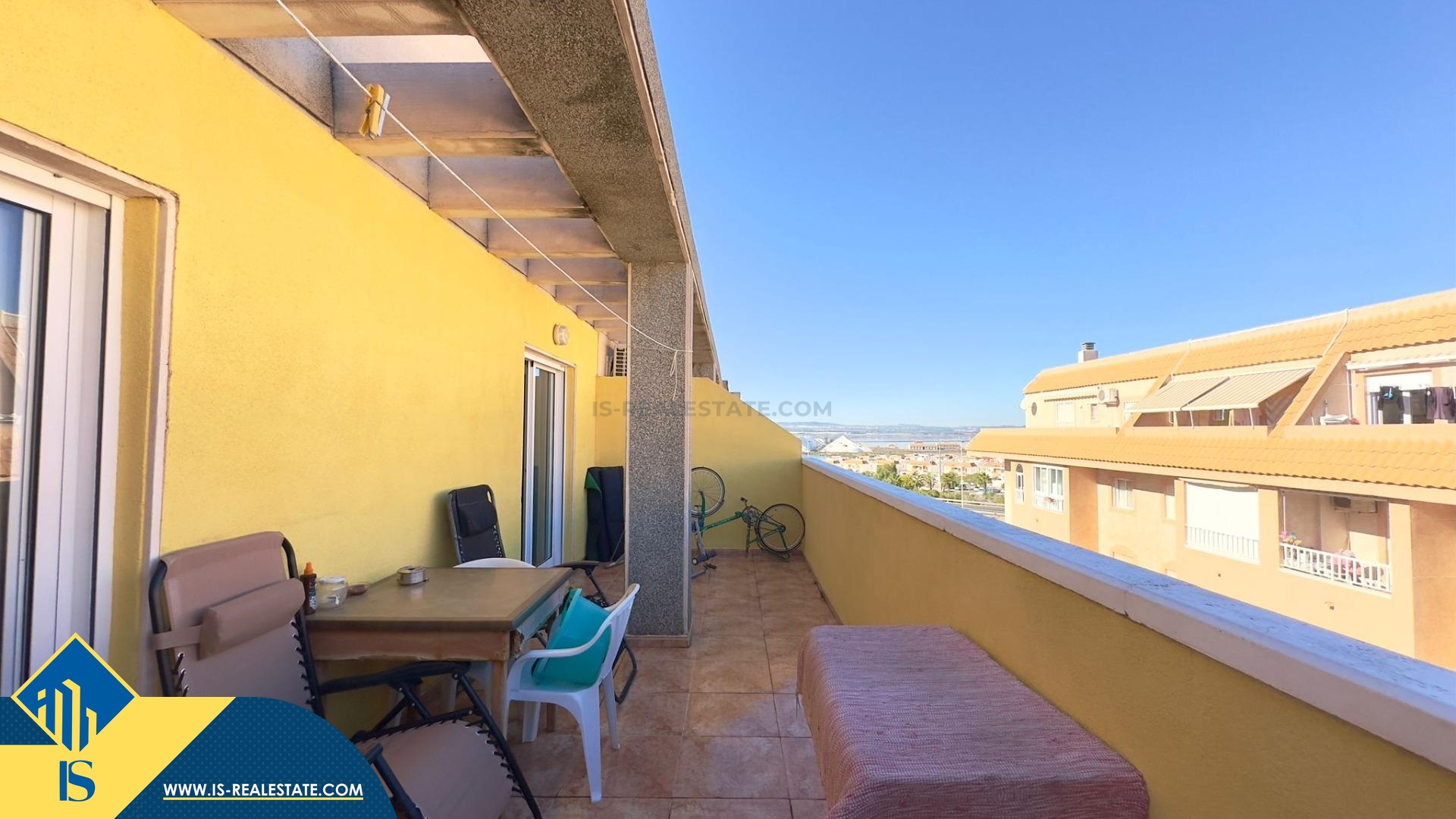 3-jų kambarių penthouse apartamentas su terasa, Ispanijoje, Alicante provincijoje, Torrevieja mieste, Playa del Cura rajone, bendras plotas 73 m², 450 metrų iki jūros, 45 kilometrai iki Alicante oro uosto. Turtui priklauso terasa, liftas. Netoli turto yra parduotuvės, restoranai, autobusų stotelės, degalinės, žalios zonos, kavinės, vaistinės