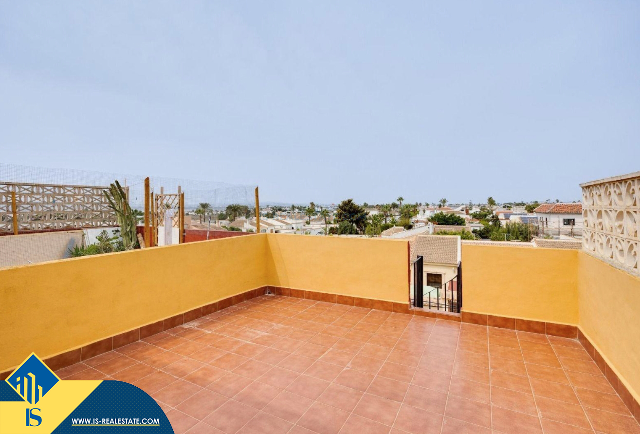 3-jų kambarių duplex penthouse apartamentas su terasa, Ispanijoje, Alicante provincijoje, Torrevieja mieste, El Chaparral rajone, bendras plotas 44 m², 5 kilometrai iki jūros, 45 kilometrai iki Alicante oro uosto. Turtui priklauso terasa. Netoli turto yra parduotuvės, restoranai, autobusų stotelės, degalinės, žalios zonos, kavinės, vaistinės