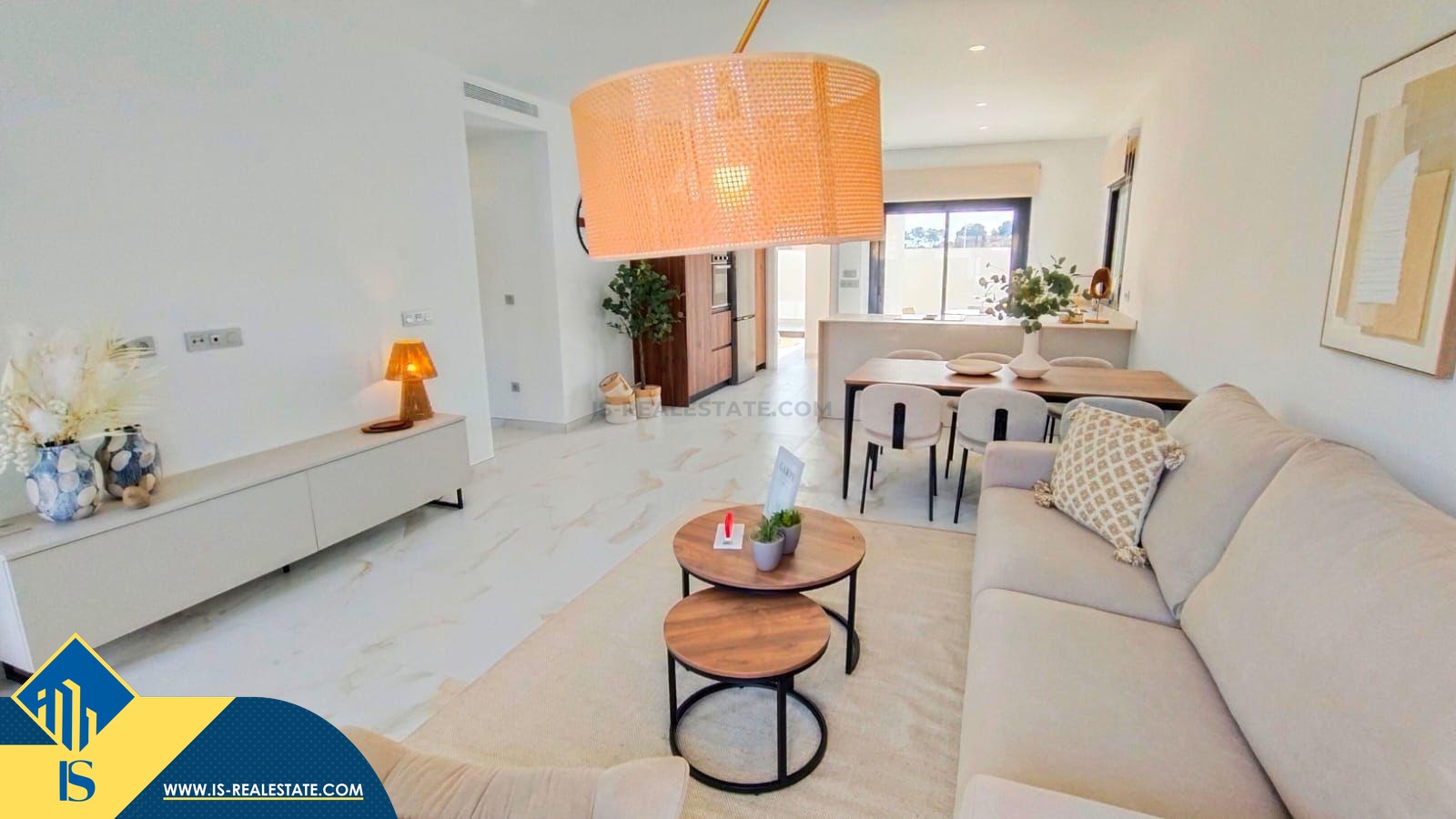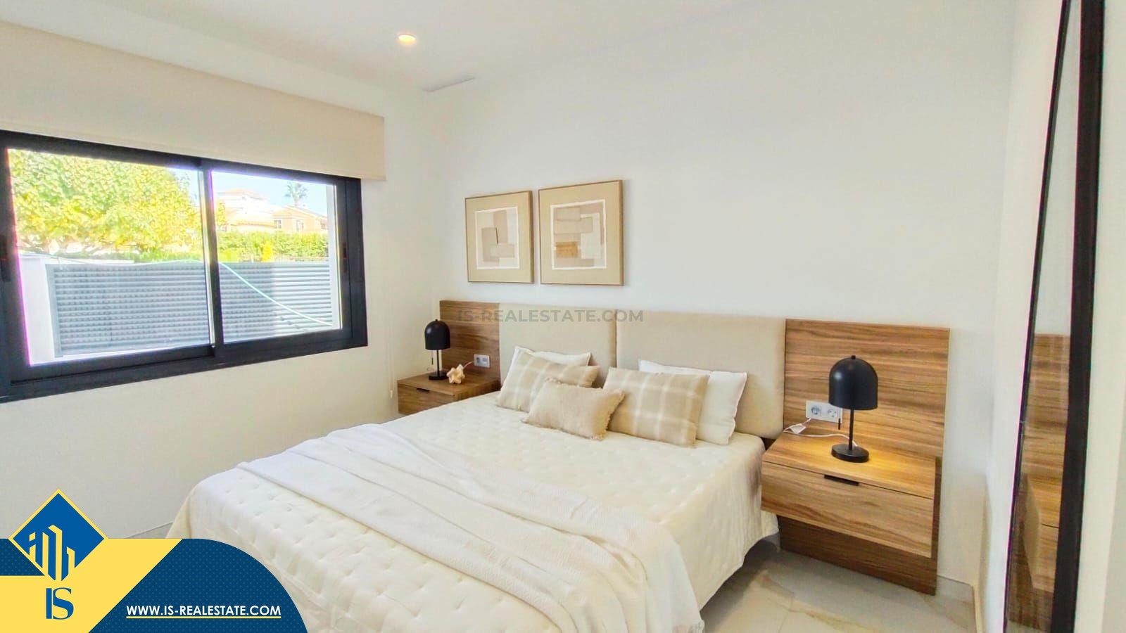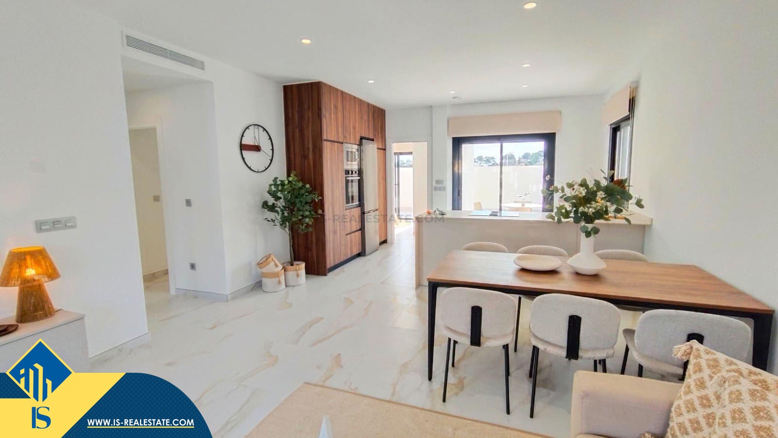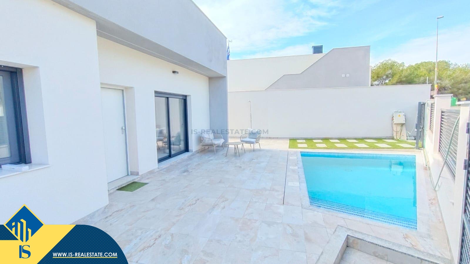 4-ių kambarių vila su privačiu baseinu, Ispanijoje, Alicante provincijoje, Orihuela Costa mieste, bendras plotas 112 m², 8 kilometrai iki jūros, 57 kilometrai iki Alicante oro uosto. Turtui priklauso privatus baseinas, terasa, vieta automobiliui, privatus kiemas. Netoli turto yra parduotuvės, restoranai, autobusų stotelės, vaikų zonos, degalinės, žalios zonos, kavinės, ligoninė