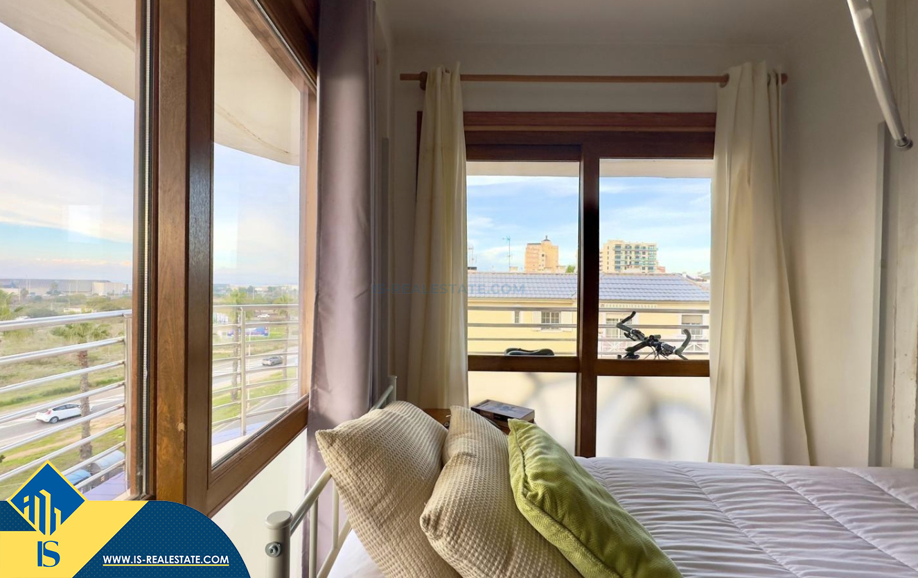 2-jų kambarių renovuotas apartamentas su bendru baseinu, Ispanijoje, Alicante provincijoje, Torrevieja mieste, bendras plotas 90 m², 200 metrų iki jūros, 45 kilometrai iki Alicante oro uosto. Turtui priklauso bendras baseinas, terasa, liftas. Netoli turto yra parduotuvės, restoranai, vaistinės, autobusų stotelės, degalinės, žalios zonos, kavinės