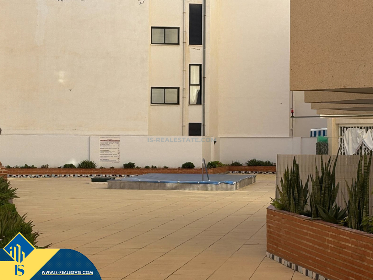 2-jų kambarių apartamentas su bendru baseinu, Ispanijoje, Alicante provincijoje, Torrevieja mieste, Playa del Cura rajone, bendras plotas 45 m², 450 metrų iki jūros, 45 kilometrai iki Alicante oro uosto. Turtui priklauso bendras baseinas, liftas. Netoli turto yra parduotuvės, restoranai, vaistinės, autobusų stotelės, degalinės, žalios zonos, kavinės