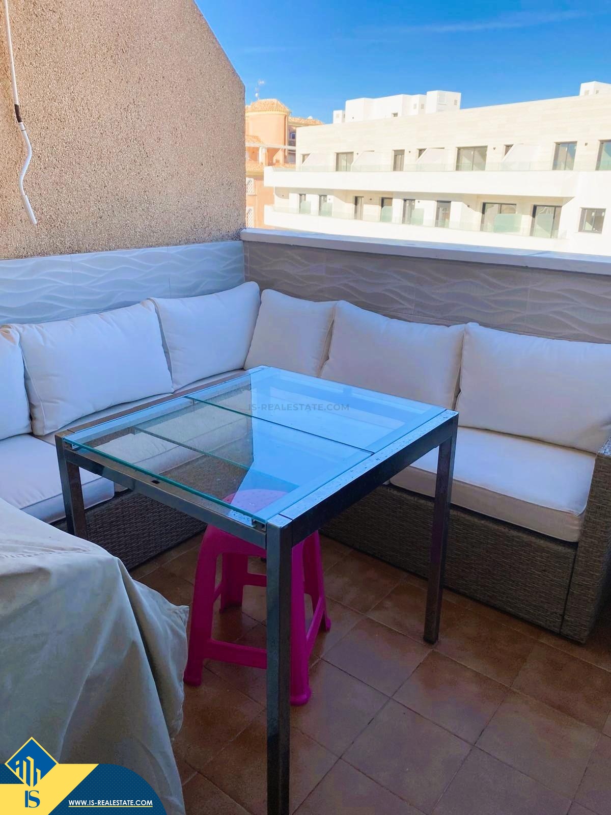 4-ių kambarių penthouse apartamentas su terasa, Ispanijoje, Alicante provincijoje, Torrevieja mieste, Playa del Cura rajone, bendras plotas 94 m², 500 metrų iki jūros, 45 kilometrai iki Alicante oro uosto. Turtui priklauso terasa. Netoli turto yra parduotuvės, restoranai, autobusų stotelės, degalinės, žalios zonos, kavinės, vaistinės