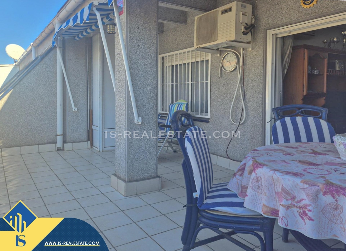 3-jų kambarių penthouse apartamentas su terasa, Ispanijoje, Alicante provincijoje, Torrevieja mieste, Playa del Cura rajone, bendras plotas 75 m², 500 metrų iki jūros, 45 kilometrai iki Alicante oro uosto. Turtui priklauso terasa, liftas. Netoli turto yra parduotuvės, restoranai, autobusų stotelės, degalinės, žalios zonos, kavinės, vaistinės