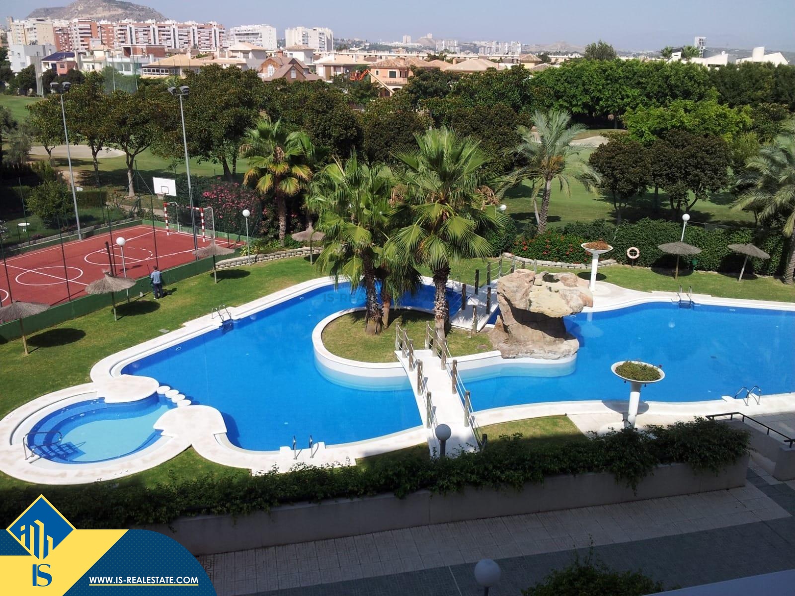 3-jų kambarių apartamentas su bendru baseinu, Ispanijoje, Alicante provincijoje, Alicante mieste, bendras plotas 136 m², 900 metrų iki jūros, 7 kilometrai iki Alicante oro uosto. Turtui priklauso bendras baseinas, terasa, liftas. Netoli turto yra parduotuvės, restoranai, vaistinės, autobusų stotelės, degalinės, žalios zonos, kavinės