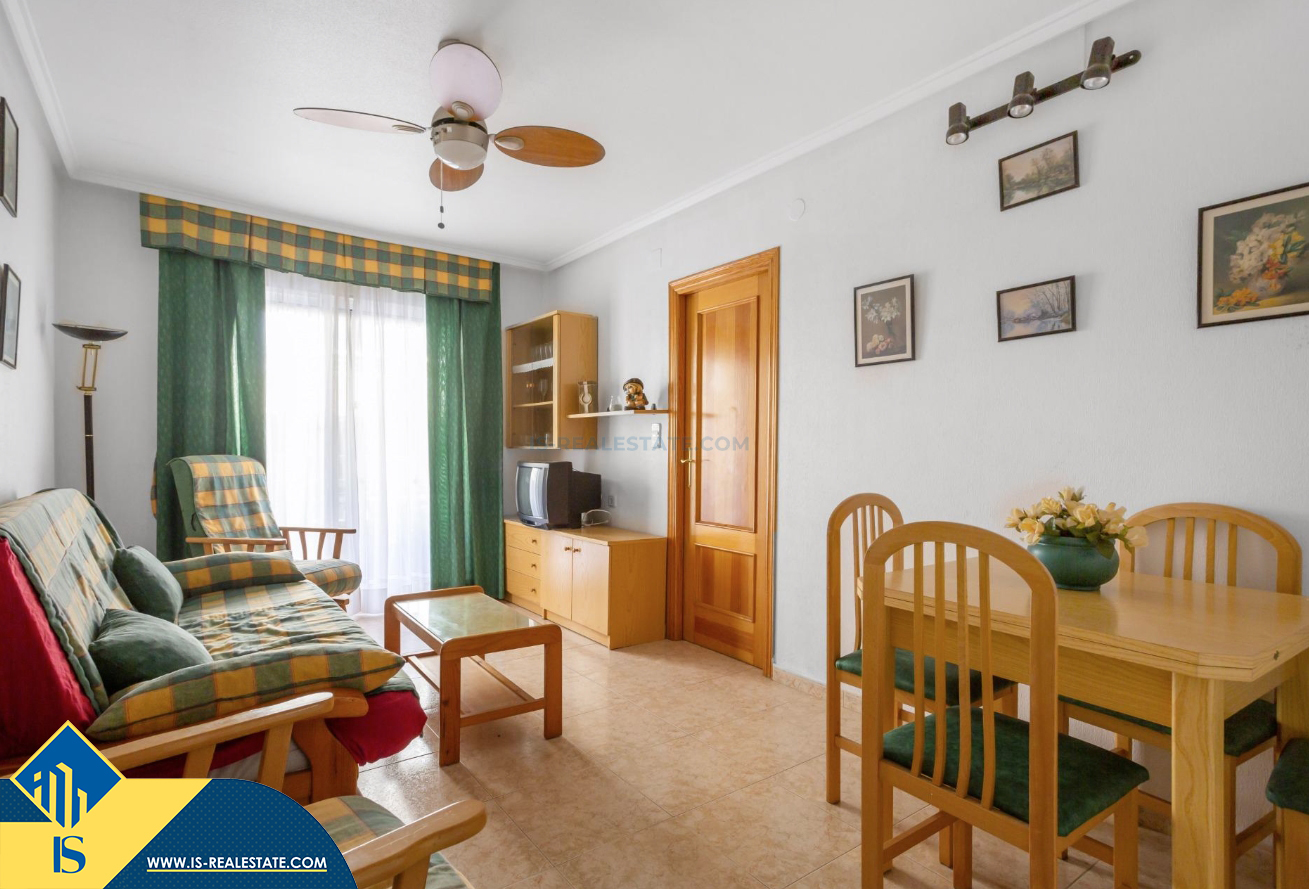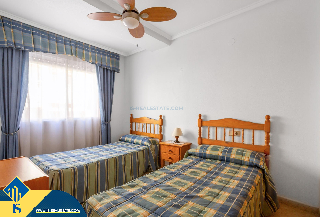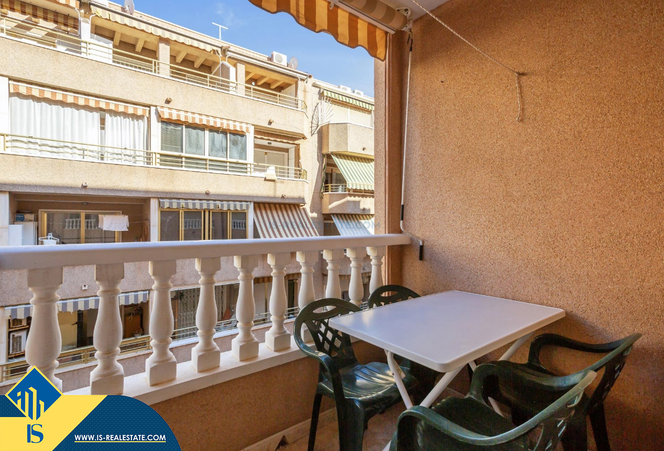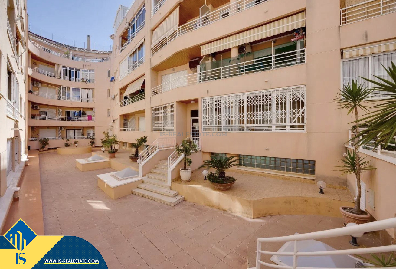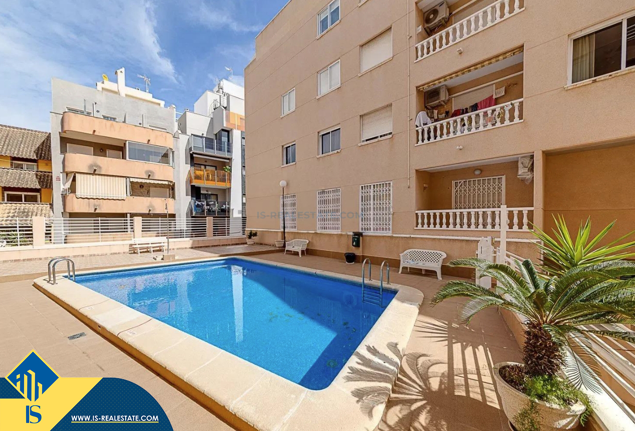 3-jų kambarių apartamentas su bendru baseinu, Ispanijoje, Alicante provincijoje, Torrevieja mieste, Playa del Cura rajone, bendras plotas 60 m², 350 metrų iki jūros, 45 kilometrai iki Alicante oro uosto. Turtui priklauso bendras baseinas, terasa, liftas. Netoli turto yra parduotuvės, restoranai, vaistinės, autobusų stotelės, degalinės, žalios zonos, kavinės, Habaneras alėja