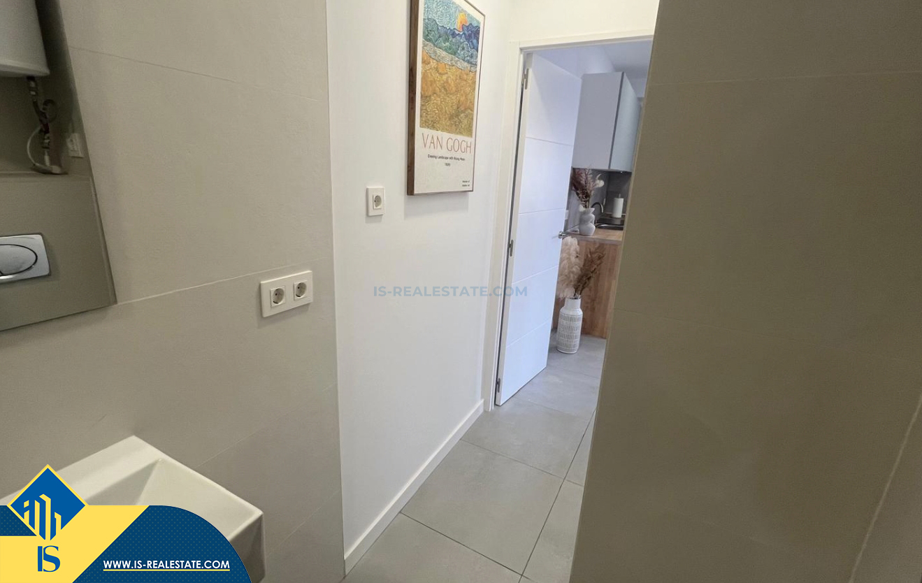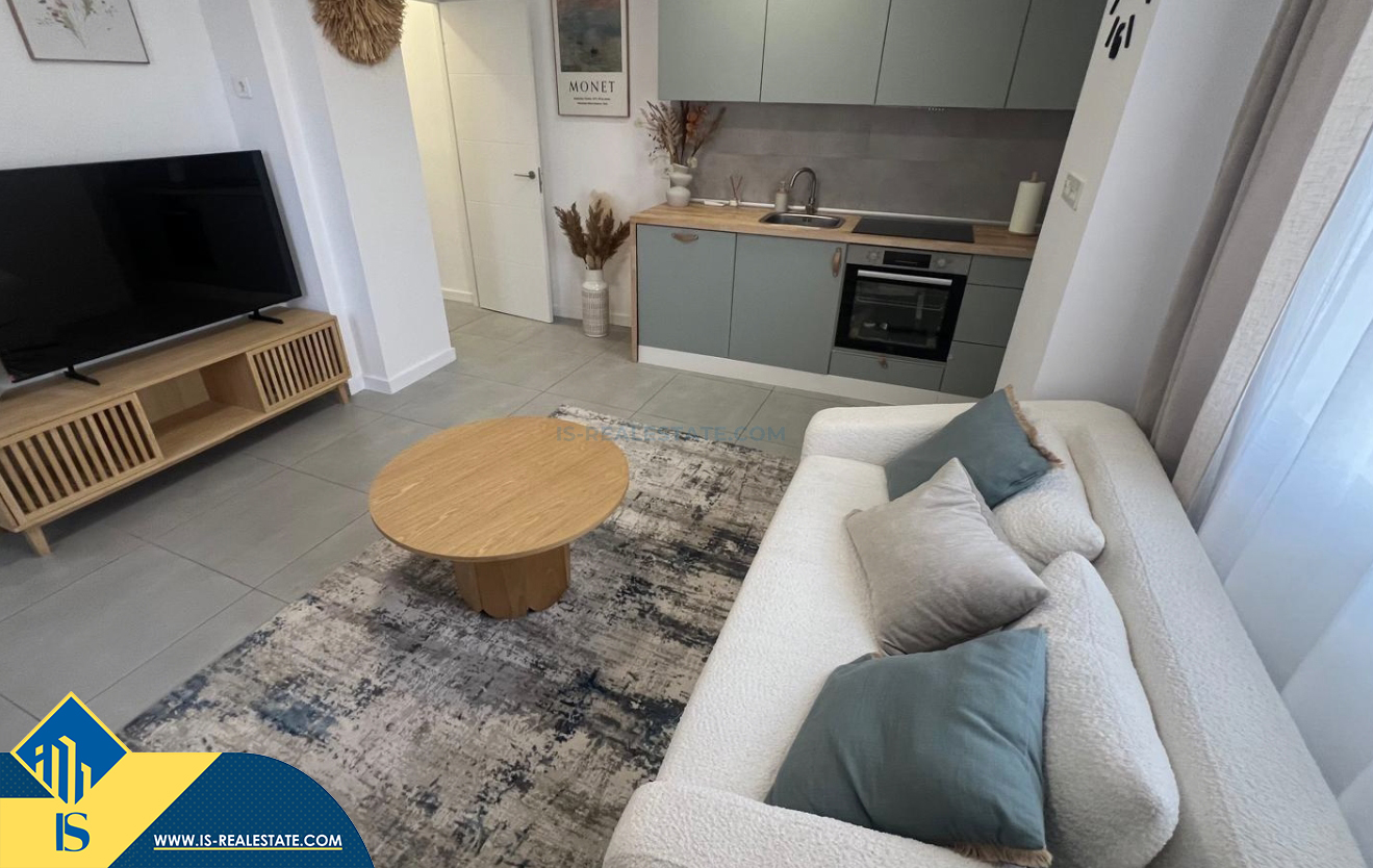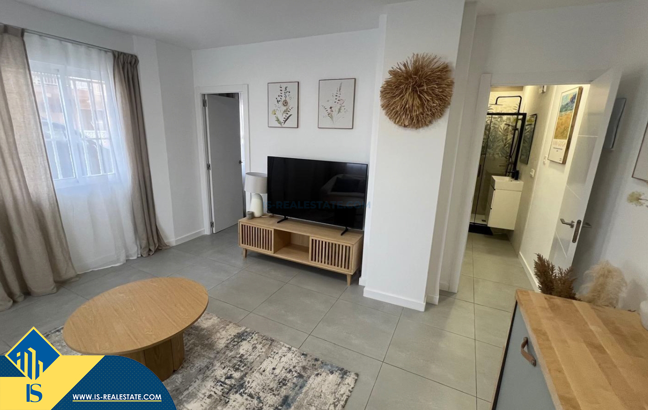 2-jų kambarių renovuotas apartamentas netoli jūros, Ispanijoje, Alicante provincijoje, Torrevieja mieste, bendras plotas 38 m², 50 metrų iki jūros, 45 kilometrai iki Alicante oro uosto. Netoli turto yra parduotuvės, restoranai, vaistinės, autobusų stotelės, degalinės, žalios zonos, kavinės