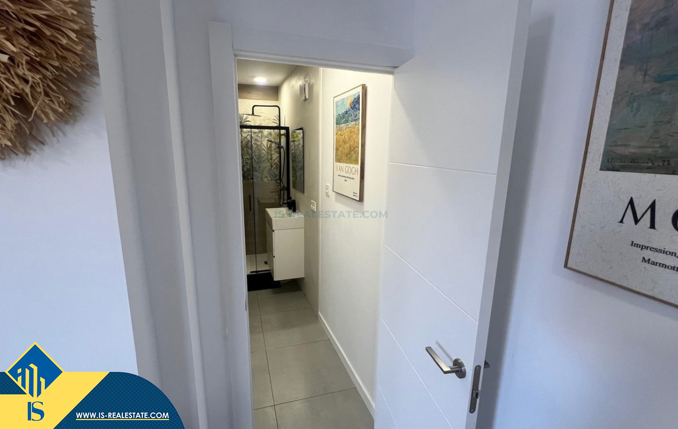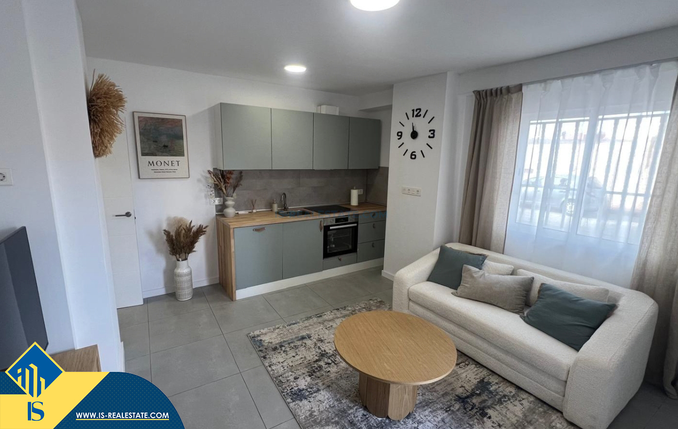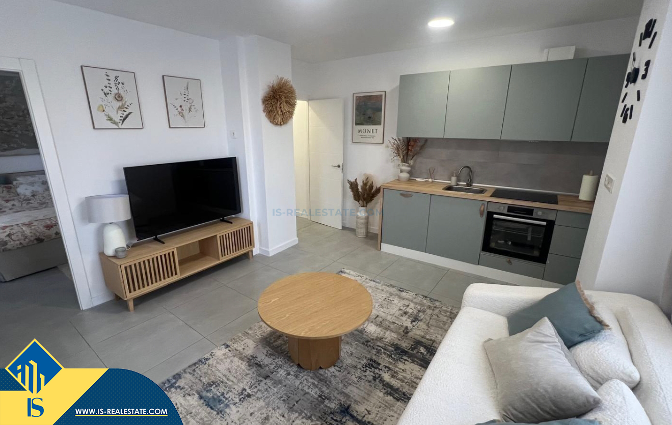 2-jų kambarių renovuotas apartamentas netoli jūros, Ispanijoje, Alicante provincijoje, Torrevieja mieste, bendras plotas 38 m², 50 metrų iki jūros, 45 kilometrai iki Alicante oro uosto. Netoli turto yra parduotuvės, restoranai, vaistinės, autobusų stotelės, degalinės, žalios zonos, kavinės