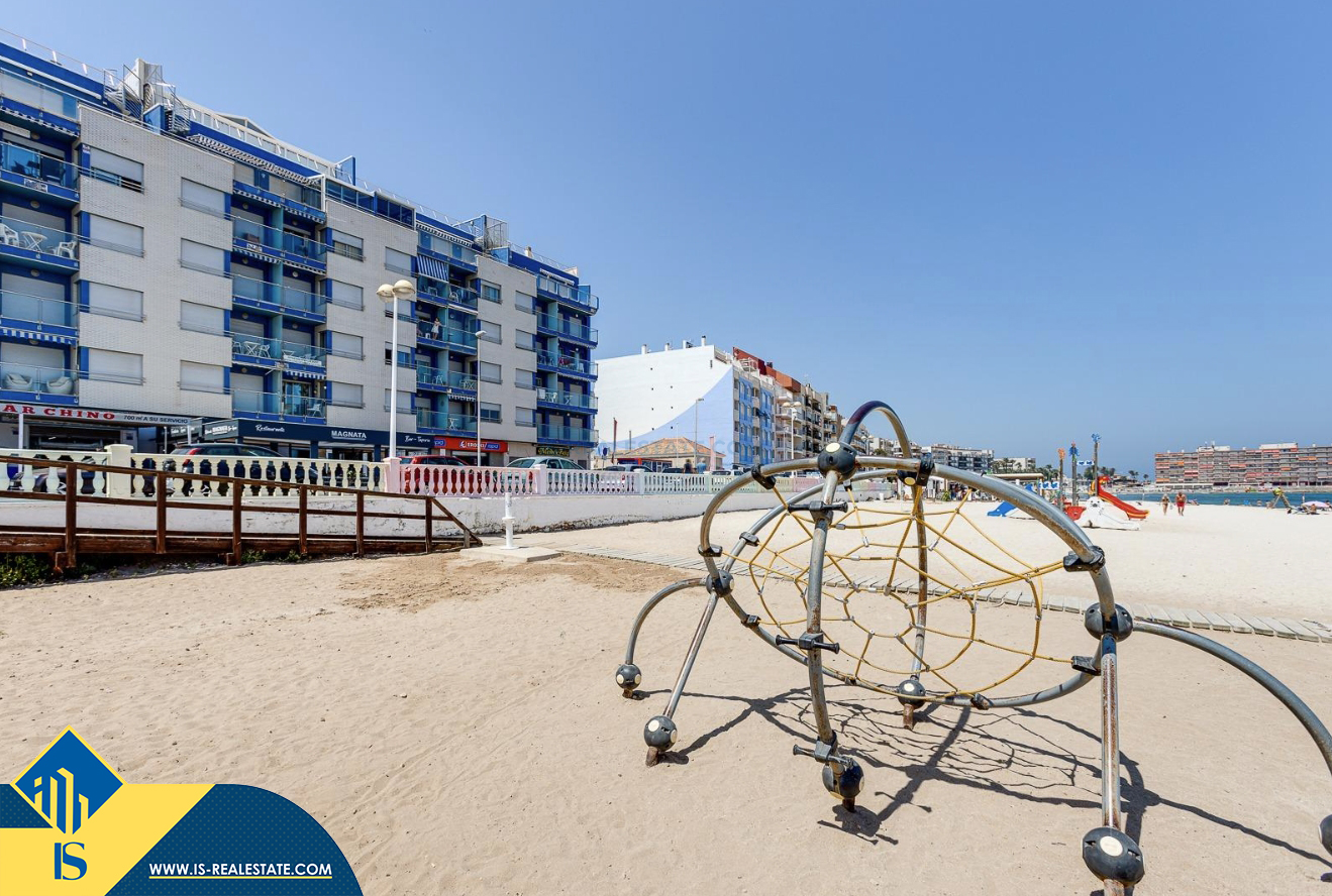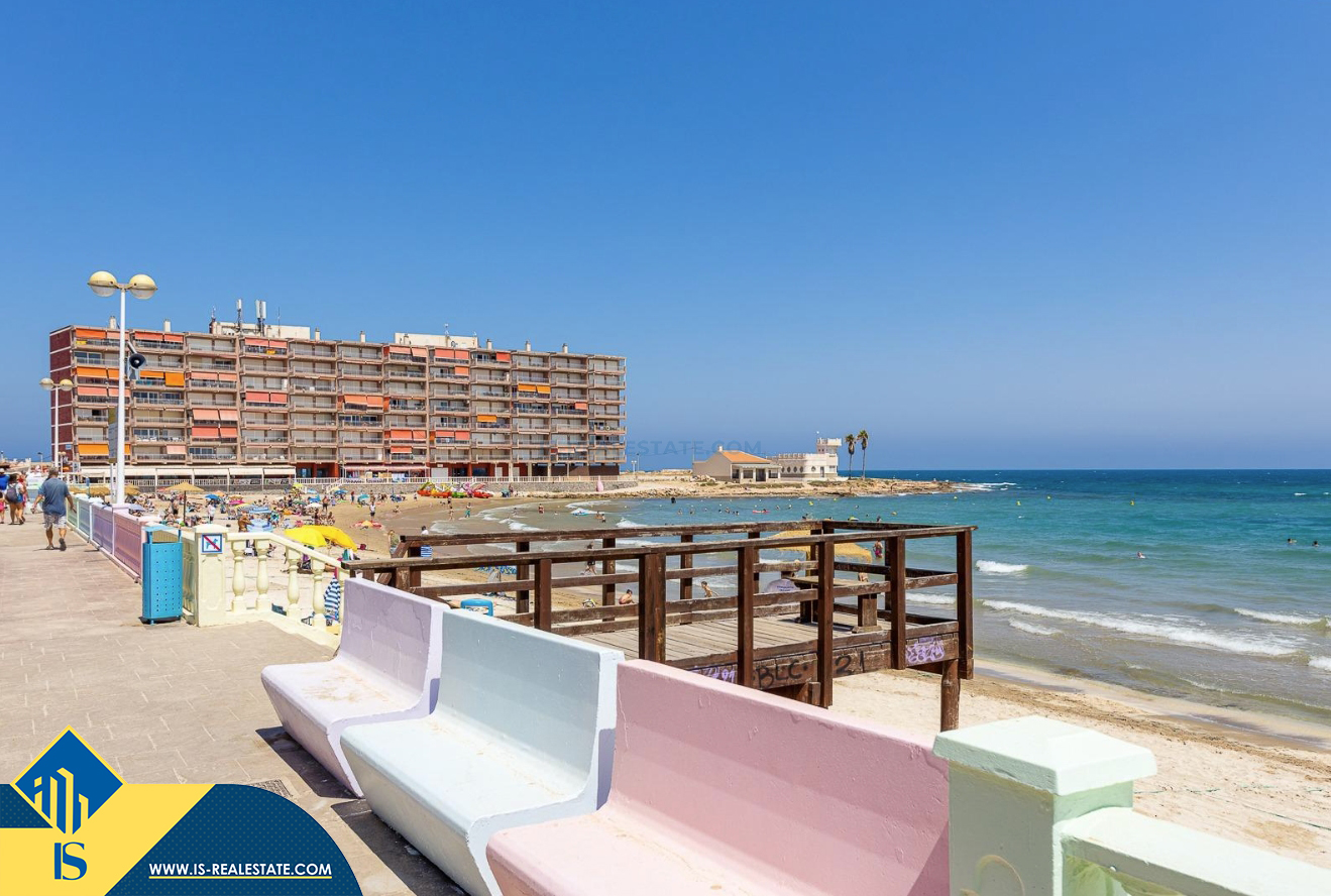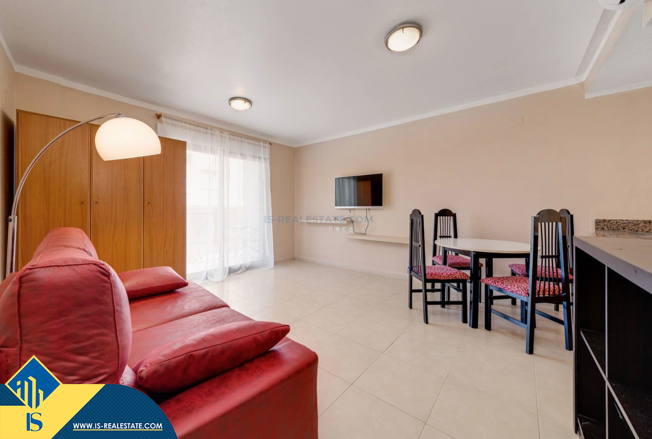 Studija su bendru baseinu, Ispanijoje, Alicante provincijoje, Torrevieja mieste, Playa de los Locos rajone, bendras plotas 49 m², 100 metrų iki jūros, 45 kilometrai iki Alicante oro uosto. Turtui priklauso bendras baseinas, terasa, liftas. Netoli turto yra parduotuvės, restoranai, vaistinės, autobusų stotelės, degalinės, žalios zonos, kavinės, Habaneras alėja