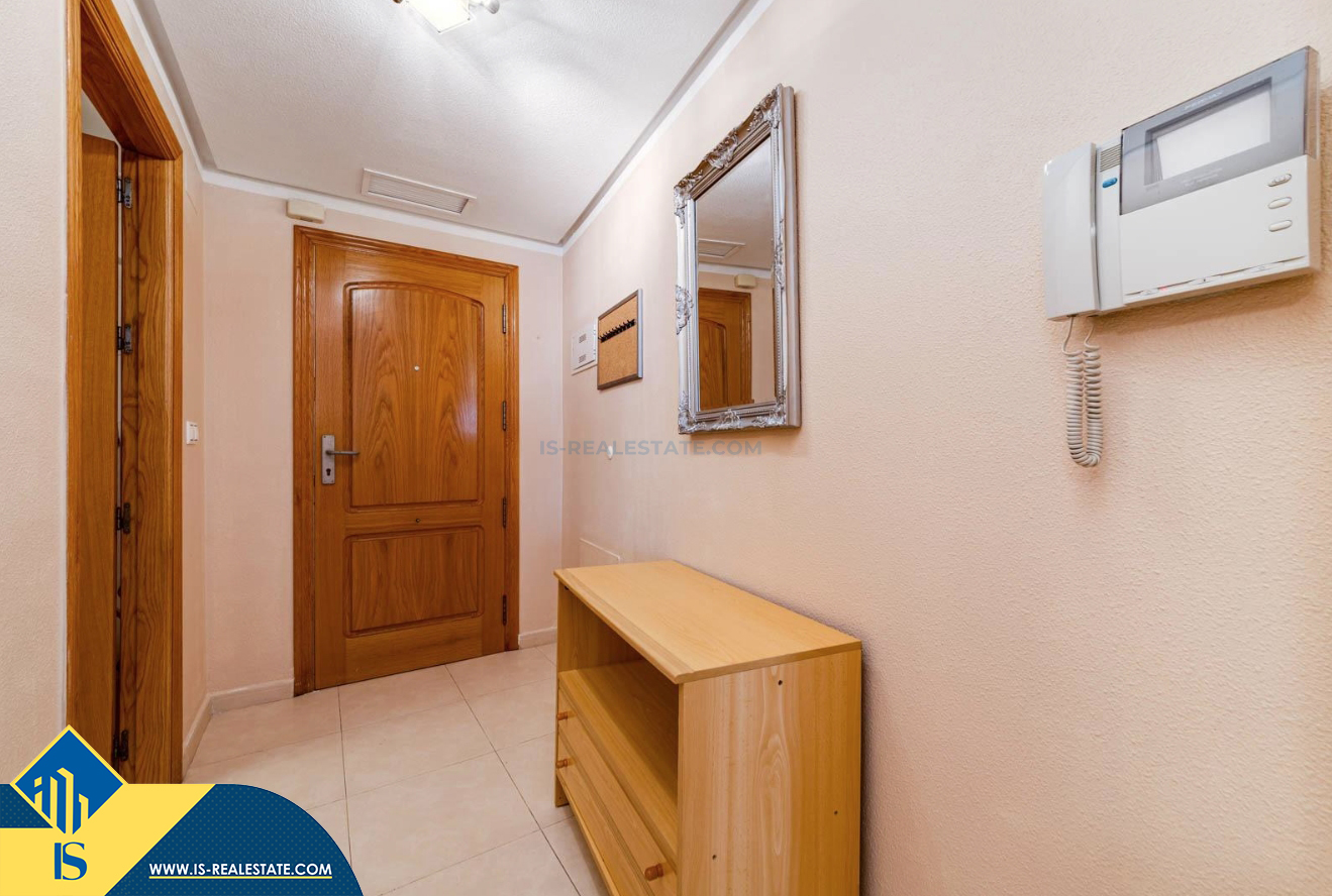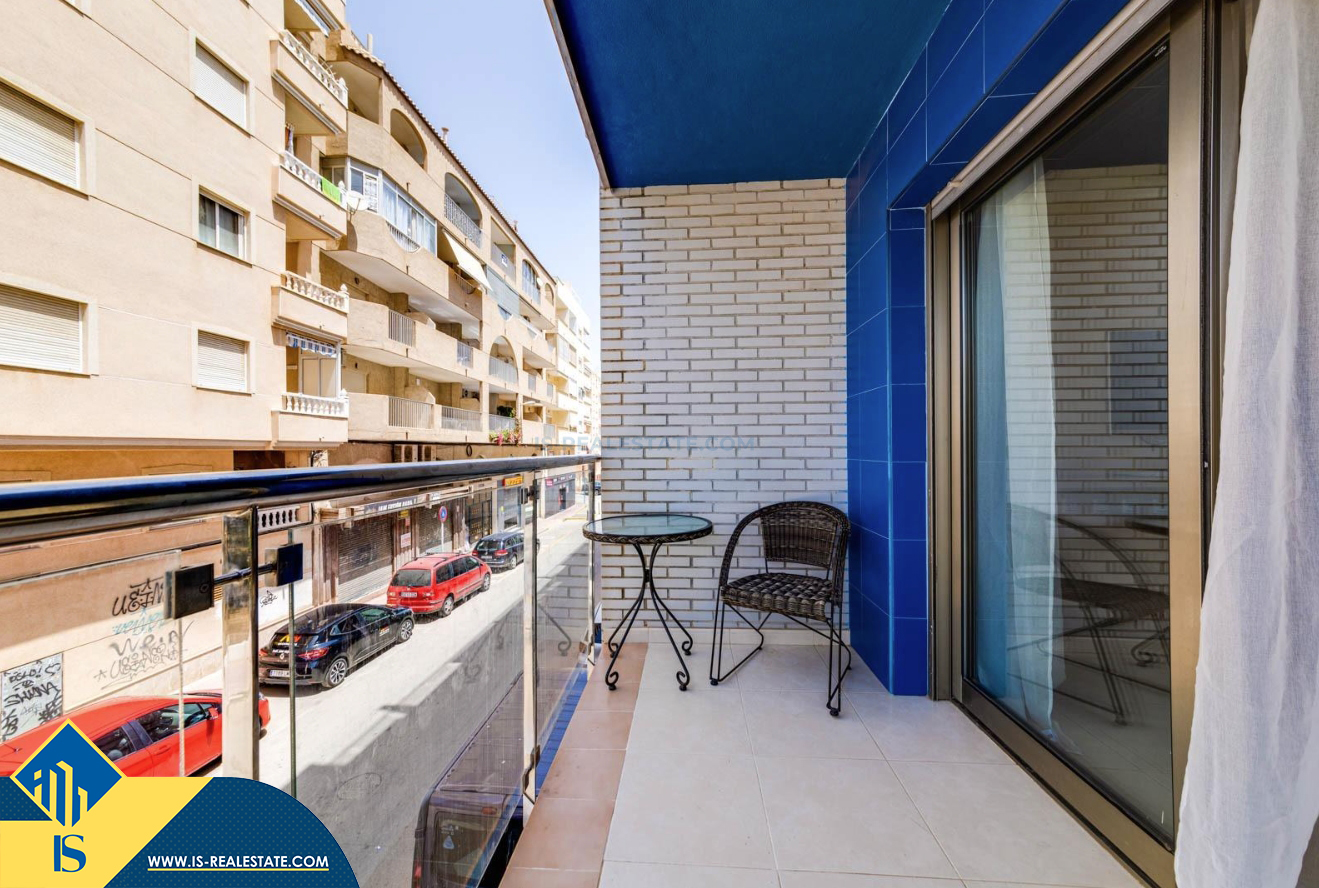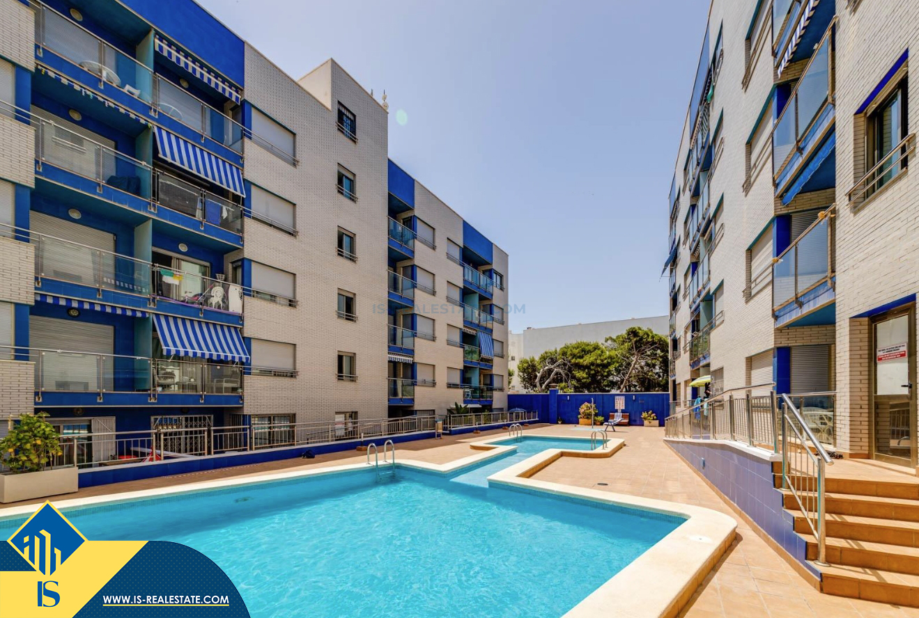 Studija su bendru baseinu, Ispanijoje, Alicante provincijoje, Torrevieja mieste, Playa de los Locos rajone, bendras plotas 49 m², 100 metrų iki jūros, 45 kilometrai iki Alicante oro uosto. Turtui priklauso bendras baseinas, terasa, liftas. Netoli turto yra parduotuvės, restoranai, vaistinės, autobusų stotelės, degalinės, žalios zonos, kavinės, Habaneras alėja
