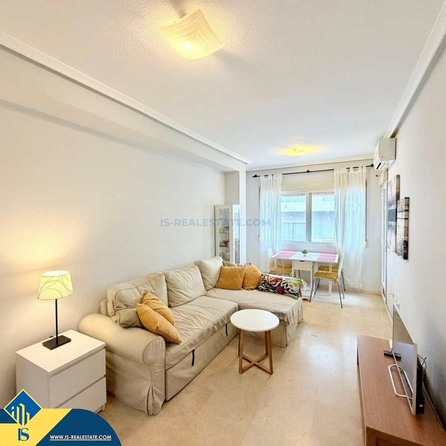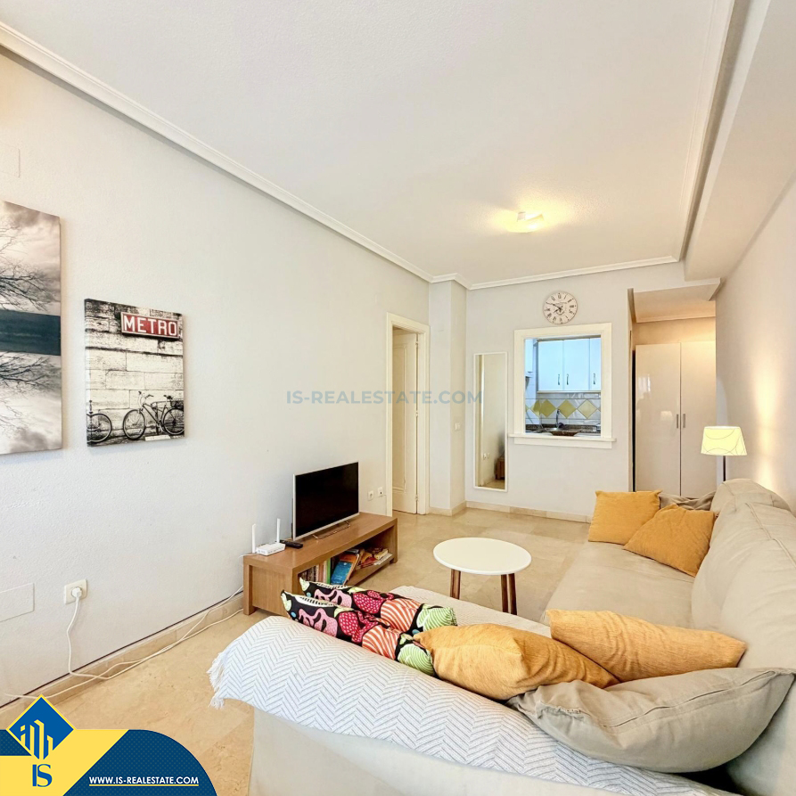 2-jų kambarių renovuotas apartamentas su terasa, Ispanijoje, Alicante provincijoje, Torrevieja mieste, bendras plotas 58 m², 1 kilometras iki jūros, 45 kilometrai iki Alicante oro uosto. Turtui priklauso terasa, liftas. Netoli turto yra parduotuvės, restoranai, vaistinės, autobusų stotelės, degalinės, žalios zonos, kavinės