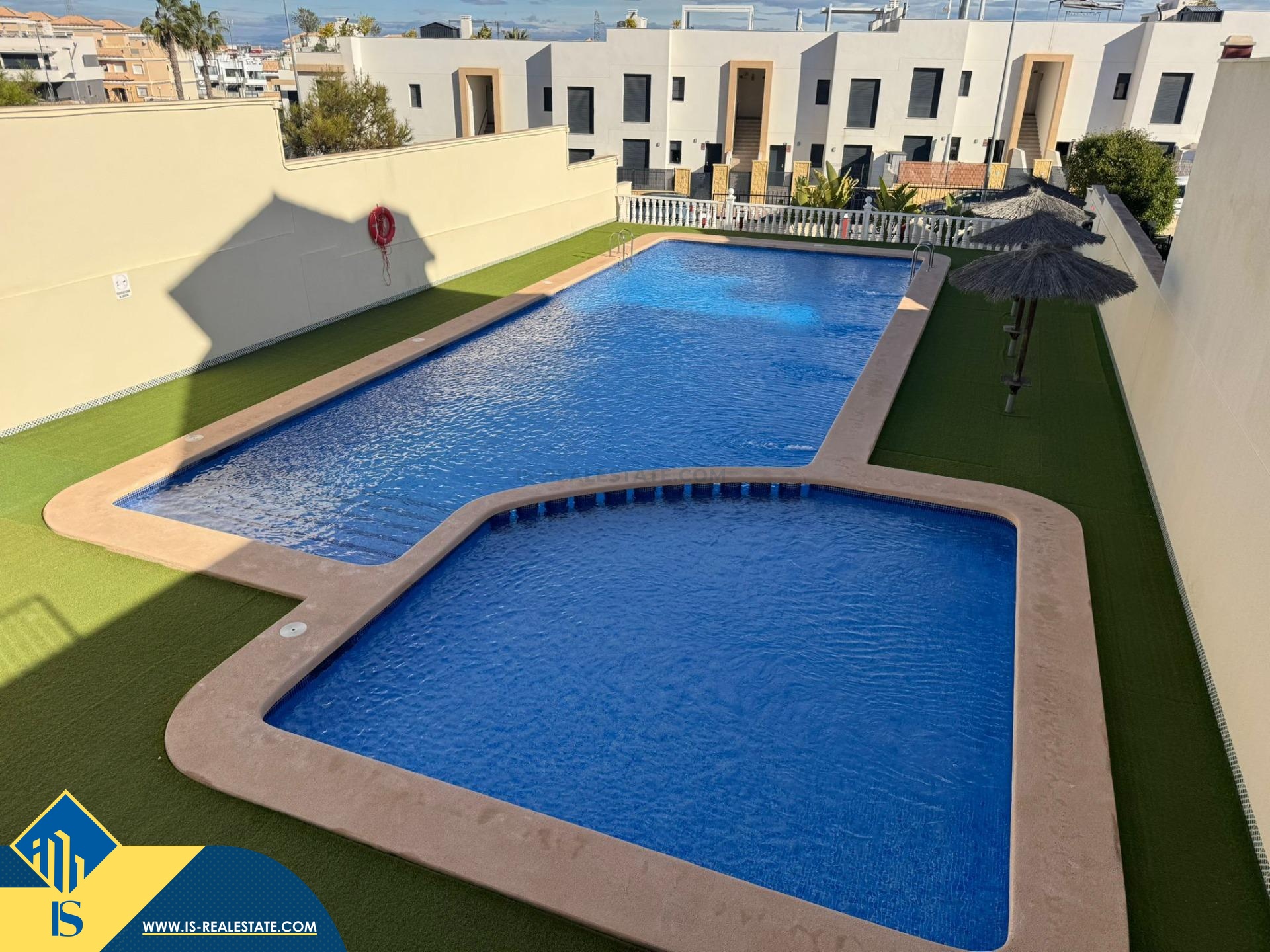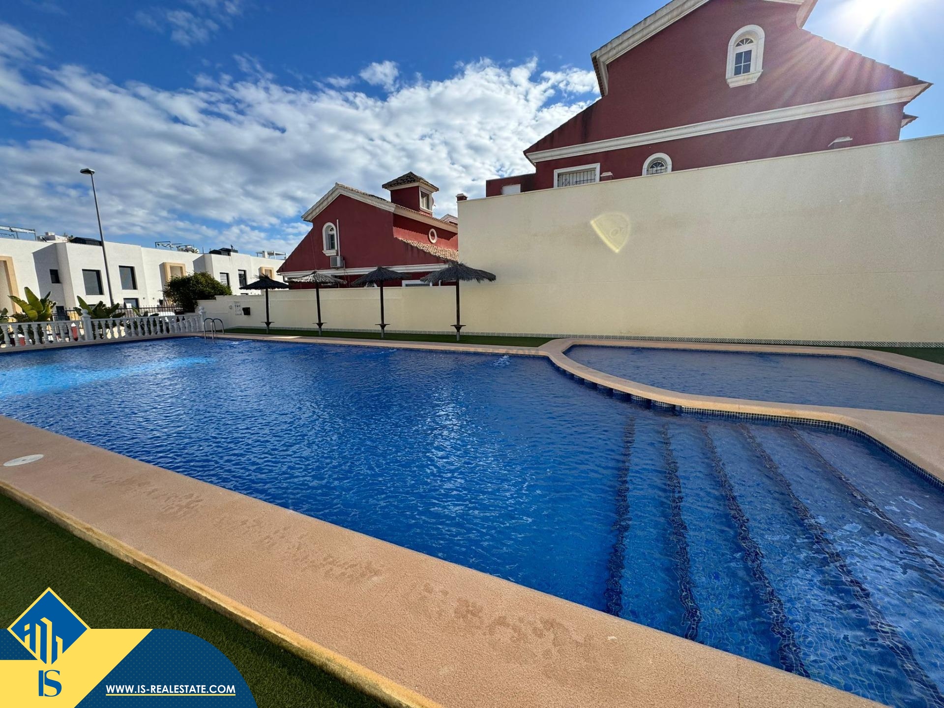 4-ių kambarių renovuotas namas su bendru baseinu, Ispanijoje, Alicante provincijoje, Orihuela Costa mieste, bendras plotas 80 m², 3 kilometrai iki jūros, 57 kilometrai iki Alicante oro uosto. Turtui priklauso bendras baseinas, terasa, vieta automobiliui. Netoli turto yra parduotuvės, restoranai, autobusų stotelės, vaikų zonos, degalinės, žalios zonos, kavinės, ligoninė