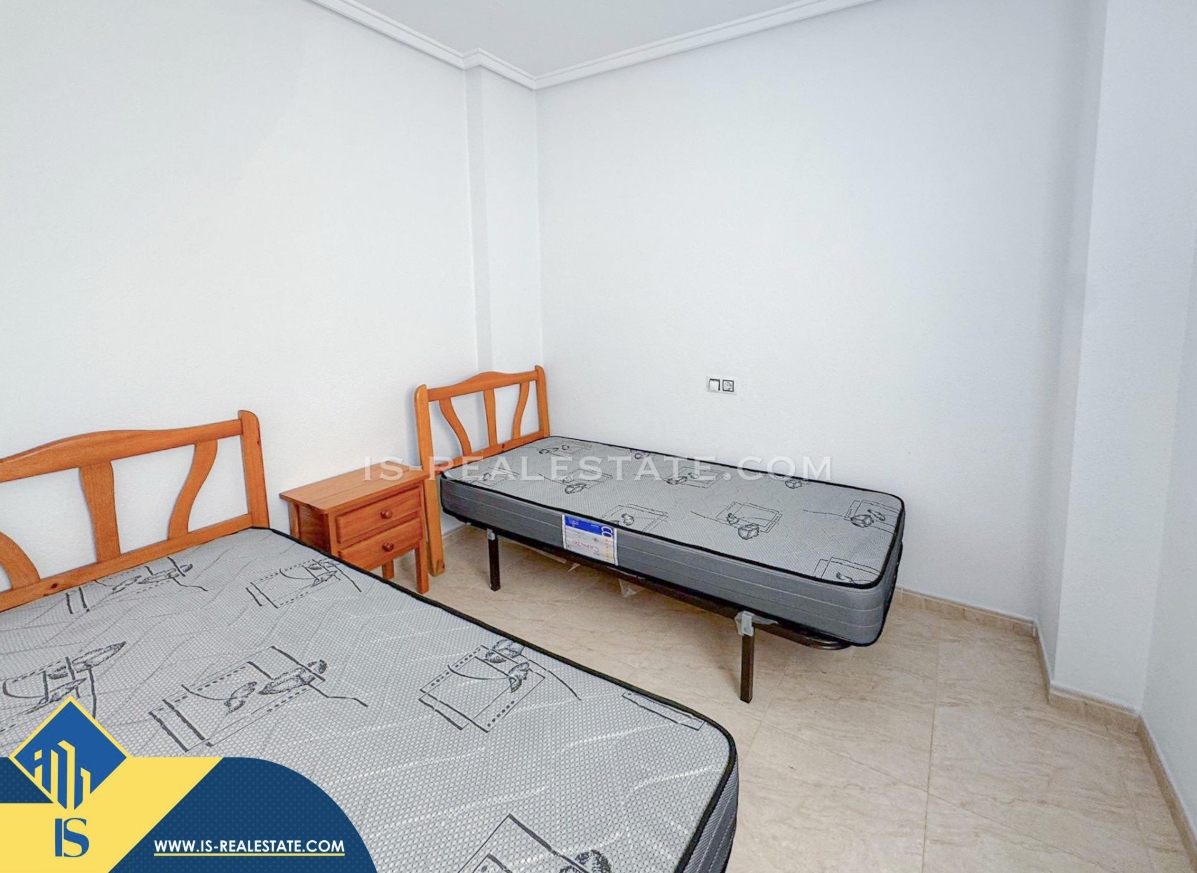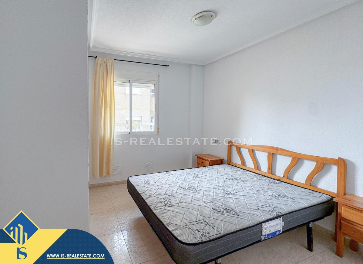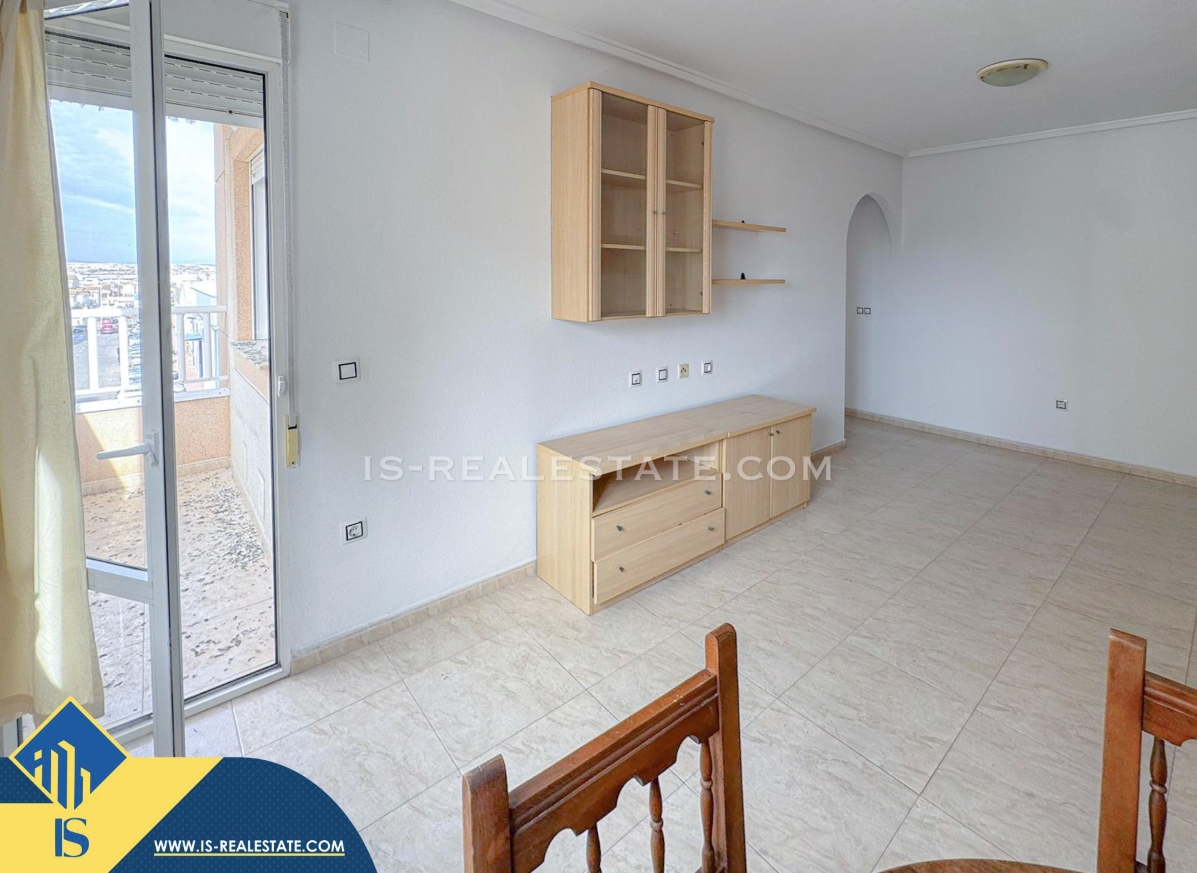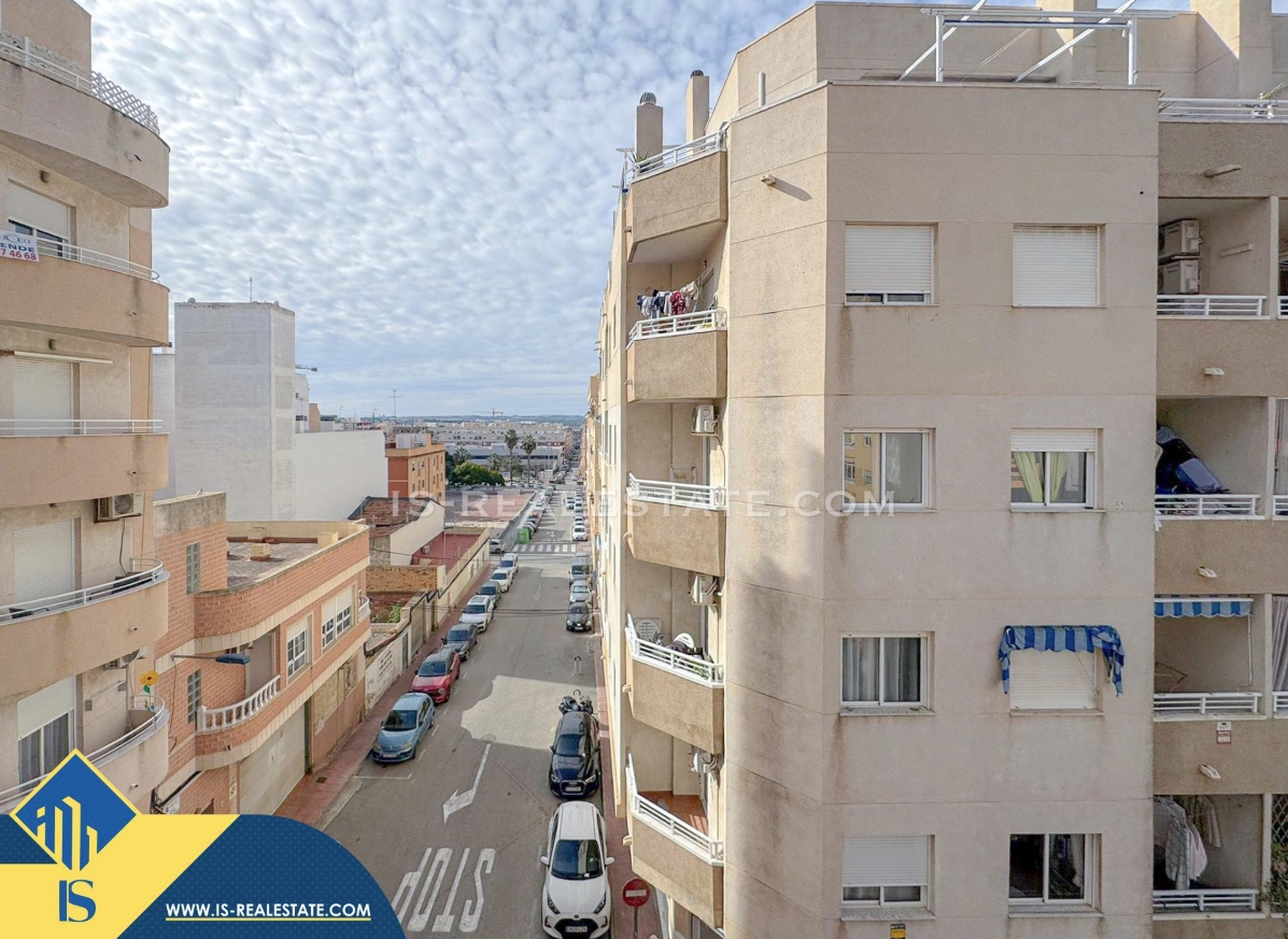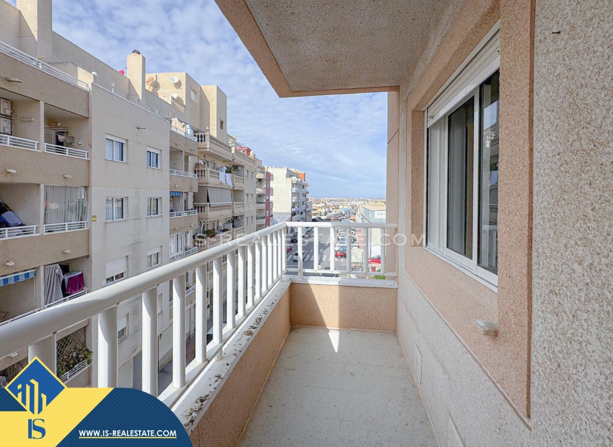 3-jų kambarių apartamentas su terasa, Ispanijoje, Alicante provincijoje, Torrevieja mieste, bendras plotas 63 m², 800 metrų iki jūros, 45 kilometrai iki Alicante oro uosto. Turtui priklauso terasa, liftas. Netoli turto yra parduotuvės, restoranai, vaistinės, autobusų stotelės, degalinės, žalios zonos, kavinės