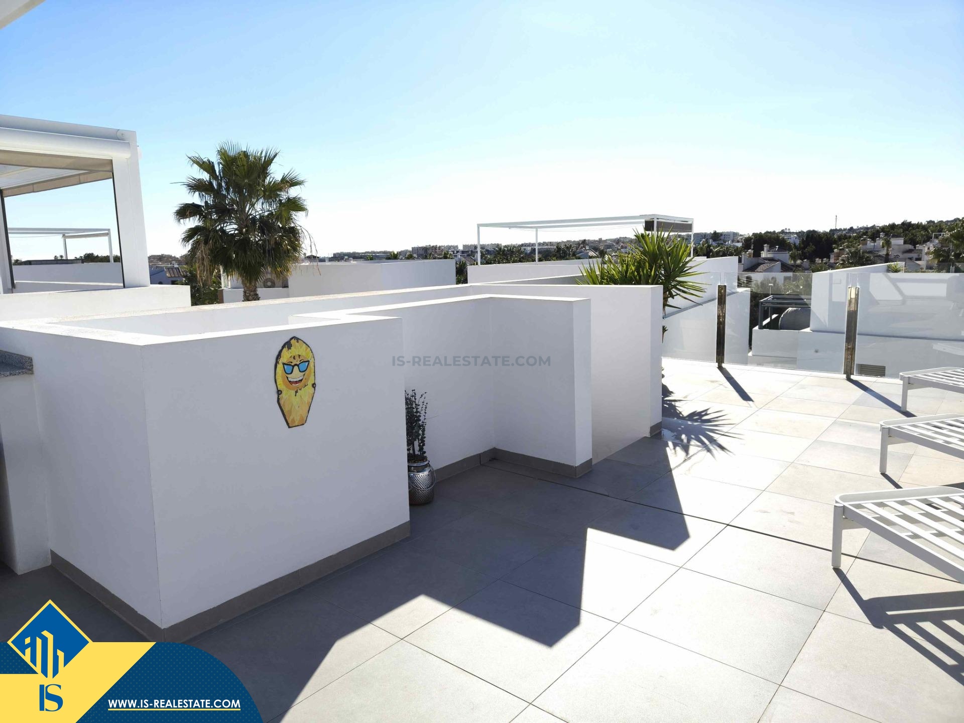 5-ių kambarių vila su privačiu baseinu, Ispanijoje, Alicante provincijoje, Orihuela Costa mieste, bendras plotas 195 m², 3 kilometrai iki jūros, 57 kilometrai iki Alicante oro uosto. Turtui priklauso privatus baseinas, terasa, vieta automobiliui, privatus kiemas, soliariumas. Netoli turto yra parduotuvės, restoranai, autobusų stotelės, vaikų zonos, degalinės, žalios zonos, kavinės, ligoninė