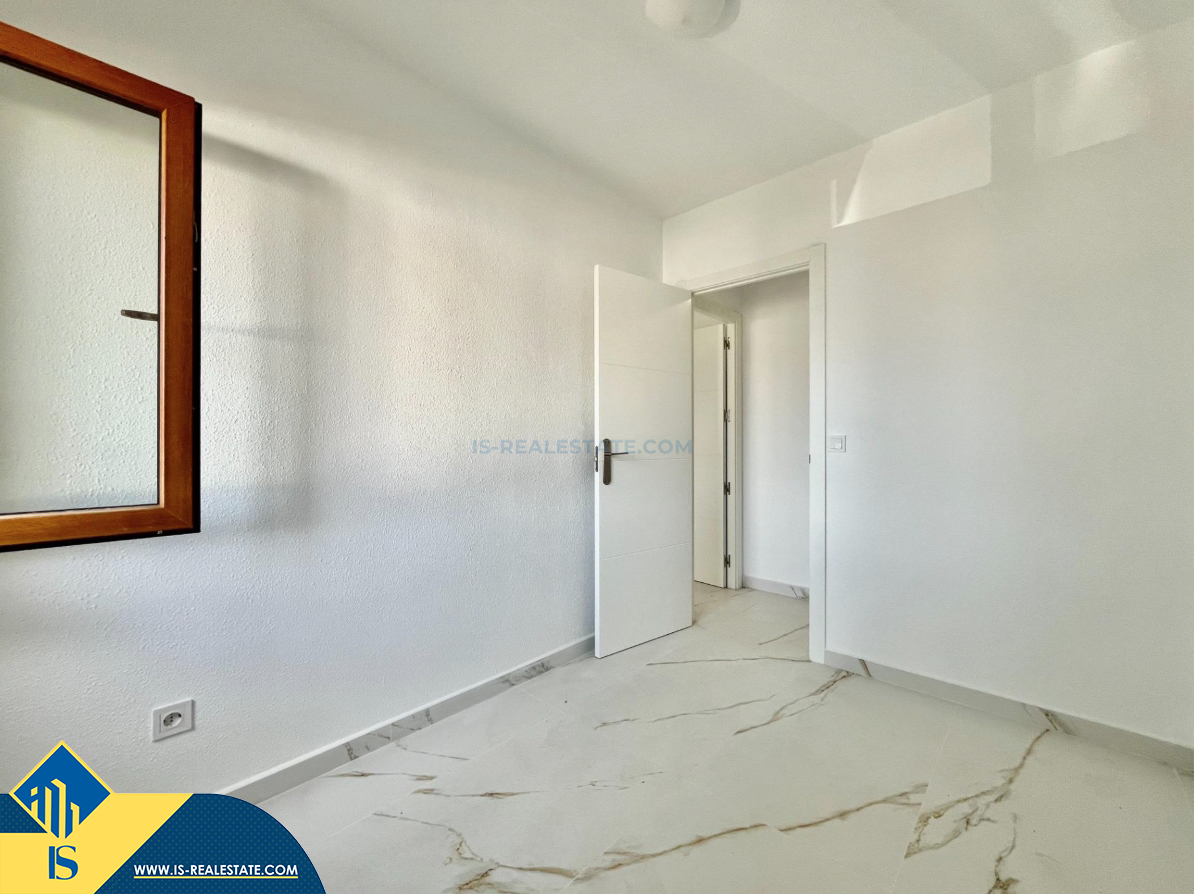 3-jų kambarių renovuotas apartamentas su terasa, Ispanijoje, Alicante provincijoje, Orihuela Costa mieste, bendras plotas 58 m², 3.8 kilometro iki jūros, 57 kilometrai iki Alicante oro uosto. Turtui priklauso terasa. Netoli turto yra parduotuvės, restoranai, autobusų stotelės, vaikų zonos, degalinės, žalios zonos, kavinės, ligoninė
