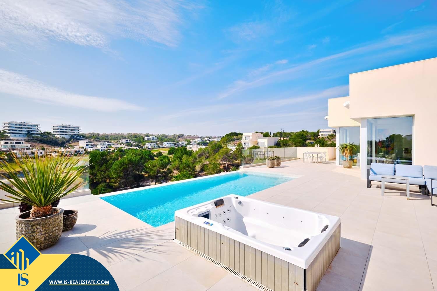 4-ių kambarių vila su privačiu baseinu, Ispanijoje, Alicante provincijoje, Orihuela Costa mieste, bendras plotas 192 m², 7 kilometrai iki jūros, 57 kilometrai iki Alicante oro uosto. Turtui priklauso privatus baseinas, terasa, vieta automobiliui, privatus kiemas. Netoli turto yra parduotuvės, restoranai, autobusų stotelės, vaikų zonos, degalinės, žalios zonos, kavinės, ligoninė