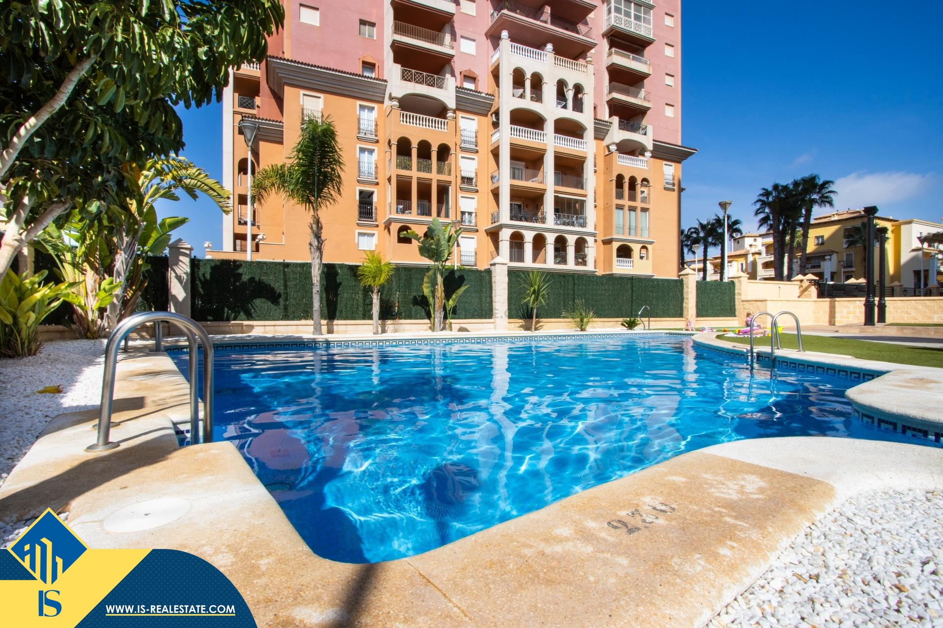 4-ių kambarių apartamentas su bendru baseinu, Ispanijoje, Alicante provincijoje, Torrevieja mieste, Playa de los Locos rajone, bendras plotas 103 m², 200 metrų iki jūros, 45 kilometrai iki Alicante oro uosto. Turtui priklauso bendras baseinas, terasa, liftas. Netoli turto yra parduotuvės, restoranai, autobusų stotelės, degalinės, žalios zonos, kavinės, vaistinės