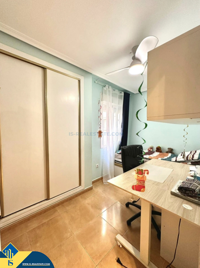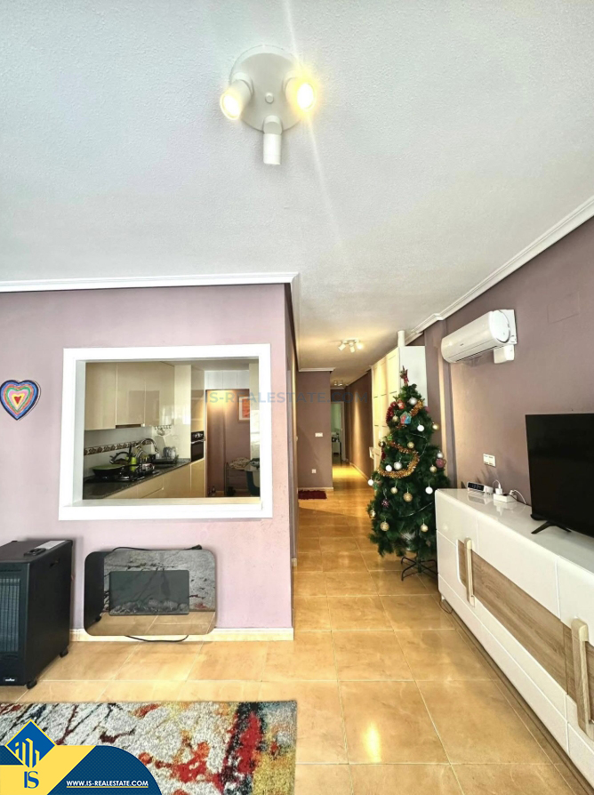 3-jų kambarių apartamentas su balkonu, Ispanijoje, Alicante provincijoje, Torrevieja mieste, bendras plotas 80 m², 700 metrų iki jūros, 45 kilometrai iki Alicante oro uosto. Turtui priklauso balkonas, liftas. Netoli turto yra parduotuvės, restoranai, vaistinės, autobusų stotelės, degalinės, žalios zonos, kavinės