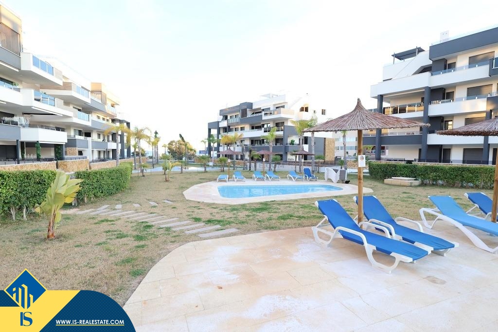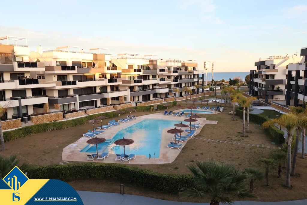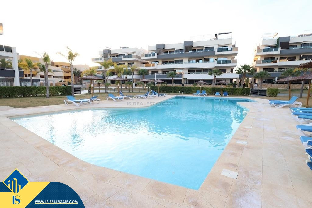 3-jų kambarių apartamentas su bendru baseinu, Ispanijoje, Alicante provincijoje, Orihuela Costa mieste, bendras plotas 81 m², 500 metrų iki jūros, 57 kilometrai iki Alicante oro uosto. Turtui priklauso bendras baseinas, terasa, liftas. Netoli turto yra parduotuvės, restoranai, autobusų stotelės, vaikų zonos, degalinės, žalios zonos, kavinės, ligoninė