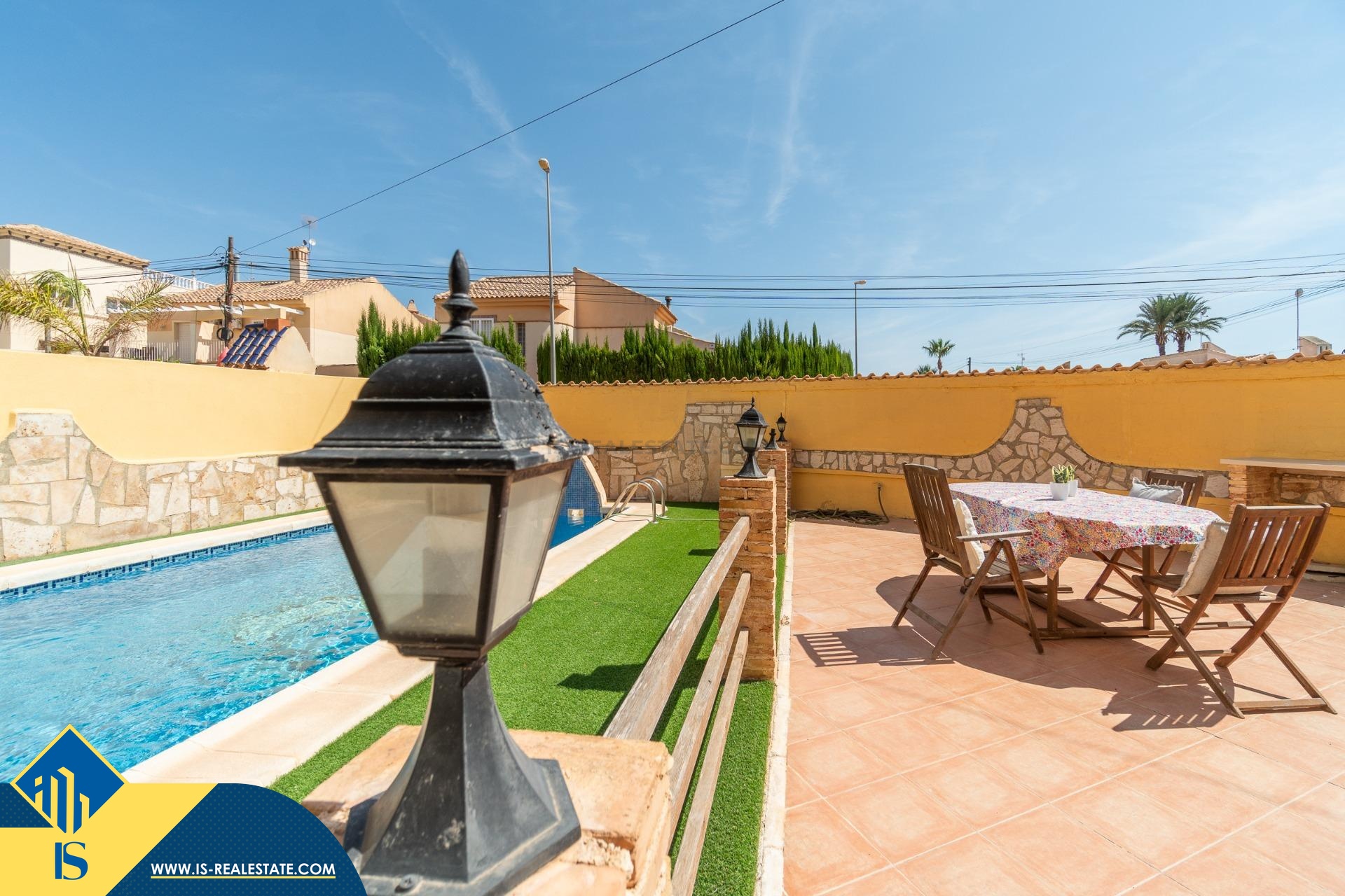 6-ių kambarių vila su privačiu baseinu, Ispanijoje, Alicante provincijoje, Orihuela Costa mieste, bendras plotas 151 m², 2 kilometrai iki jūros, 57 kilometrai iki Alicante oro uosto. Turtui priklauso privatus baseinas, terasa, vieta automobiliui, privatus kiemas. Netoli turto yra parduotuvės, restoranai, autobusų stotelės, vaikų zonos, degalinės, žalios zonos, kavinės, ligoninė