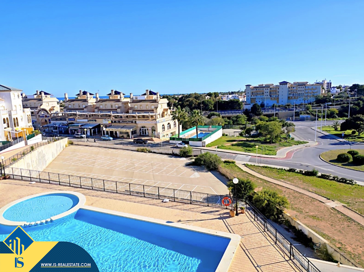 3-jų kambarių apartamentas su bendru baseinu, Ispanijoje, Alicante provincijoje, Orihuela Costa mieste, bendras plotas 66 m², 800 metrų iki jūros, 57 kilometrai iki Alicante oro uosto. Turtui priklauso bendras baseinas, terasa, liftas. Netoli turto yra parduotuvės, restoranai, autobusų stotelės, vaikų zonos, degalinės, žalios zonos, kavinės, ligoninė