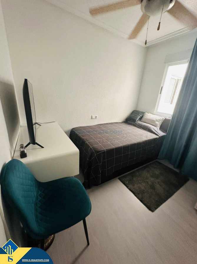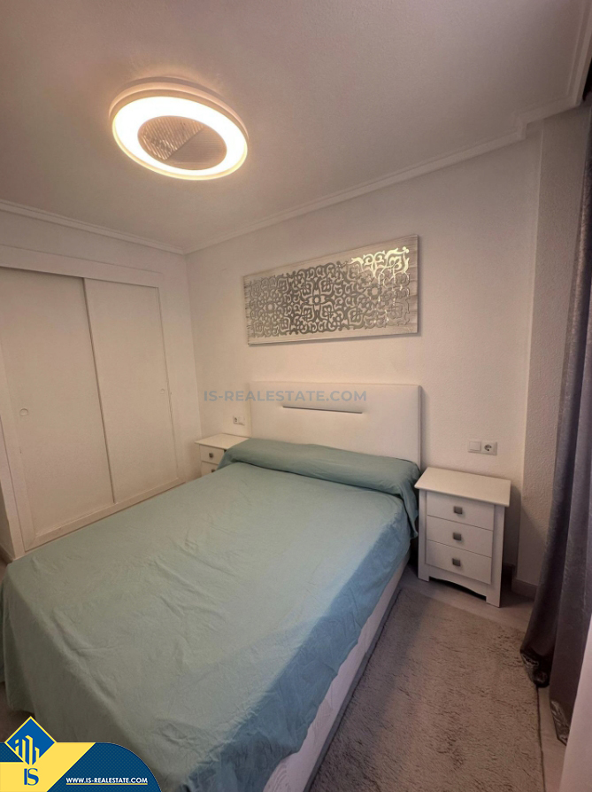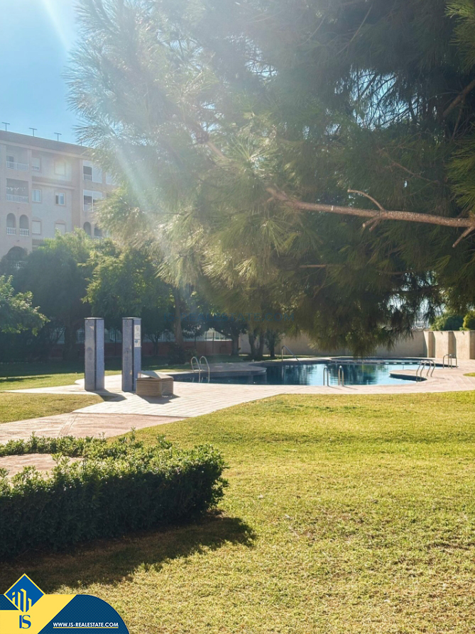 3-jų kambarių apartamentas su bendru baseinu, Ispanijoje, Alicante provincijoje, Torrevieja mieste, bendras plotas 65 m², 650 metrų iki jūros, 45 kilometrai iki Alicante oro uosto. Turtui priklauso bendras baseinas, terasa, liftas. Netoli turto yra parduotuvės, restoranai, vaistinės, autobusų stotelės, degalinės, žalios zonos, kavinės