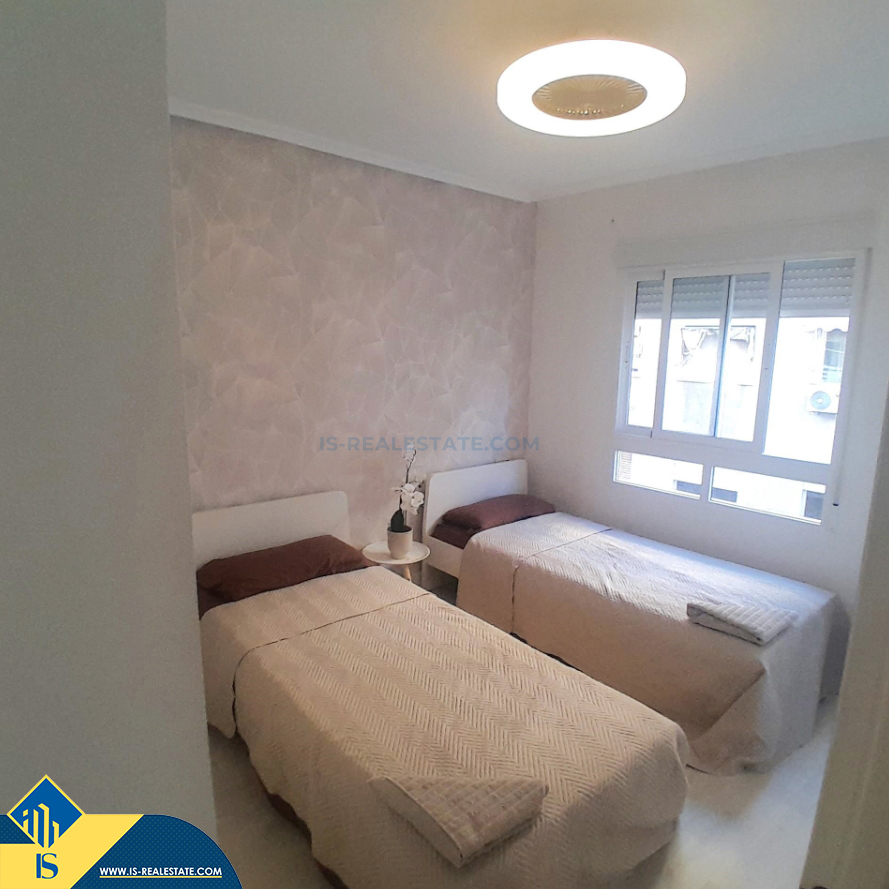 3-jų kambarių renovuotas apartamentas su terasa, Ispanijoje, Alicante provincijoje, Torrevieja mieste, bendras plotas 70 m², 1 kilometras iki jūros, 45 kilometrai iki Alicante oro uosto. Turtui priklauso terasa, liftas. Netoli turto yra parduotuvės, restoranai, vaistinės, autobusų stotelės, degalinės, žalios zonos, kavinės