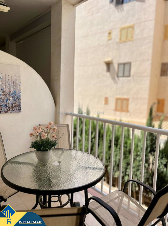 3-jų kambarių apartamentas su bendru baseinu, Ispanijoje, Alicante provincijoje, Torrevieja mieste, bendras plotas 65 m², 600 metrų iki jūros, 45 kilometrai iki Alicante oro uosto. Turtui priklauso bendras baseinas, terasa. Netoli turto yra parduotuvės, restoranai, vaistinės, autobusų stotelės, degalinės, žalios zonos, kavinės