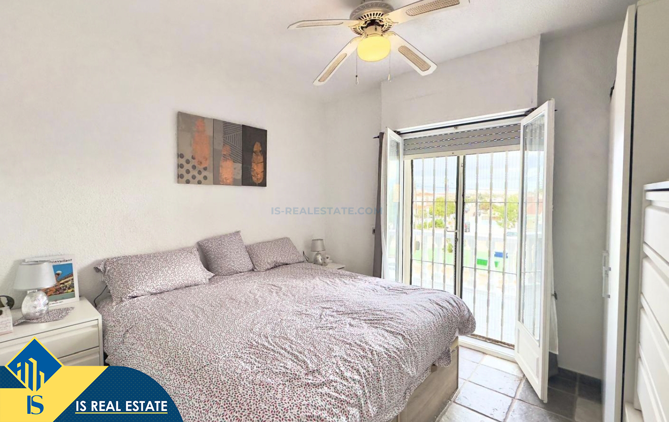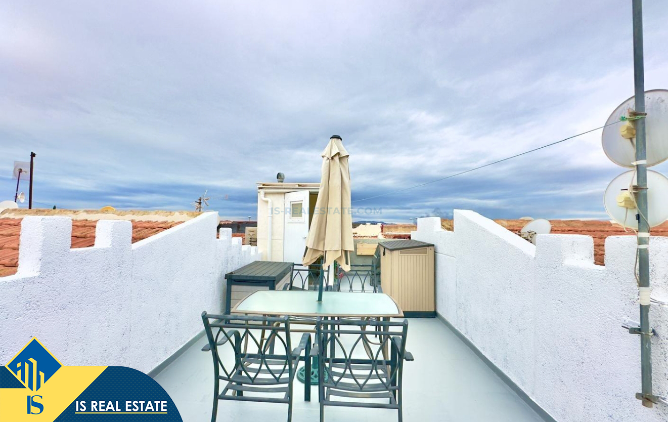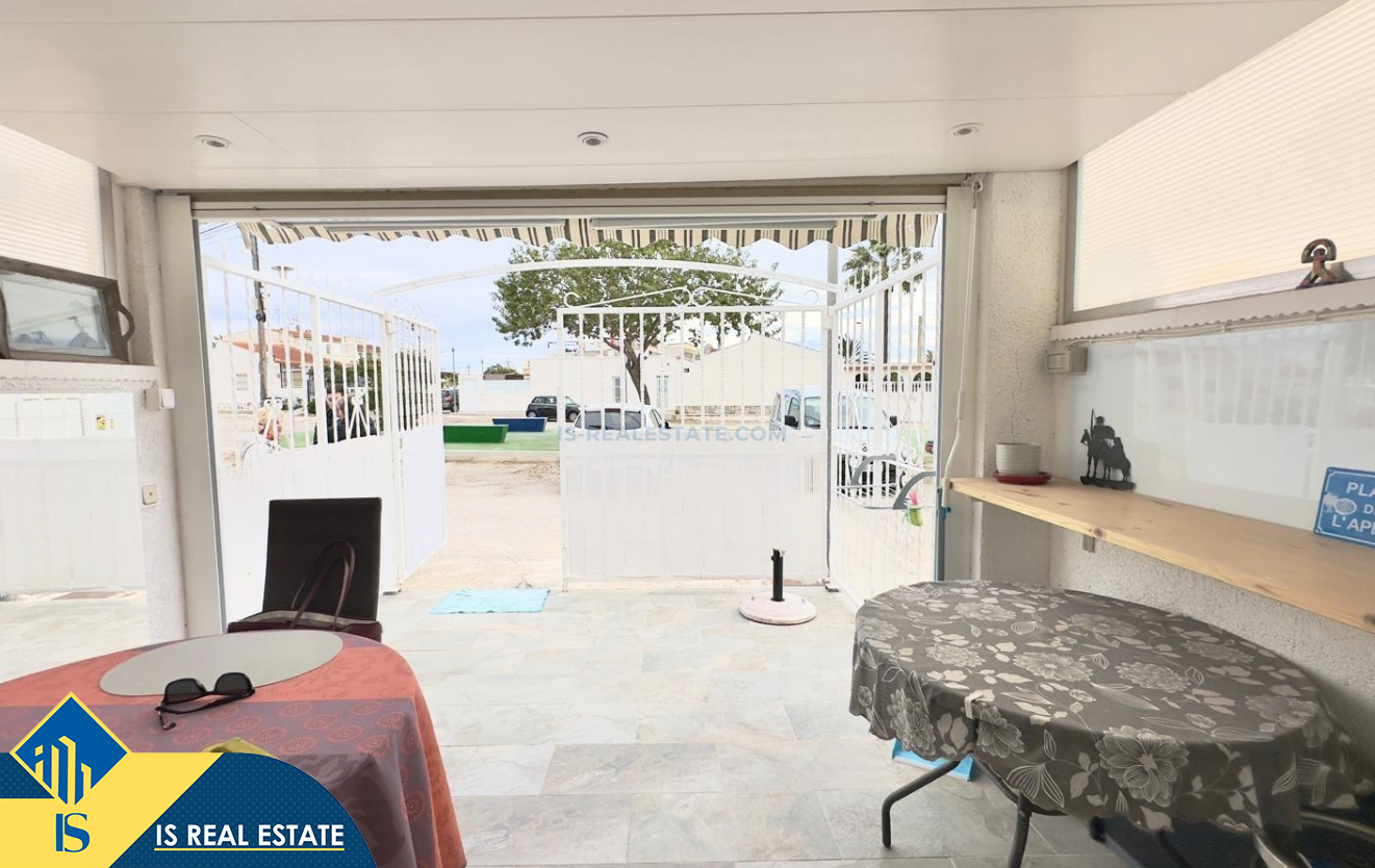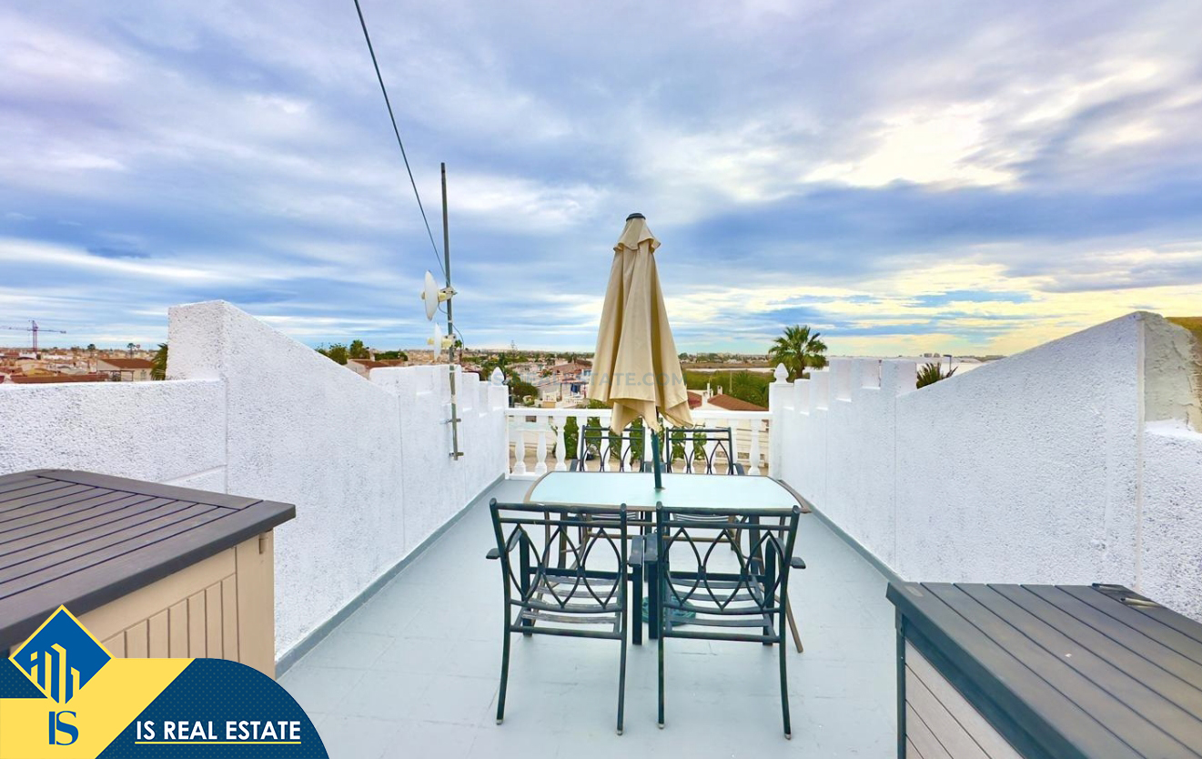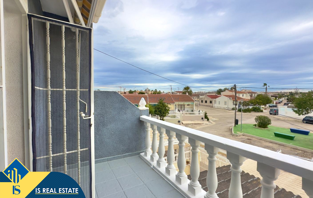 3-jų kambarių namas su bendru baseinu, Ispanijoje, Alicante provincijoje, Torrevieja mieste, Torreta rajone, bendras plotas 57 m², 3.5 kilometro iki jūros, 45 kilometrai iki Alicante oro uosto. Turtui priklauso bendras baseinas, terasa, soliariumas, kiemelis. Netoli turto yra parduotuvės, restoranai, autobusų stotelės, vaikų zonos, degalinės, žalios zonos, kavinės, vaistinės