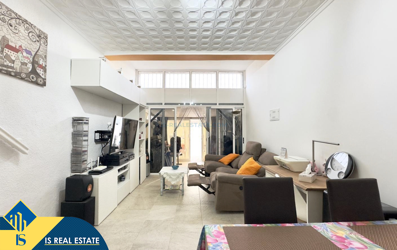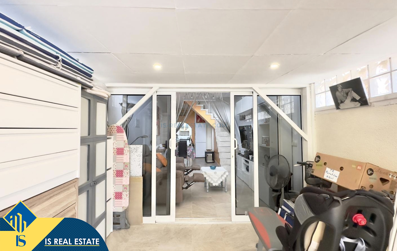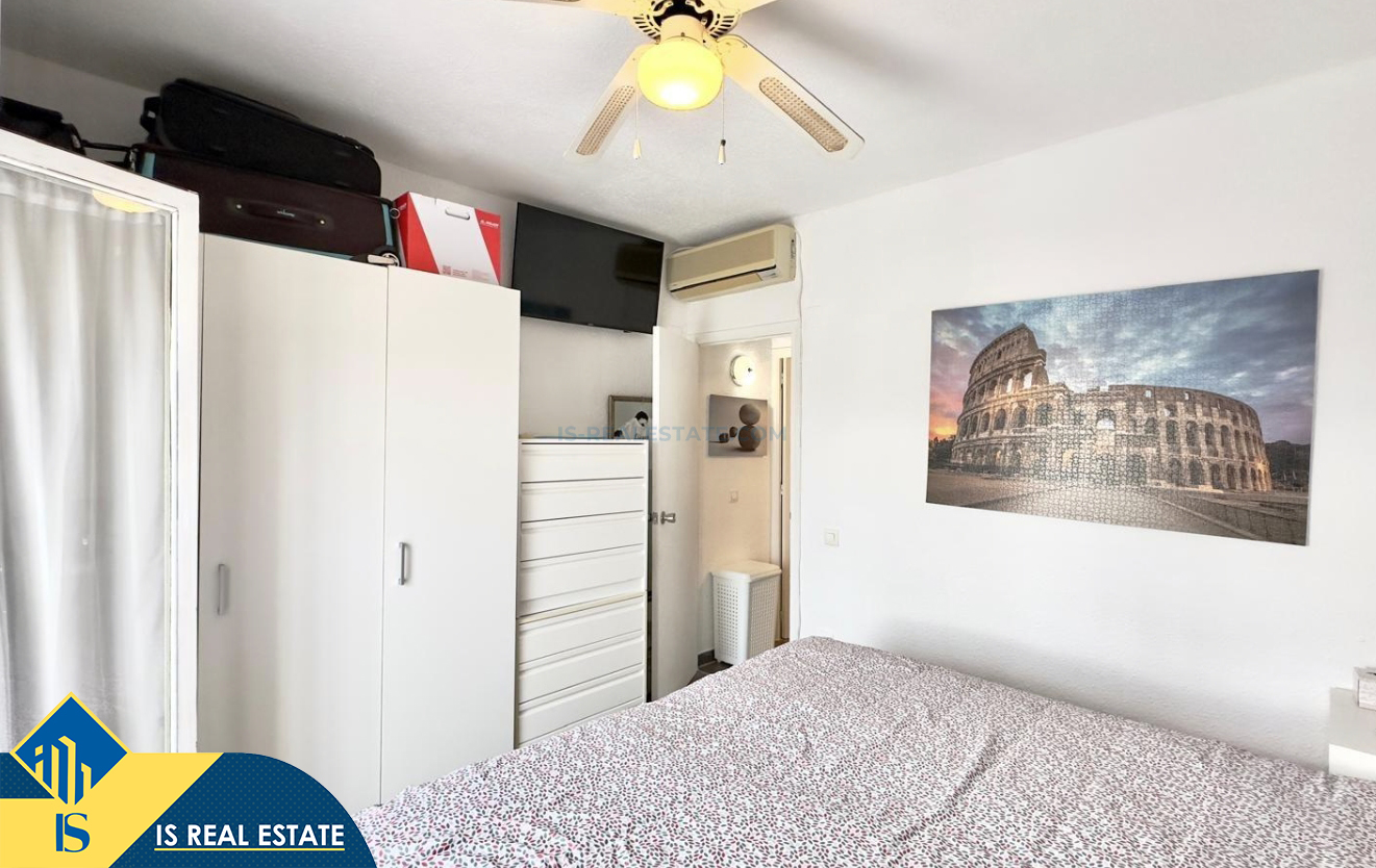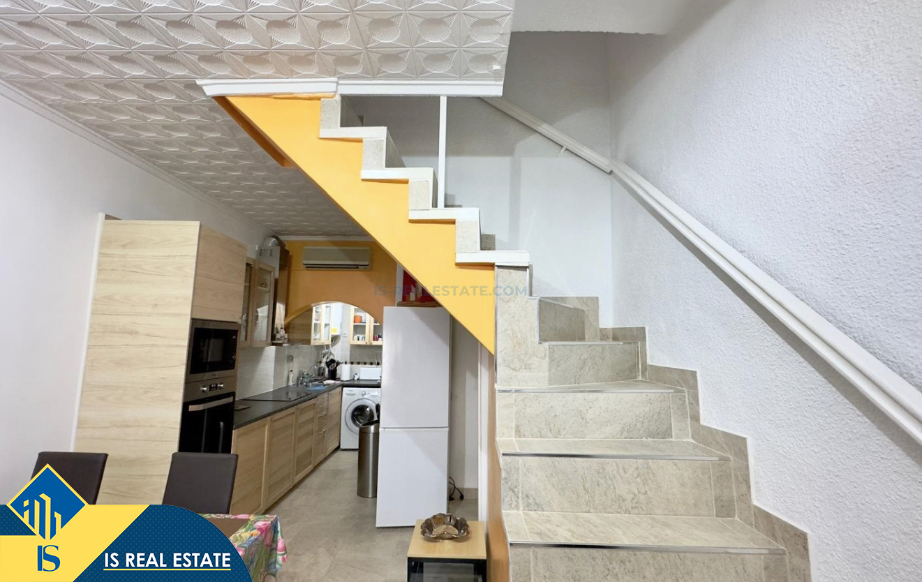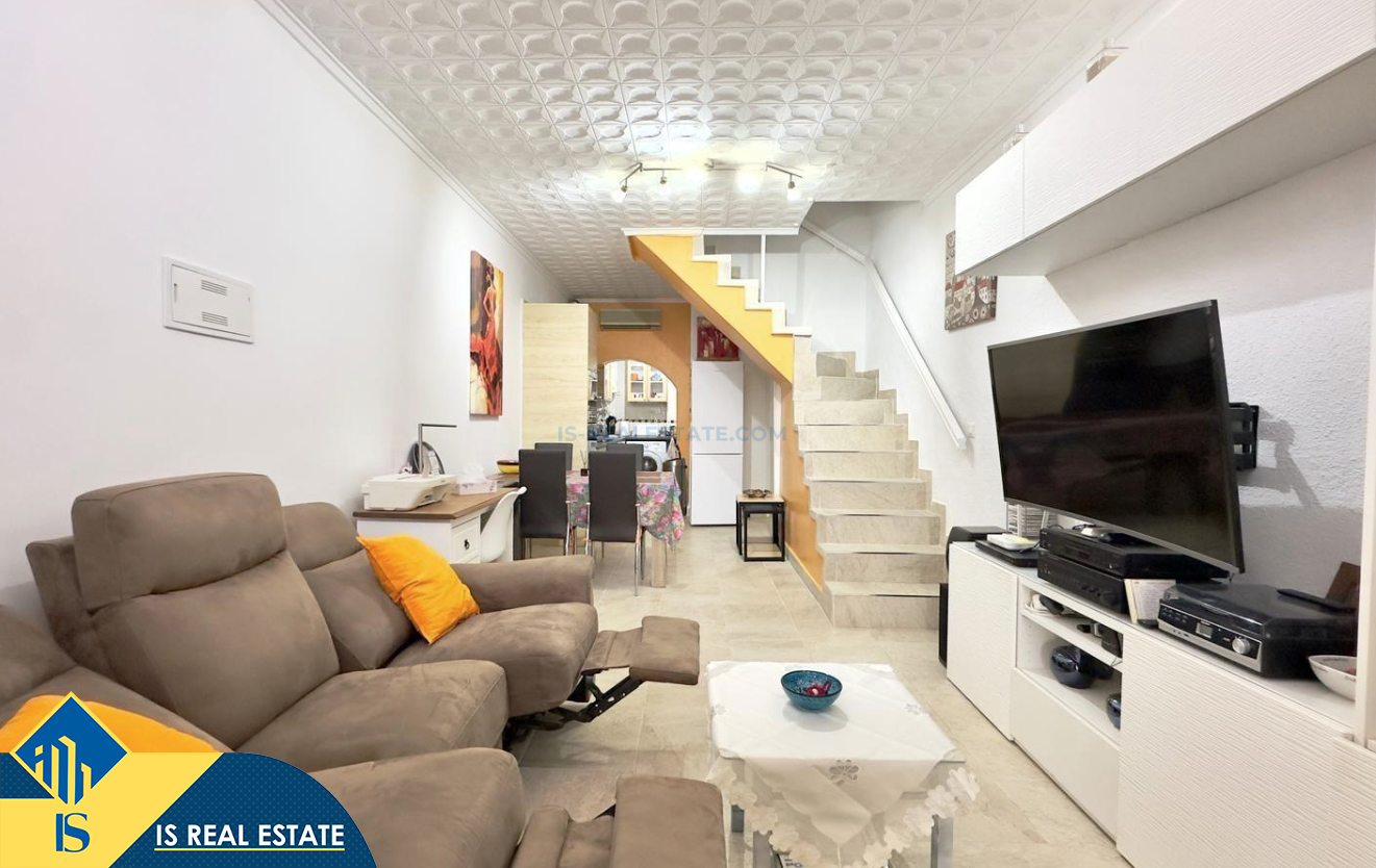 3-jų kambarių namas su bendru baseinu, Ispanijoje, Alicante provincijoje, Torrevieja mieste, Torreta rajone, bendras plotas 57 m², 3.5 kilometro iki jūros, 45 kilometrai iki Alicante oro uosto. Turtui priklauso bendras baseinas, terasa, soliariumas, kiemelis. Netoli turto yra parduotuvės, restoranai, autobusų stotelės, vaikų zonos, degalinės, žalios zonos, kavinės, vaistinės