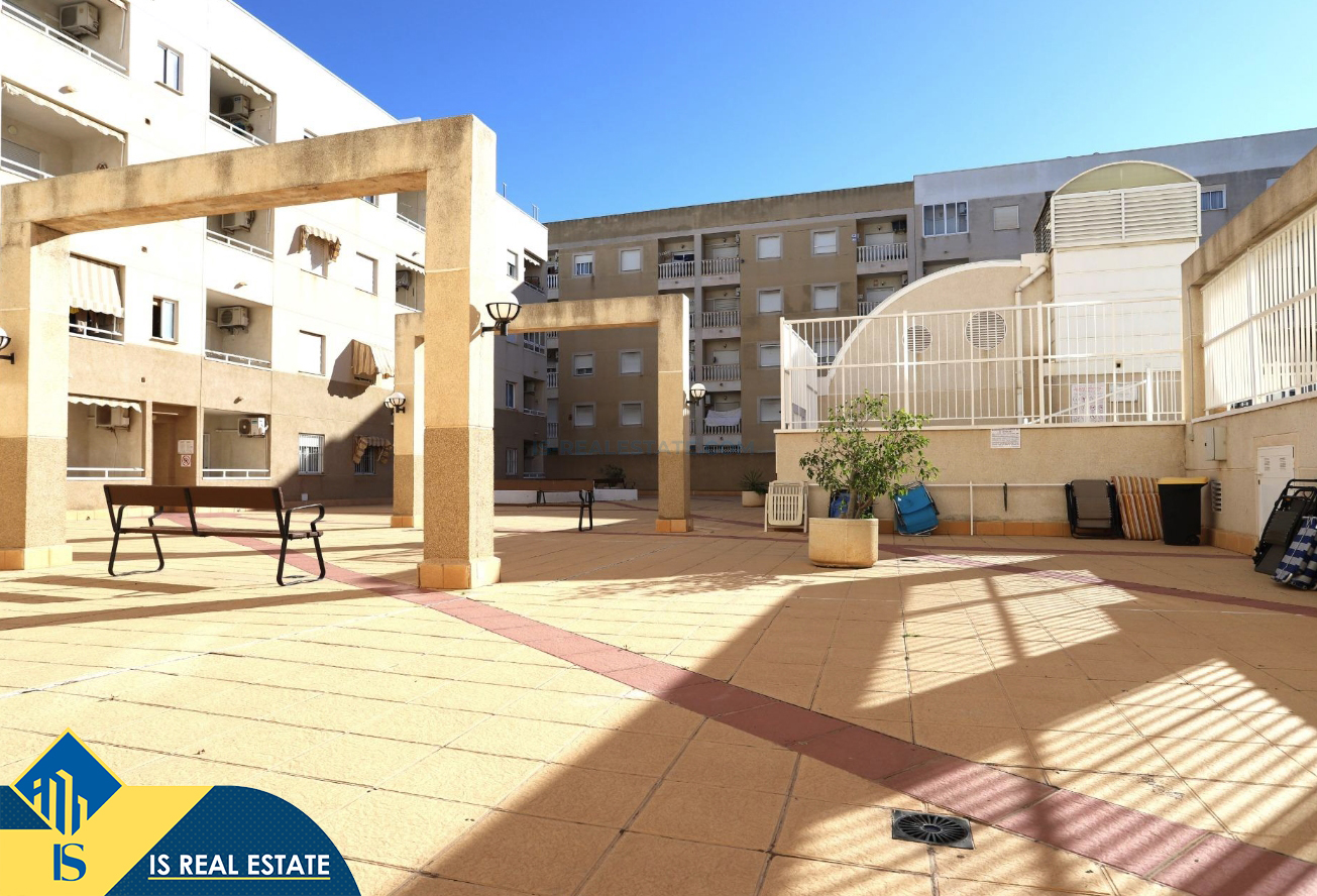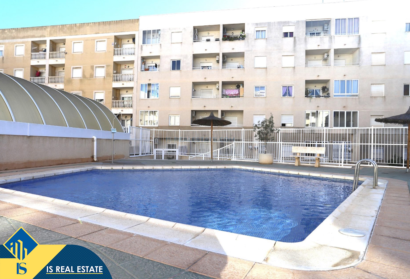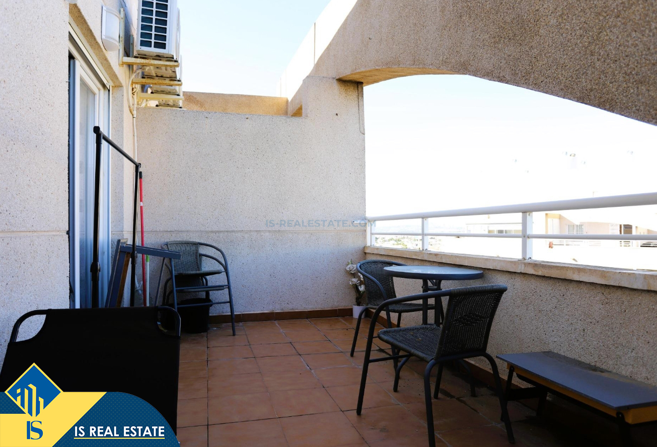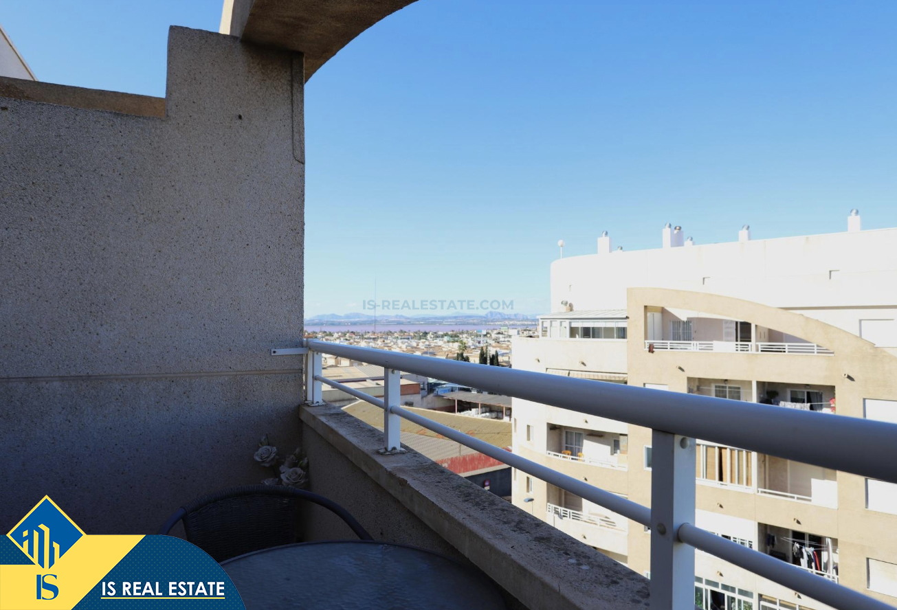 3-jų kambarių penthouse apartamentas su bendru baseinu, Ispanijoje, Alicante provincijoje, Torrevieja mieste, bendras plotas 63 m², 1.3 kilometro iki jūros, 45 kilometrai iki Alicante oro uosto. Turtui priklauso bendras baseinas, terasa, liftas, sandėliukas. Netoli turto yra parduotuvės, restoranai, vaistinės, autobusų stotelės, degalinės, žalios zonos, kavinės