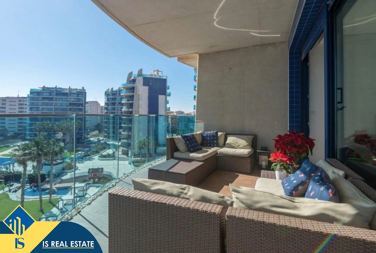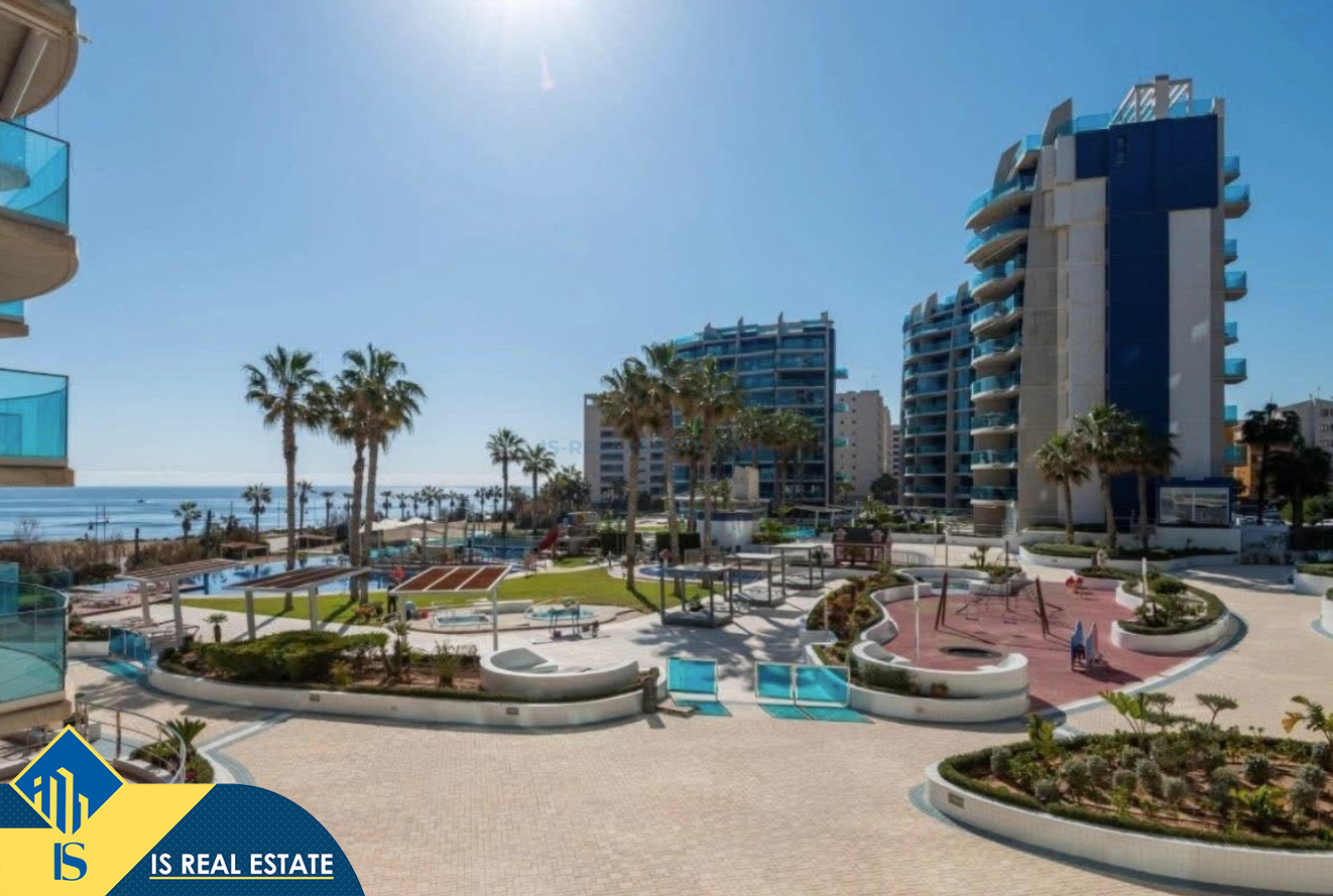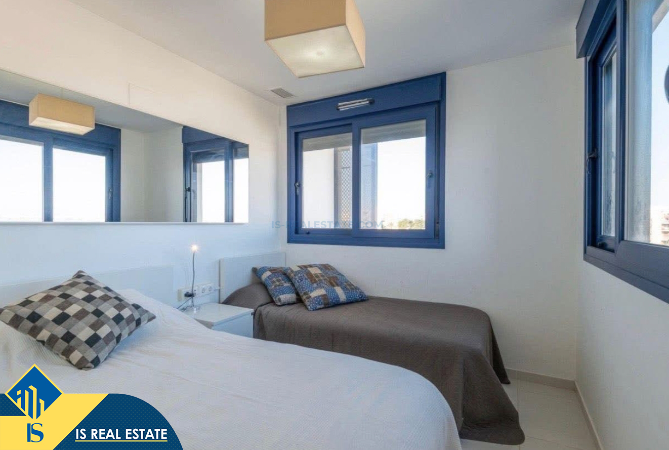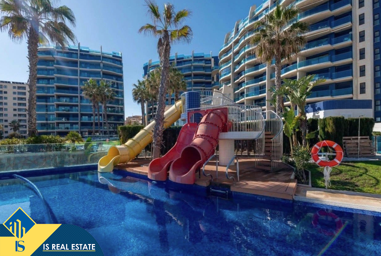 3-jų kambarių apartamentas su bendru baseinu, Ispanijoje, Alicante provincijoje, Torrevieja mieste, bendras plotas 55 m², 150 metrų iki jūros, 45 kilometrai iki Alicante oro uosto. Turtui priklauso bendras baseinas, terasa, liftas. Netoli turto yra parduotuvės, restoranai, vaistinės, autobusų stotelės, degalinės, žalios zonos, kavinės