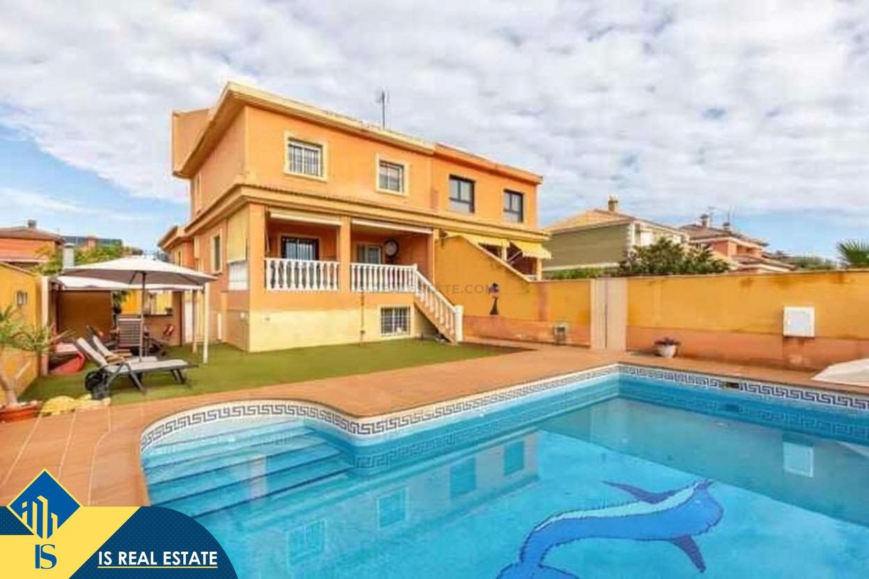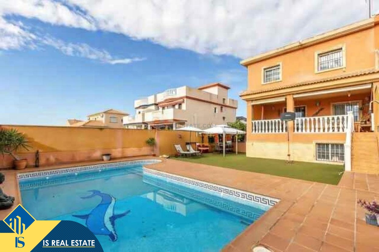 5-ių kambarių vila su privačiu baseinu, Ispanijoje, Alicante provincijoje, Torrevieja mieste, La Mata rajone, bendras plotas 250 m², 1.5 kilometrai iki paplūdimio, 45 kilometrai iki Alicante miesto oro uosto. Turtui priklauso privatus kiemas, privatus baseinas, terasa, vieta automobiliui. Netoli turto yra parduotuvės, restoranai, autobusų stotelės, vaikų zonos, degalinės, žalios zonos, kavinės, vaistinės