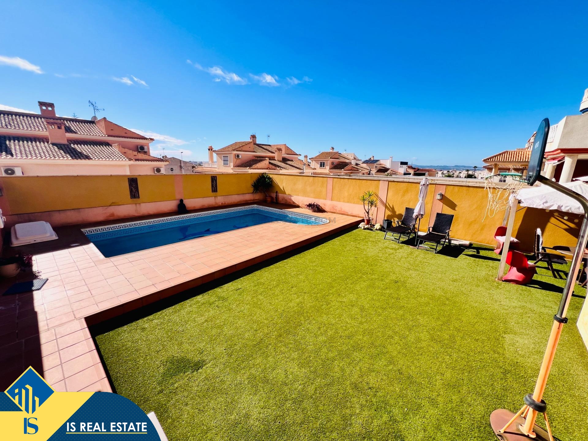 5-ių kambarių vila su privačiu baseinu, Ispanijoje, Alicante provincijoje, Torrevieja mieste, Los Balcones rajone, bendras plotas 250 m², 1.5 kilometrai iki jūros, 45 kilometrai iki Alicante miesto oro uosto. Turtui priklauso privatus baseinas, kiemas, terasa, vieta automobiliui. Netoli turto yra parduotuvės, restoranai, autobusų stotelės, vaikų zonos, degalinės, žalios zonos, kavinės, vaistinės