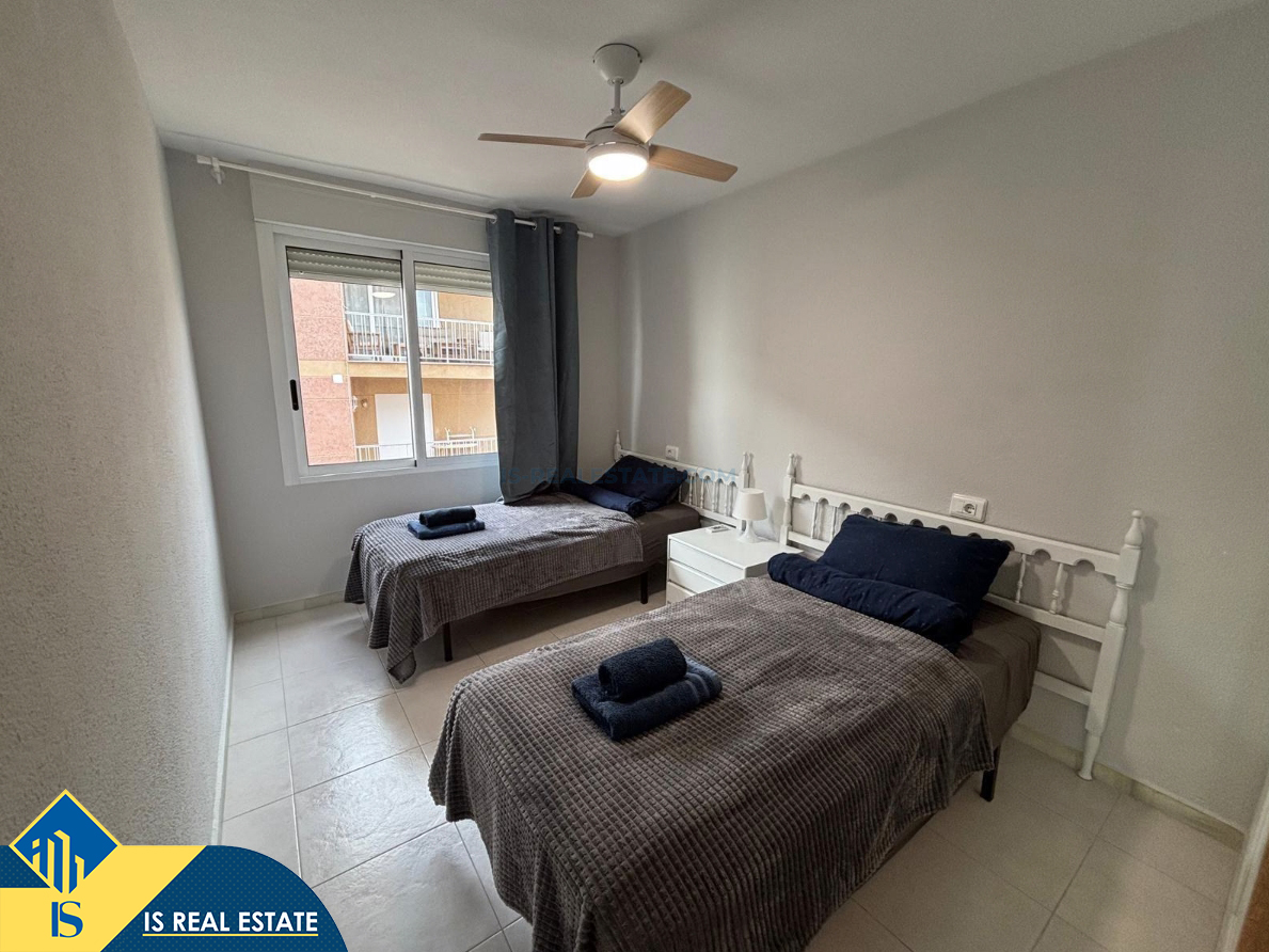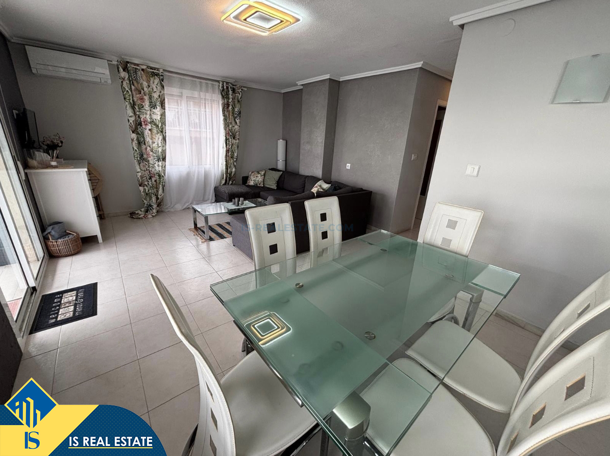 3-jų kambarių renovuotas apartamentas su terasa, Ispanijoje, Alicante provincijoje, Torrevieja mieste, Playa de los Náufragos rajone, bendras plotas 77 m², 30 metrų iki jūros, 45 kilometrai iki Alicante oro uosto. Turtui priklauso terasa. Netoli turto yra parduotuvės, restoranai, vaistinės, autobusų stotelės, degalinės, žalios zonos, kavinės