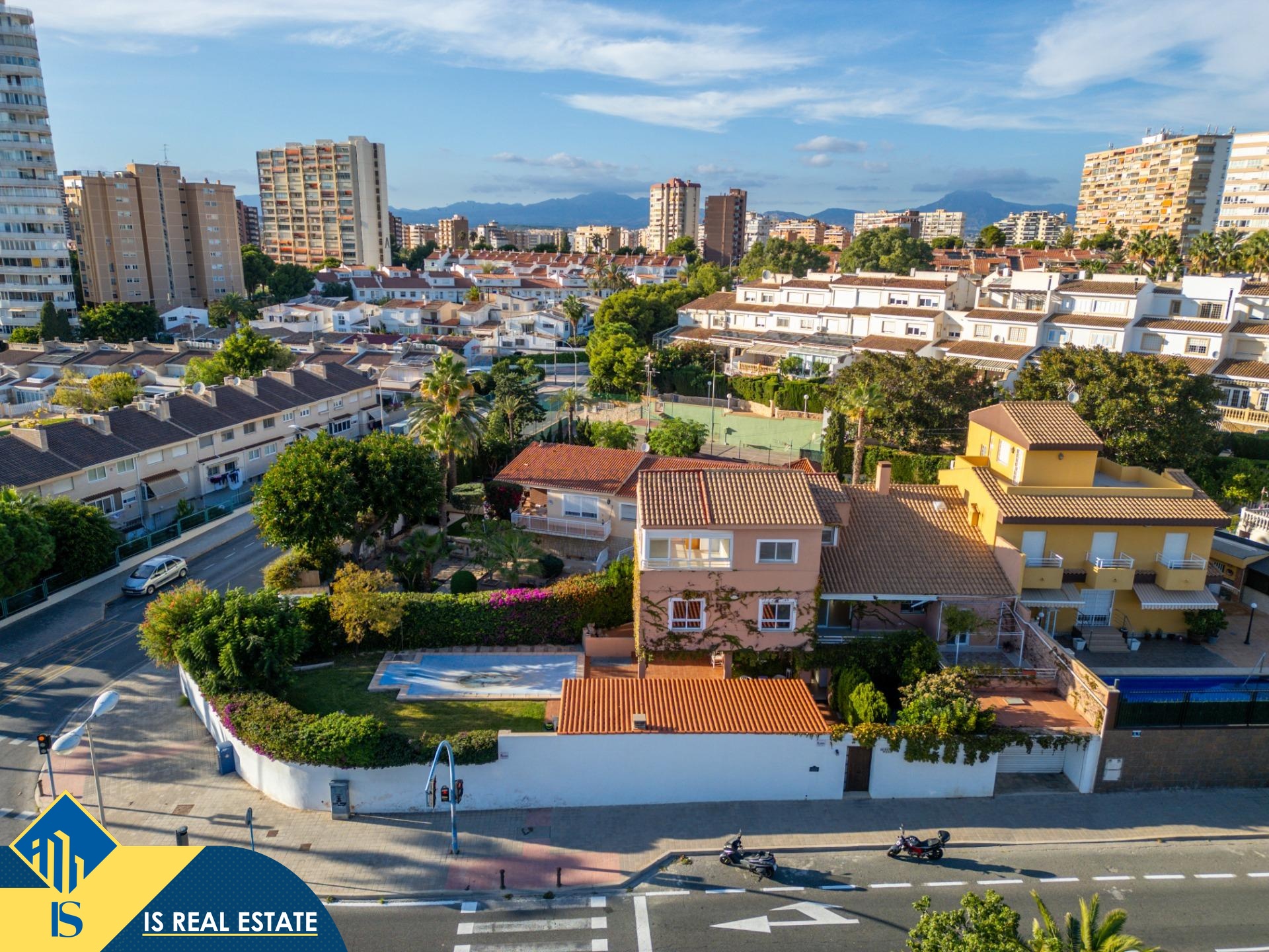 8-ių kambarių vila su privačiu, Ispanijoje, Alicante provincijoje, Alicante mieste, bendras plotas 580 m², 300 metrų iki jūros, 8 kilometrai iki oro uosto. Turtui priklauso privatus baseinas, vieta automobiliui, terasa. Netoli turto yra parduotuvės, restoranai, autobusų stotelės, degalinės, žalios zonos, kavinės, mokyklos