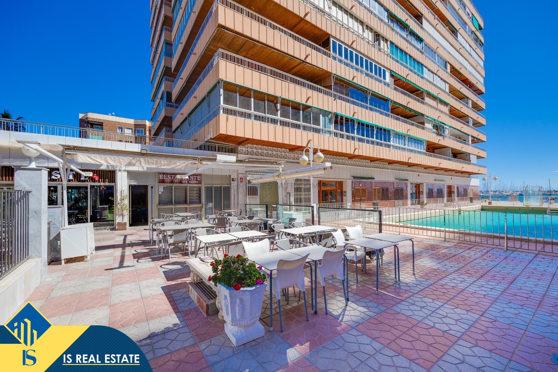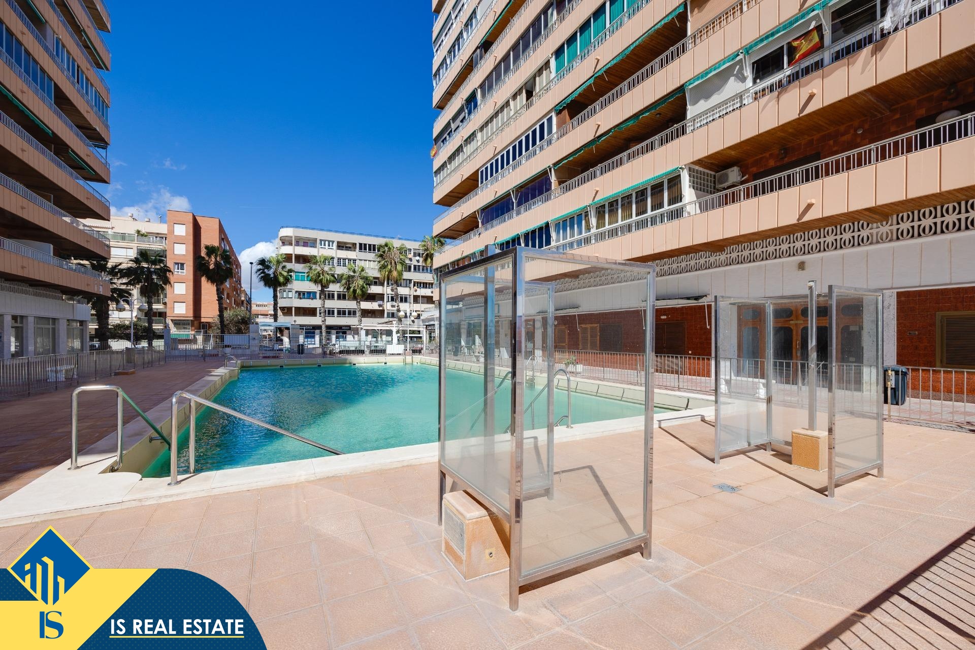 4-ių kambarių apartamentas su bendru baseinu, Ispanijoje, Alicante provincijoje, Torrevieja mieste, Playa del Acequión rajone, bendras plotas 94 m², 100 metrų iki jūros, 45 kilometrai iki Alicante oro uosto. Turtui priklauso bendras baseinas, terasa, liftas. Netoli turto yra parduotuvės, restoranai, vaistinės, autobusų stotelės, degalinės, žalios zonos, kavinės