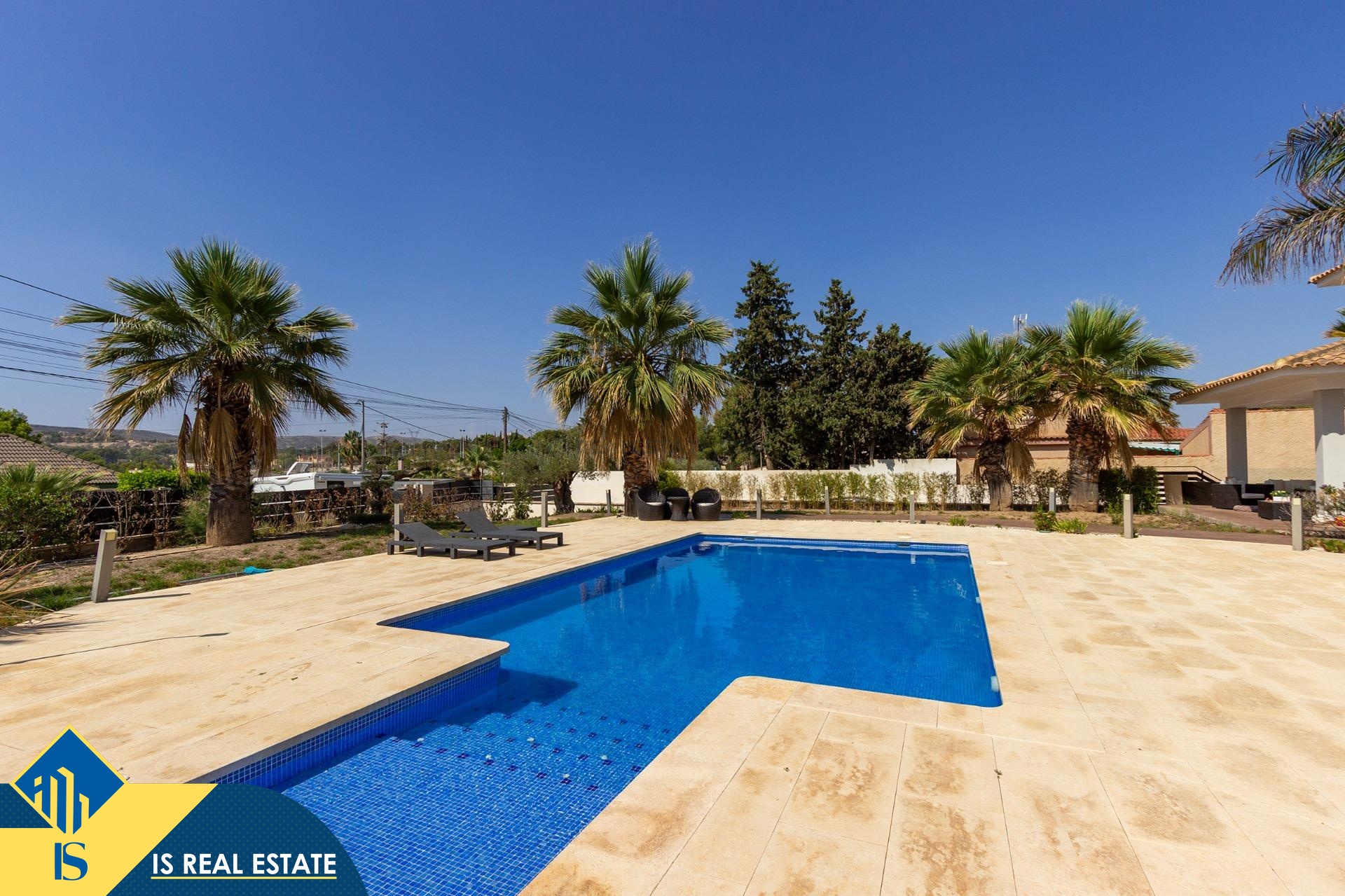 6-ių kambarių vila su privačiu, Ispanijoje, Alicante provincijoje, Alicante mieste, bendras plotas 442 m², 8 kilometrai iki jūros, 8 kilometrai iki oro uosto. Turtui priklauso privatus baseinas, vieta automobiliui, terasa. Netoli turto yra parduotuvės, restoranai, autobusų stotelės, degalinės, žalios zonos, kavinės, mokyklos