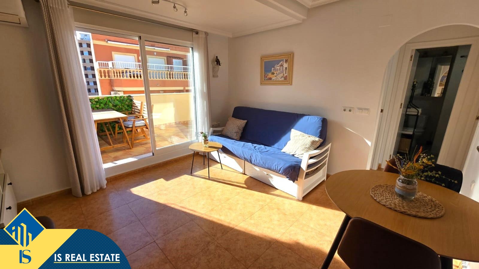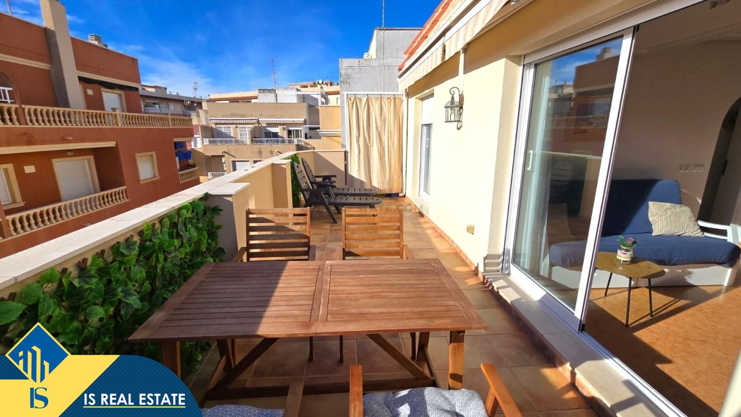 3-jų kambarių apartamentas su terasa, Ispanijoje, Alicante provincijoje, Torrevieja mieste, La Mata rajone, bendras plotas 73 m², 200 metrų iki jūros, 38 kilometrai iki Alicante oro uosto. Turtui priklauso terasa. Netoli turto yra parduotuvės, restoranai, autobusų stotelės, degalinės, žalios zonos, kavinės, vaistinės