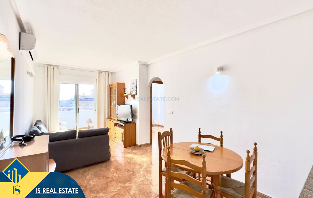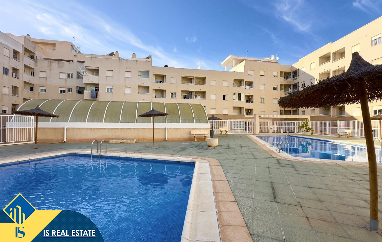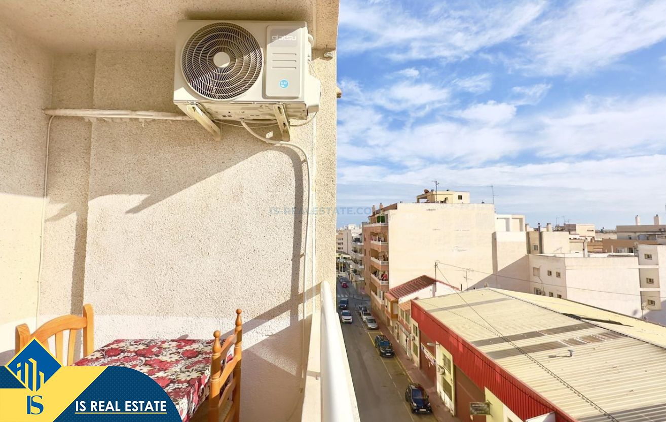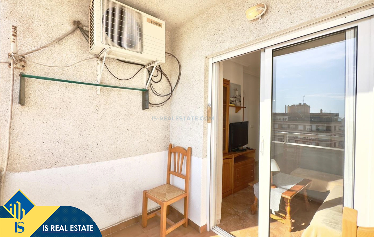 3-jų kambarių apartamentas su bendru baseinu, Ispanijoje, Alicante provincijoje, Torrevieja mieste, bendras plotas 66 m², 1.3 kilometro iki jūros, 45 kilometrai iki Alicante oro uosto. Turtui priklauso bendras baseinas, terasa, liftas. Netoli turto yra parduotuvės, restoranai, vaistinės, autobusų stotelės, degalinės, žalios zonos, kavinės