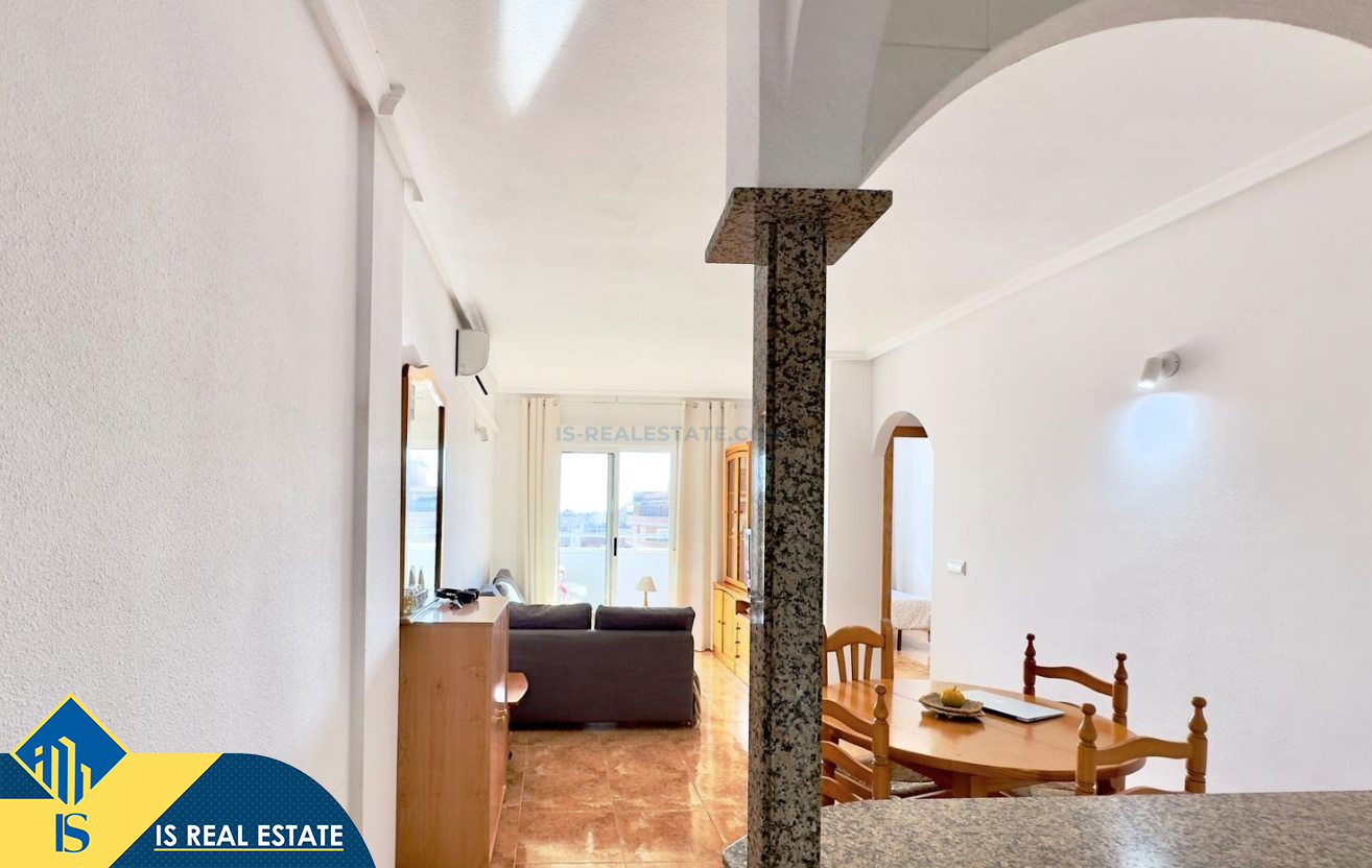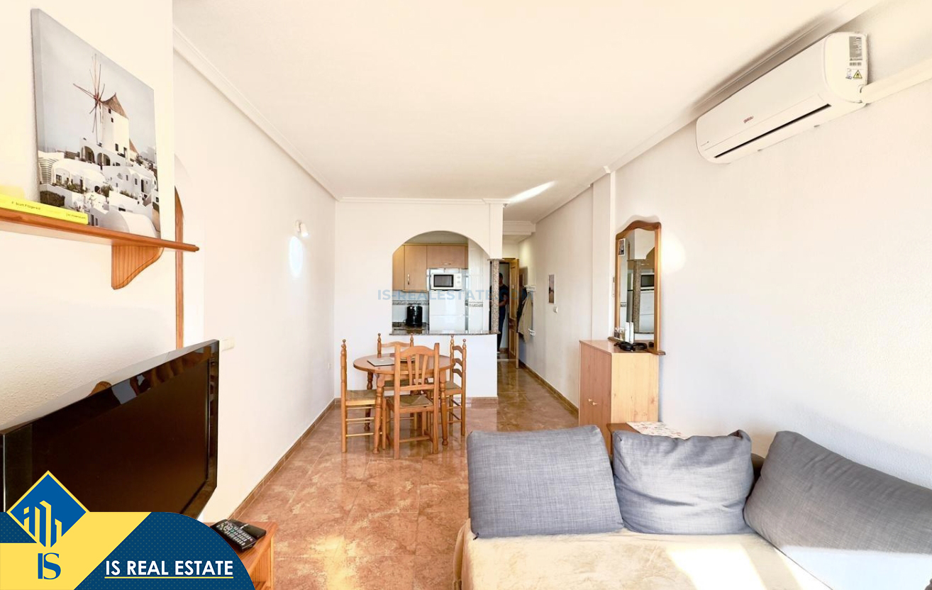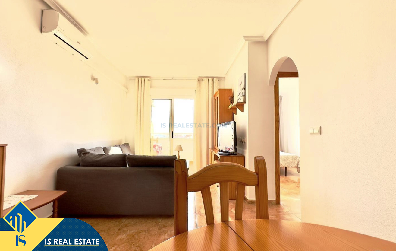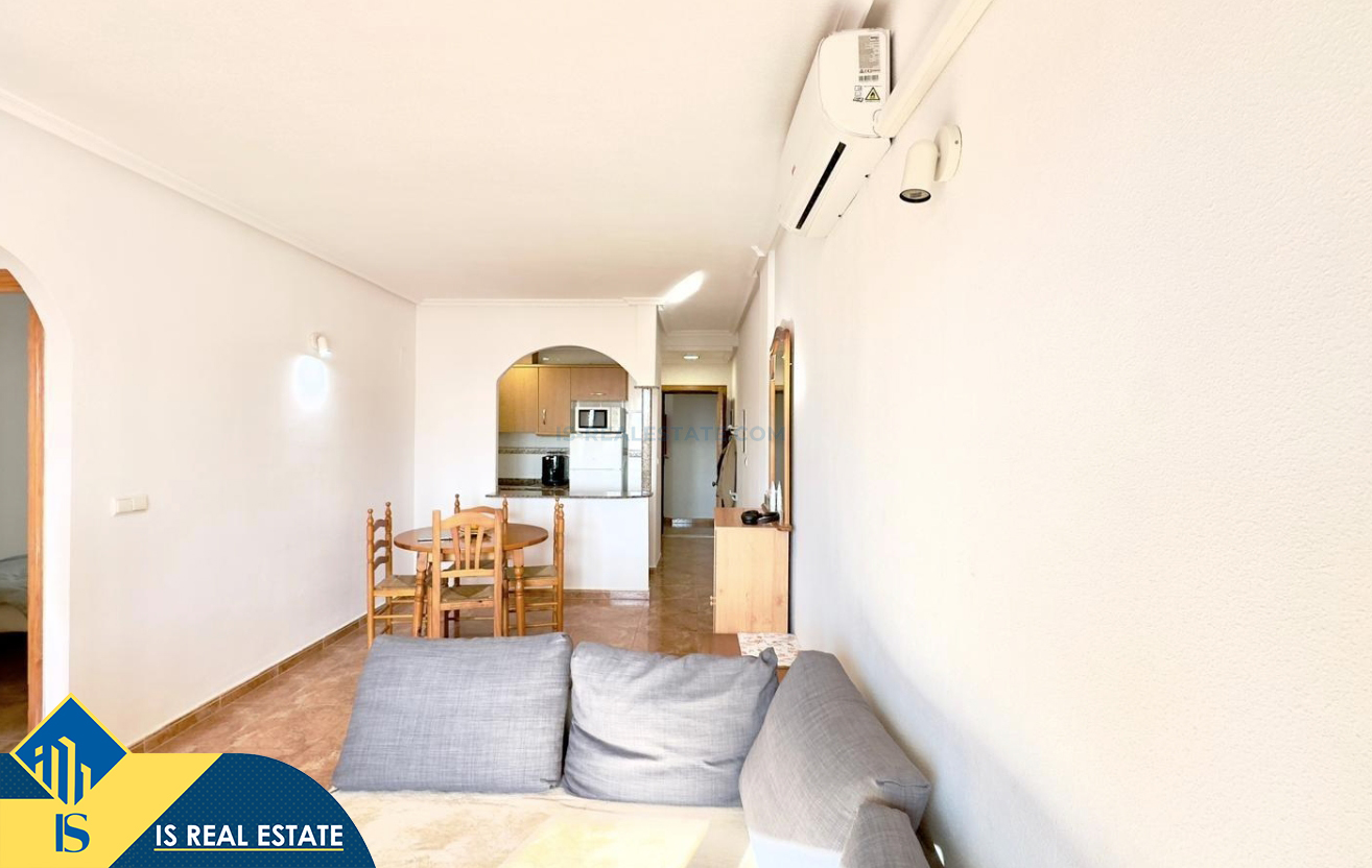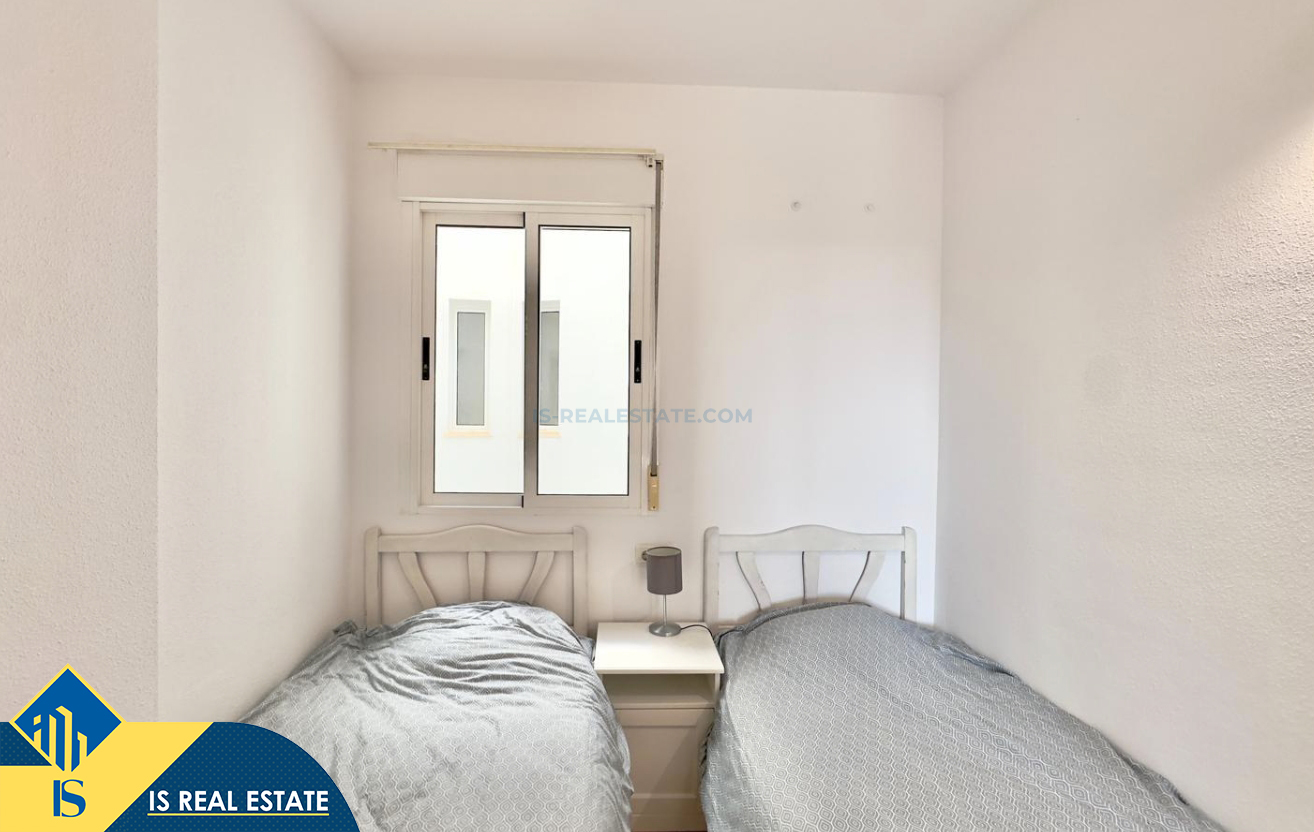 3-jų kambarių apartamentas su bendru baseinu, Ispanijoje, Alicante provincijoje, Torrevieja mieste, bendras plotas 66 m², 1.3 kilometro iki jūros, 45 kilometrai iki Alicante oro uosto. Turtui priklauso bendras baseinas, terasa, liftas. Netoli turto yra parduotuvės, restoranai, vaistinės, autobusų stotelės, degalinės, žalios zonos, kavinės