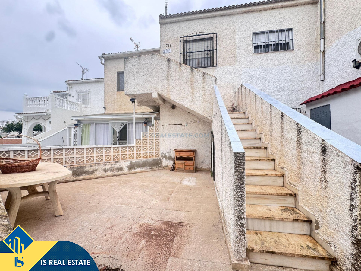 3-jų kambarių bungalas su terasa, Ispanijoje, Alicante provincijoje, Torrevieja mieste, Torreta rajone, bendras plotas 79 m², 3.4 kilometro iki jūros, 45 kilometrai iki Alicante oro uosto. Turtui priklauso terasa. Netoli turto yra parduotuvės, restoranai, autobusų stotelės, vaikų zonos, degalinės, žalios zonos, kavinės, prekybos centras