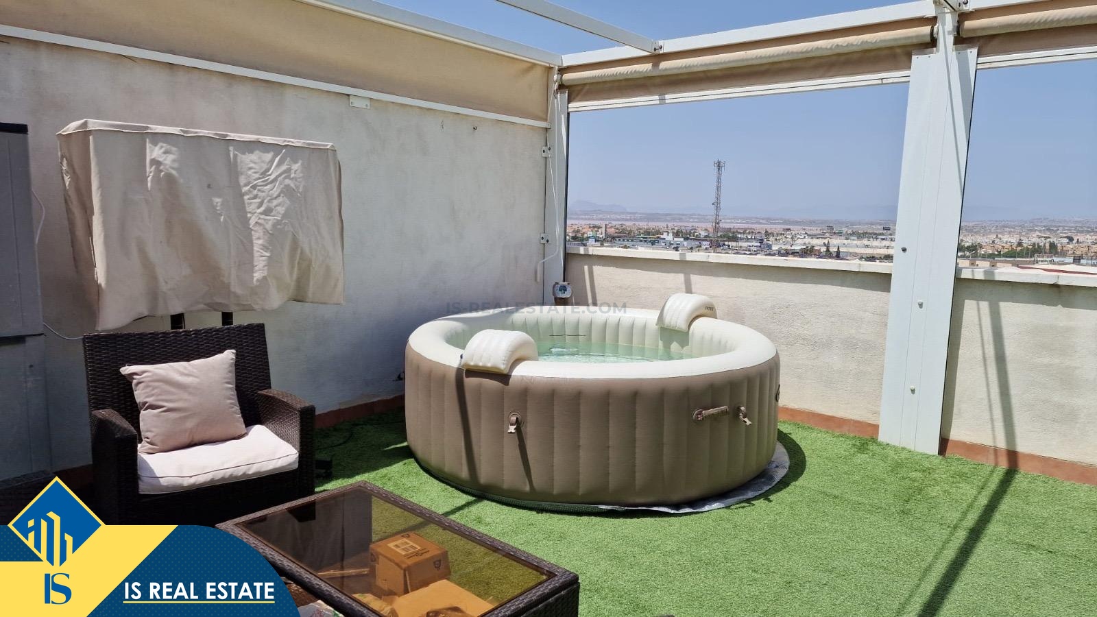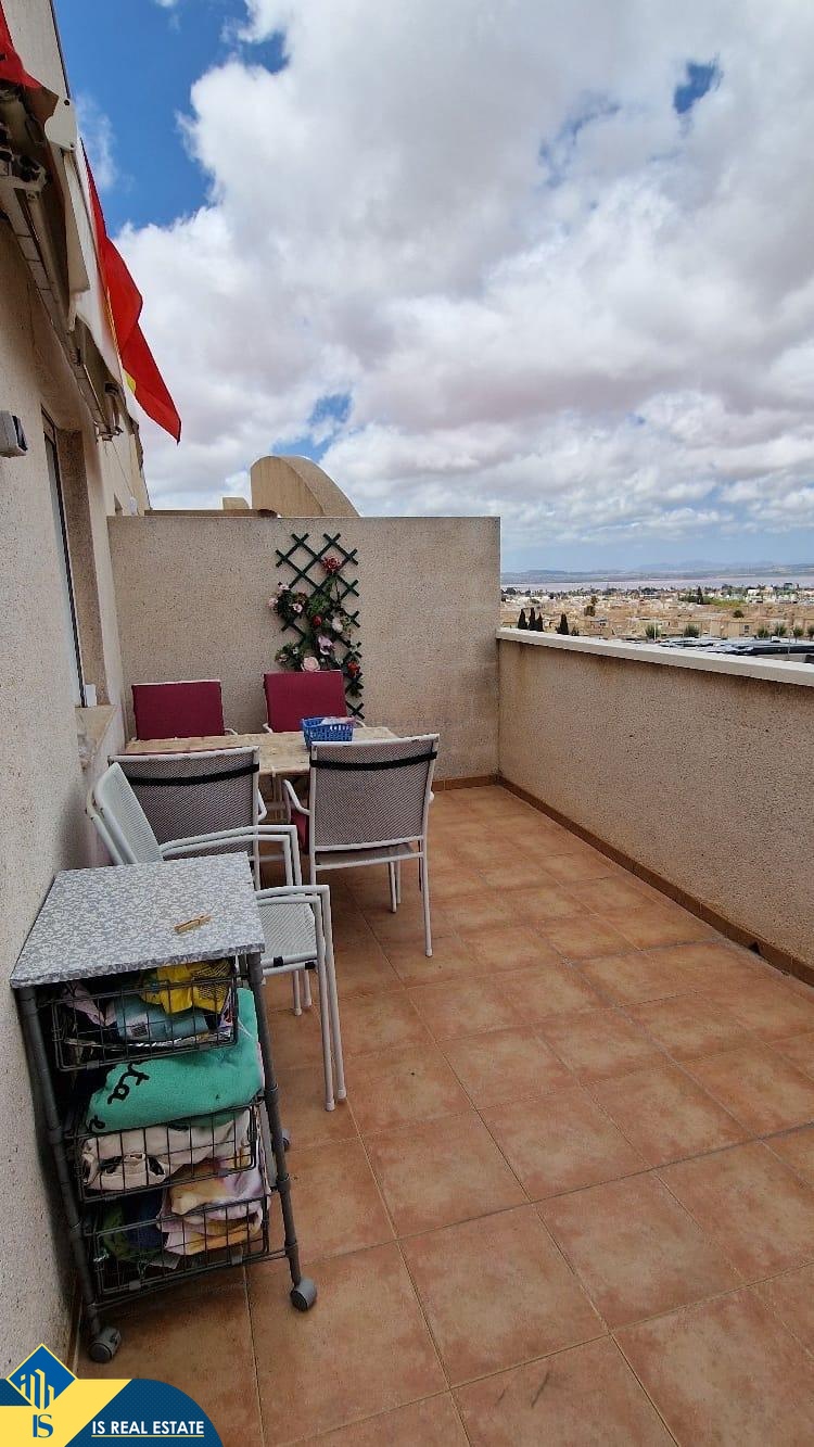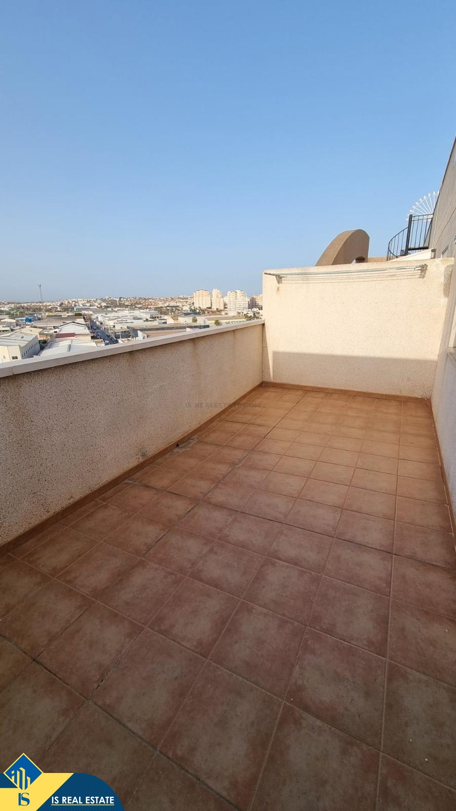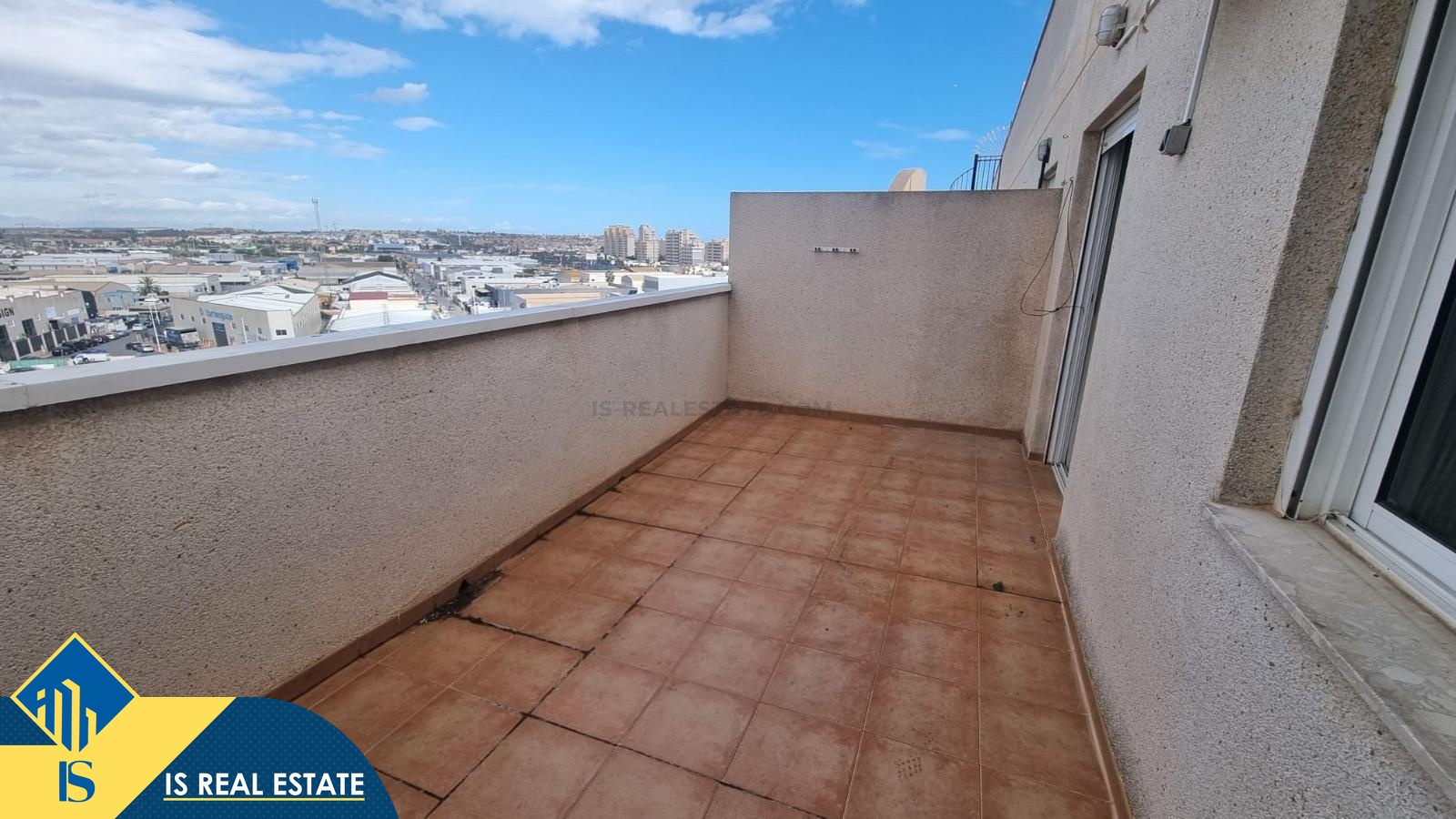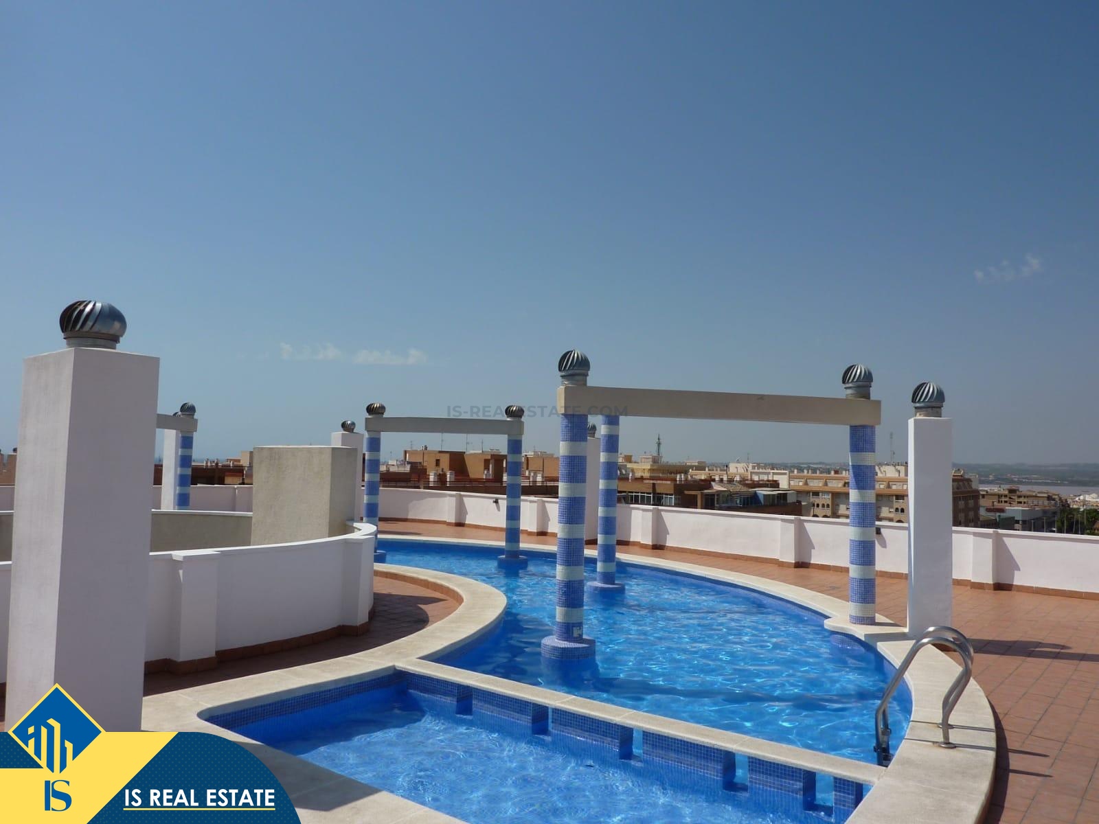 3-jų kambarių penthouse apartamentas su bendru baseinu, Ispanijoje, Alicante provincijoje, Torrevieja mieste, Playa del Cura rajone, bendras plotas 52 m², 900 metrų iki jūros, 45 kilometrai iki Alicante oro uosto. Turtui priklauso bendras baseinas, terasa, solarium. Netoli turto yra parduotuvės, restoranai, autobusų stotelės, degalinės, žalios zonos, kavinės, vaistinės