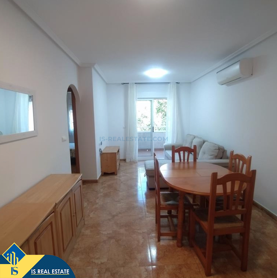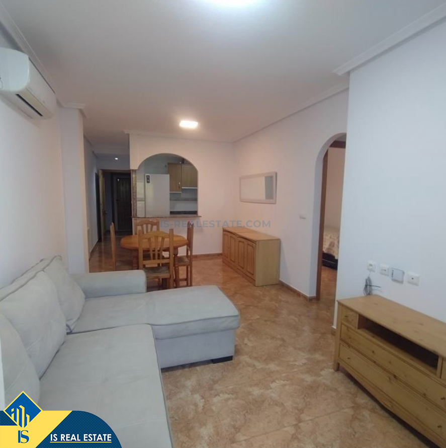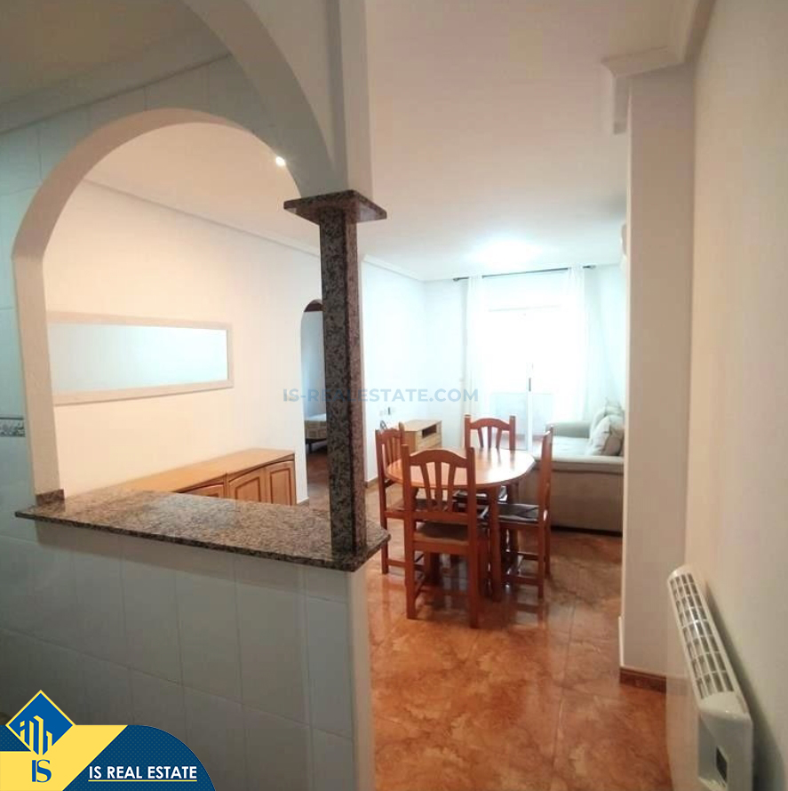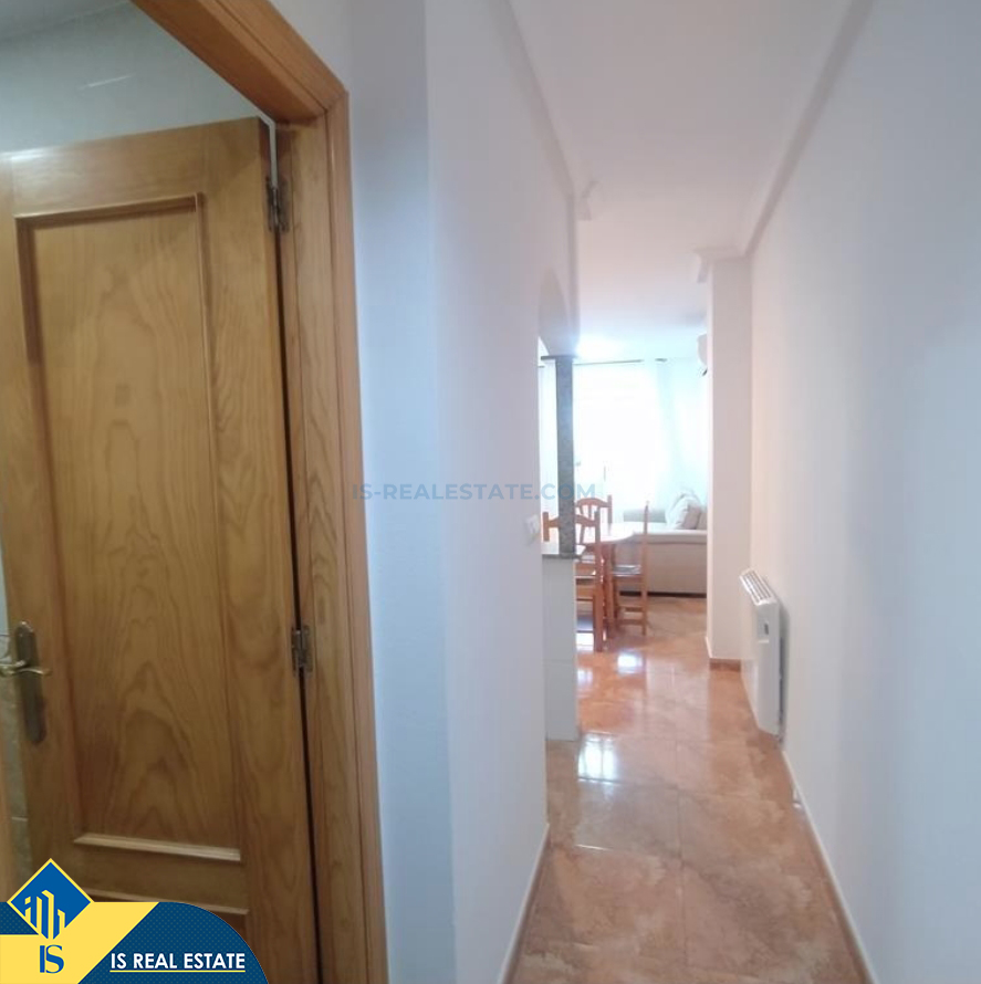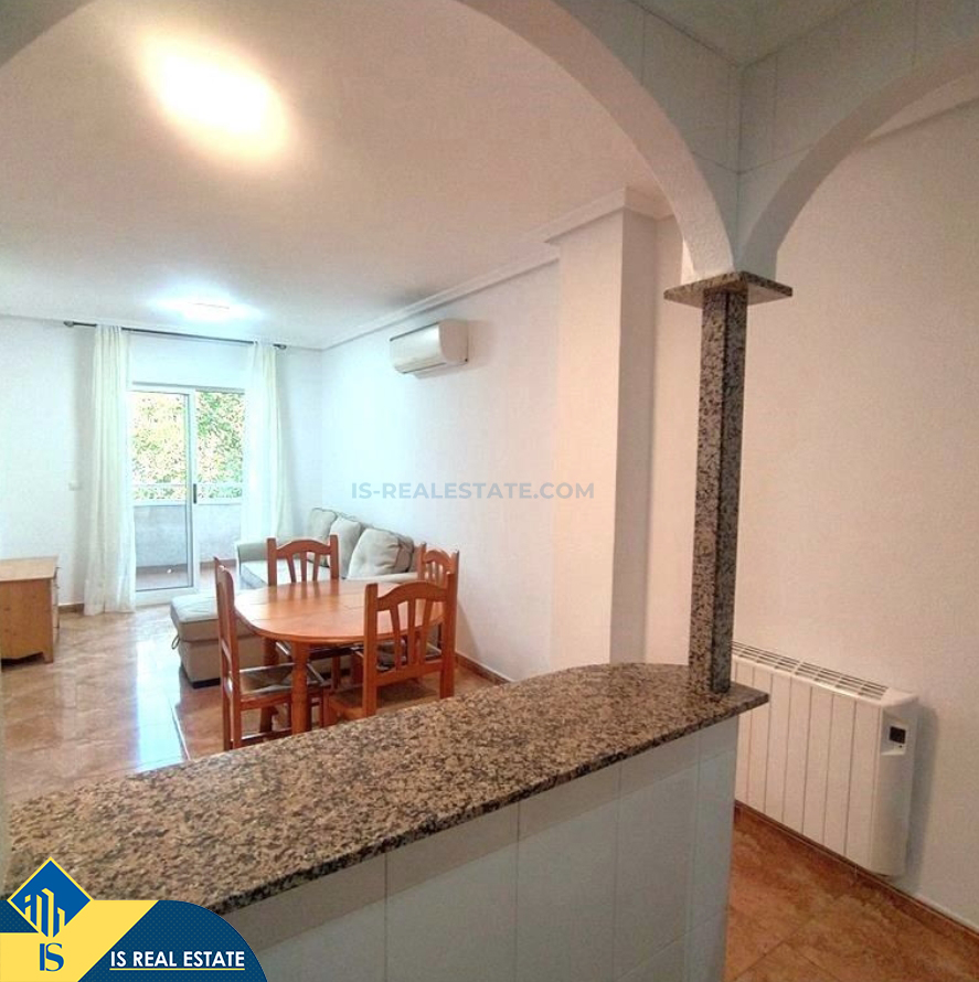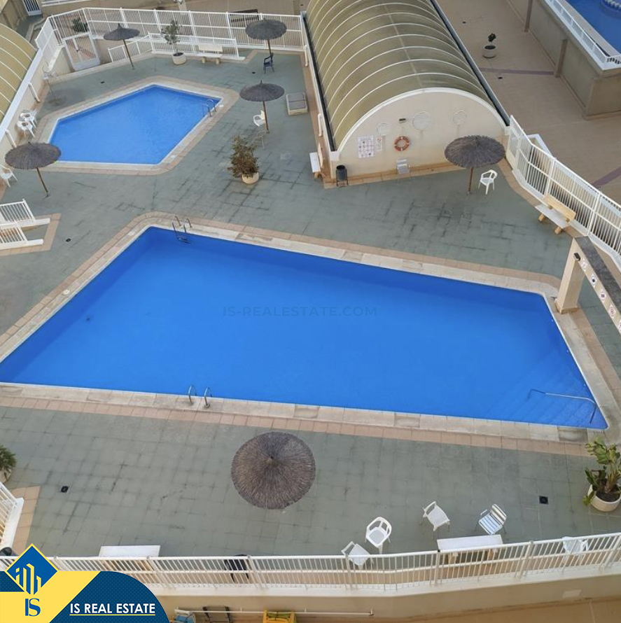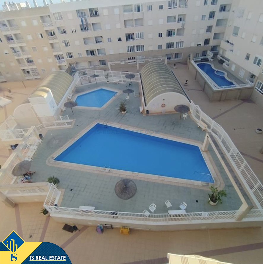 3-jų kambarių apartamentas su bendru baseinu, Ispanijoje, Alicante provincijoje, Torrevieja mieste, bendras plotas 59 m², 1.4 kilometro iki jūros, 45 kilometrai iki Alicante oro uosto. Turtui priklauso bendras baseinas, balkonas, liftas, garažas, sandėliukas. Netoli turto yra parduotuvės, restoranai, vaistinės, autobusų stotelės, degalinės, žalios zonos, kavinės