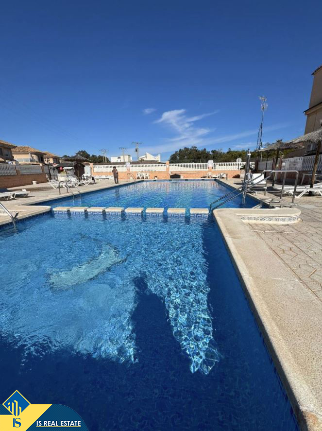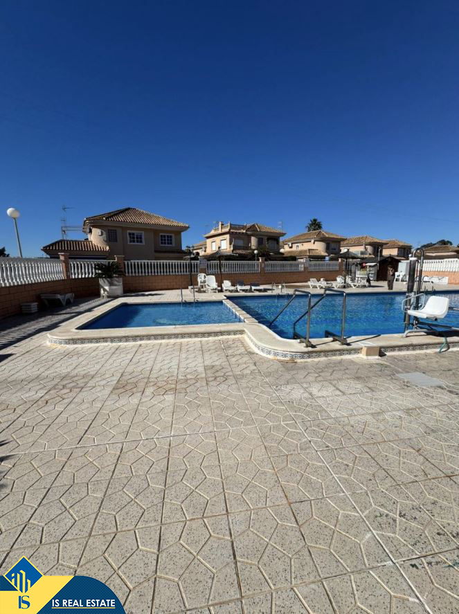 3-jų kambarių bungalas su bendru baseinu, Ispanijoje, Alicante provincijoje, Torrevieja mieste, Los Balcones rajone, bendras plotas 65 m², 1.6 kilometro iki jūros, 45 kilometrai iki Alicante oro uosto. Turtui priklauso bendras baseinas, terasa, soliariumas. Netoli turto yra parduotuvės, restoranai, autobusų stotelės, vaikų zonos, degalinės, žalios zonos, kavinės