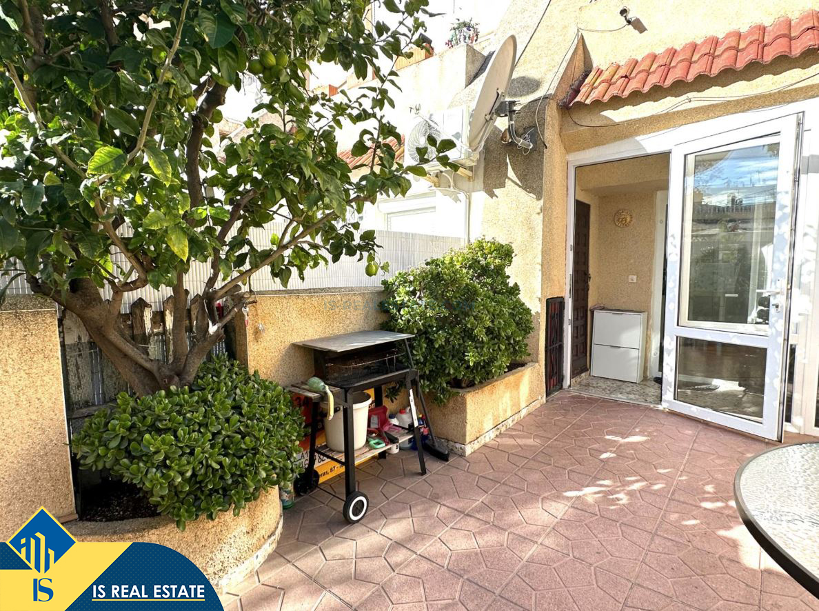 3-jų kambarių renovuotas bungalas su terasa, Ispanijoje, Alicante provincijoje, Torrevieja mieste, bendras plotas 57 m², 1.5 kilometro iki jūros, 45 kilometrai iki Alicante oro uosto. Turtui priklauso terasa, kiemelis. Netoli turto yra parduotuvės, restoranai, autobusų stotelės, vaikų zonos, degalinės, žalios zonos, kavinės