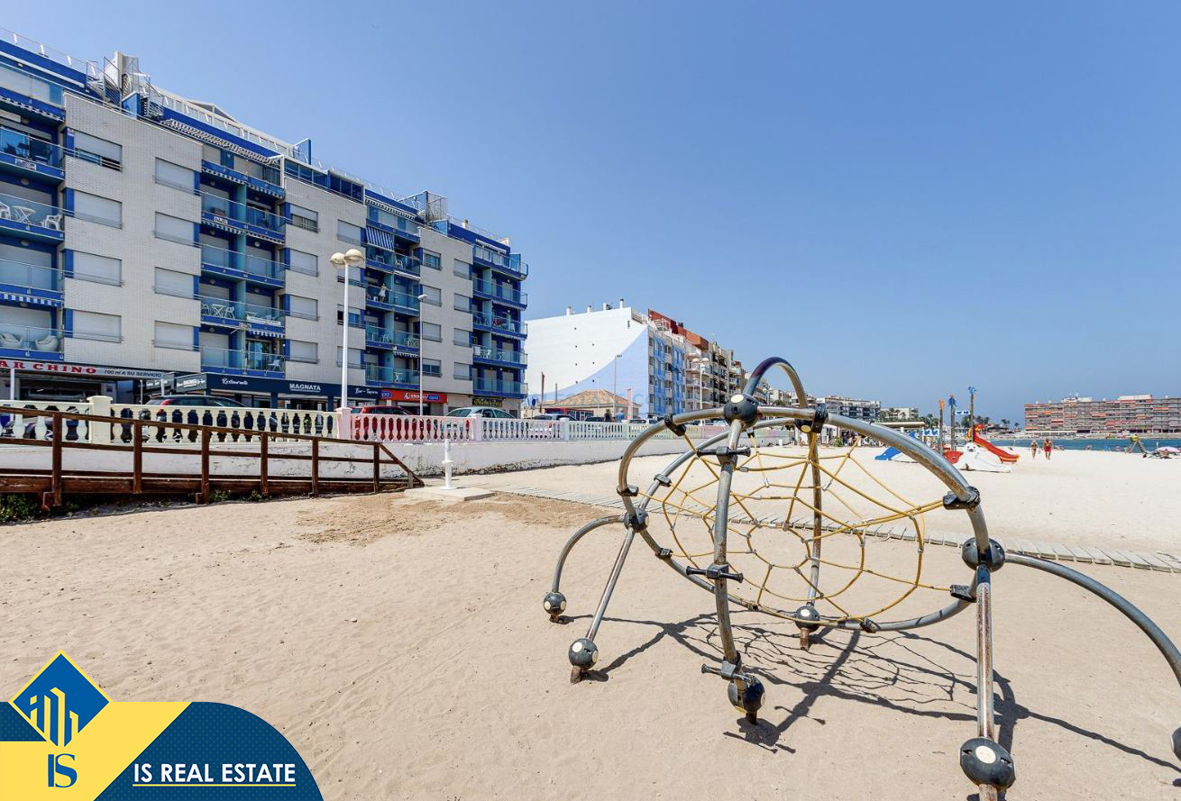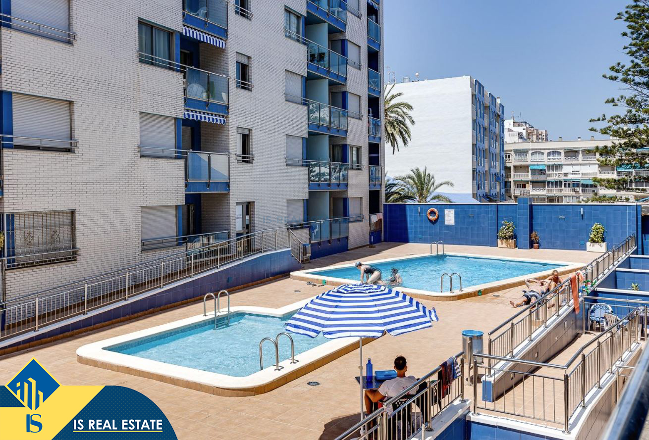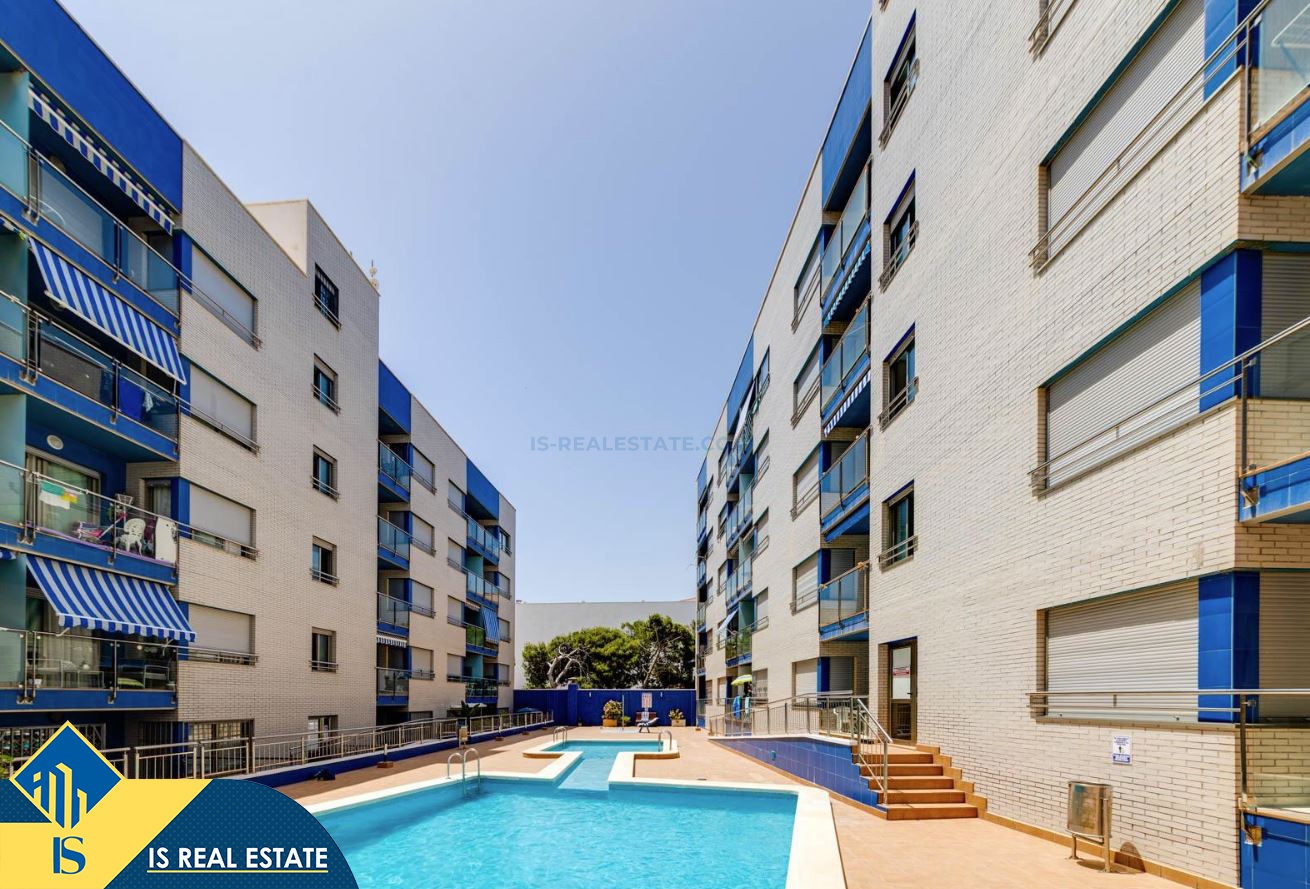 Studija su bendru baseinu, Ispanijoje, Alicante provincijoje, Torrevieja mieste, Playa de los Locos rajone, bendras plotas 49 m², 100 metrų iki jūros, 45 kilometrai iki Alicante oro uosto. Turtui priklauso bendras baseinas, terasa, liftas. Netoli turto yra parduotuvės, restoranai, vaistinės, autobusų stotelės, degalinės, žalios zonos, kavinės, Habaneras alėja