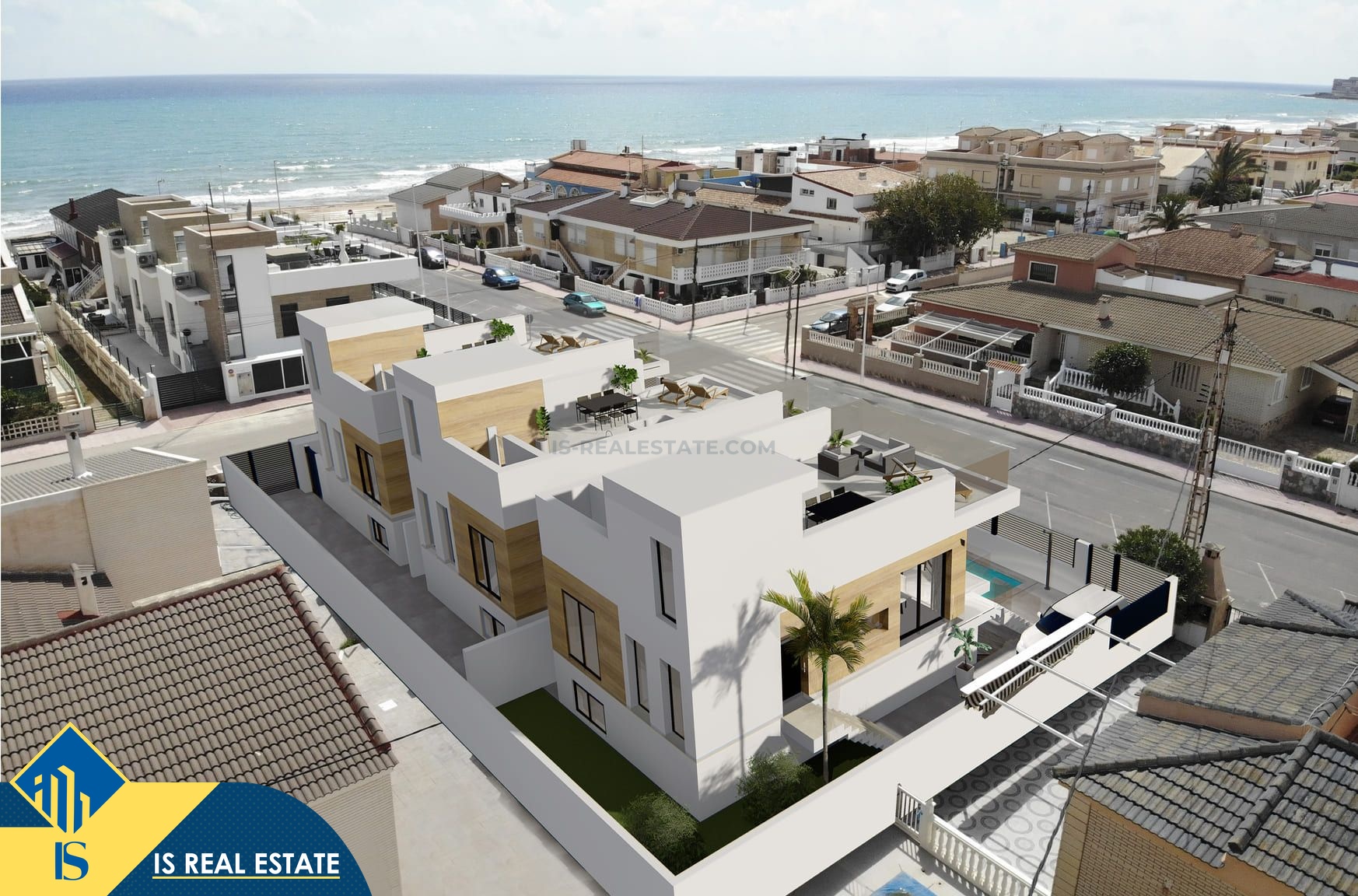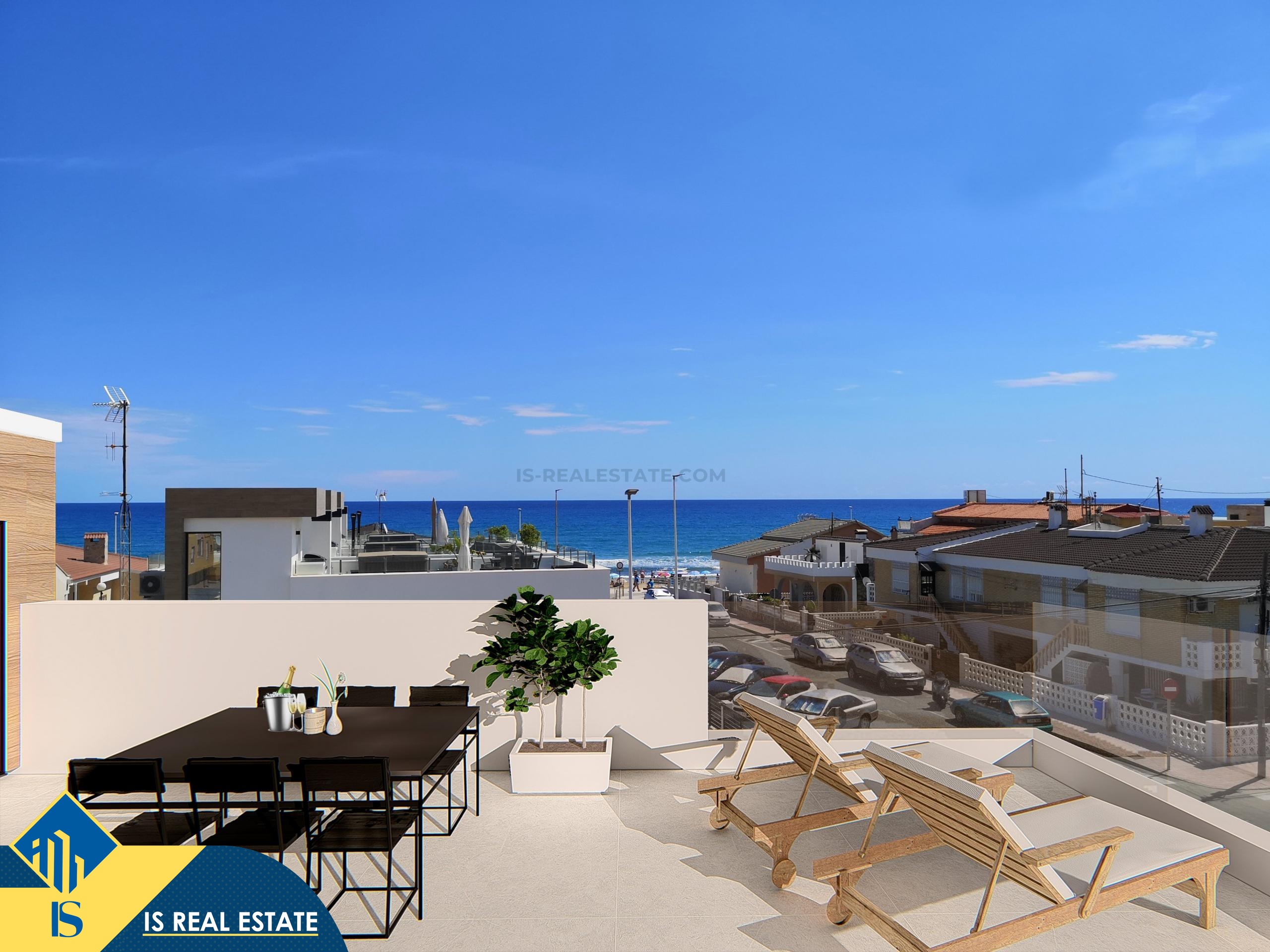 Statomi apartamentai 5-ių kambarių, Ispanijoje, Alicante provincijoje, Torrevieja mieste, bendras plotas 172 m², 200 metrų iki jūros, 45 kilometrai iki Alicante miesto oro uosto. Turtui priklauso bendras baseinas, terasa, vieta automobiliui, soliariumas. Netoli turto yra parduotuvės, restoranai, autobusų stotelės, degalinės, žalios zonos, kavinės, vaistinės, pagrindinė promenada